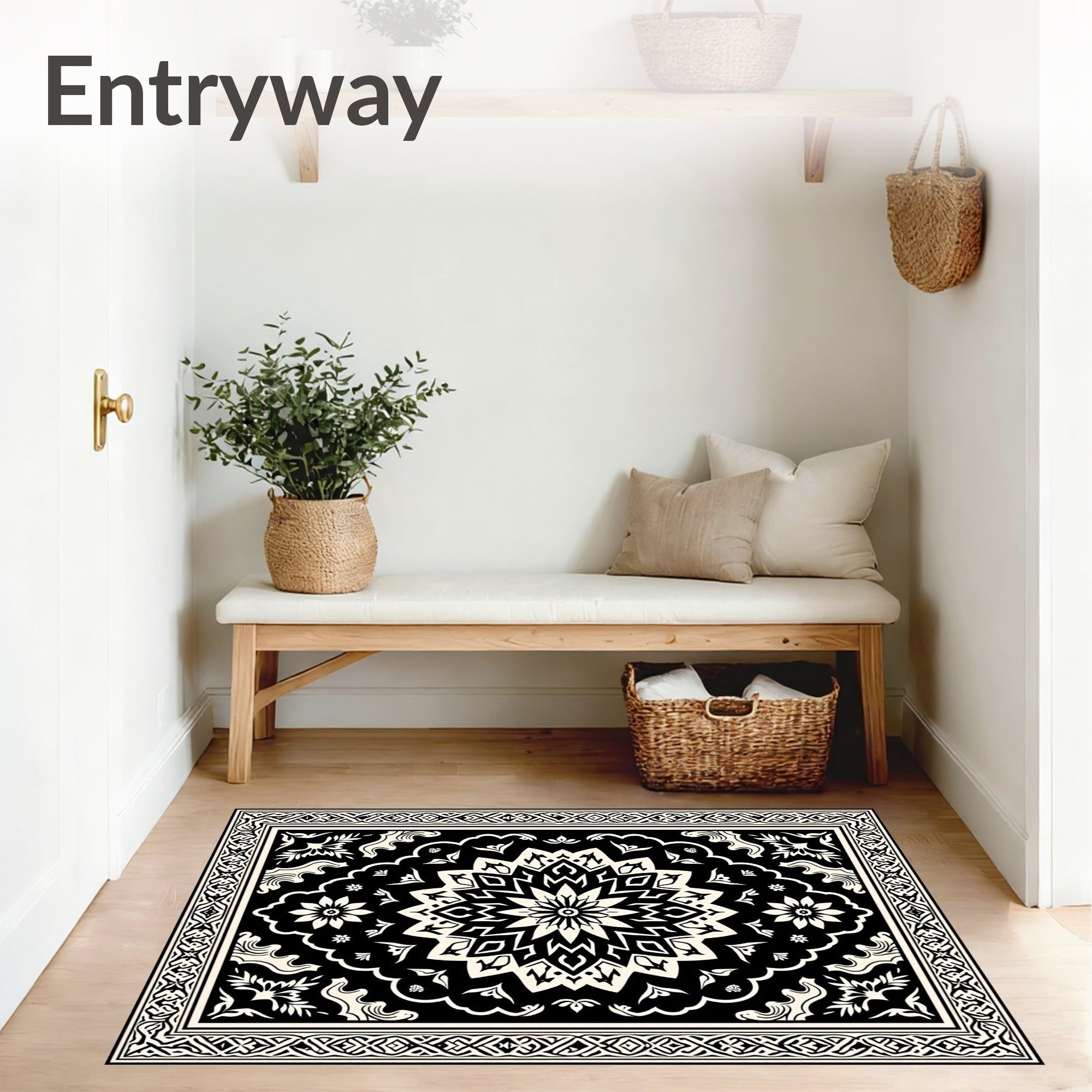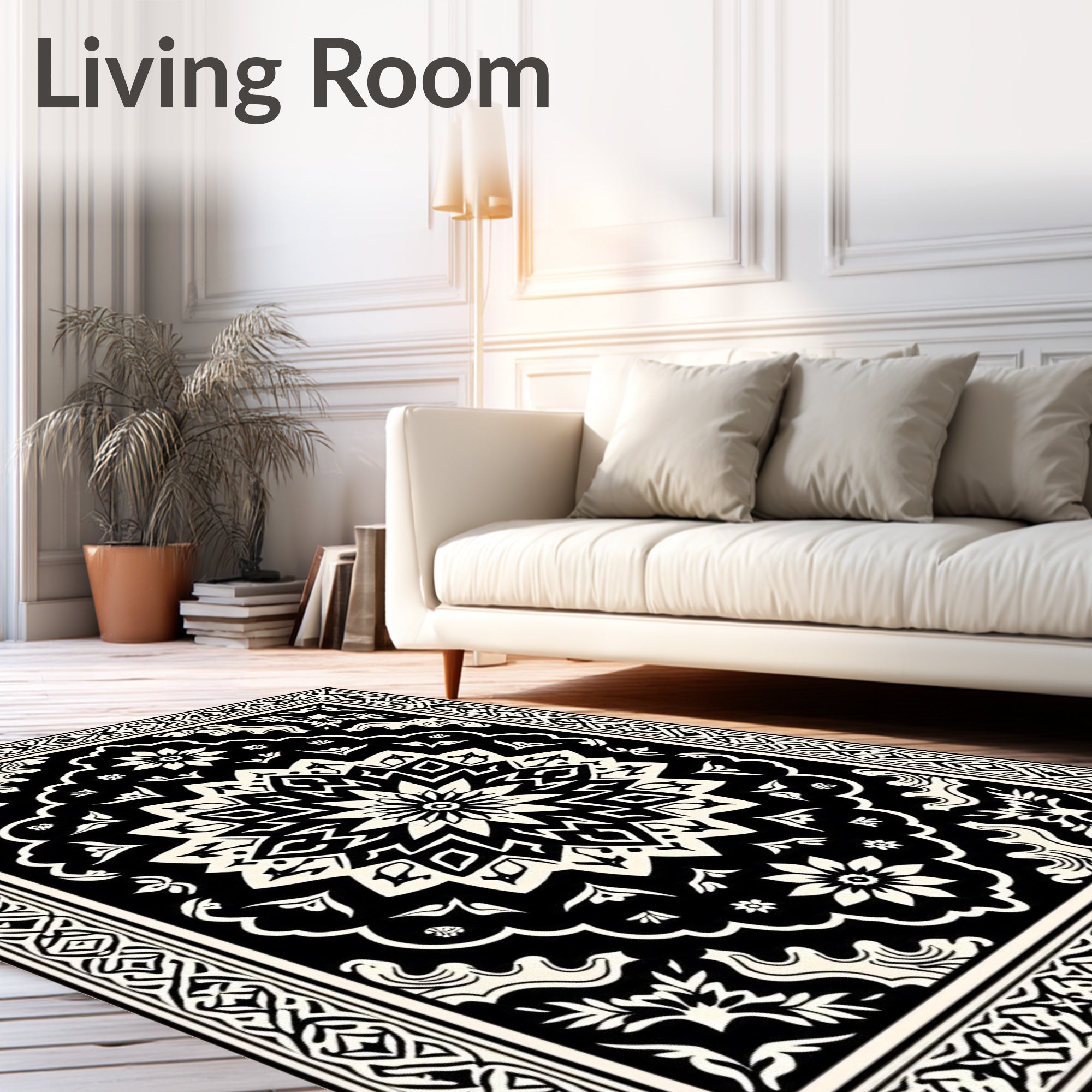Ultra Soft Area Rug, Non Slip, Stain Resistant, Washable Area Rugs for Living Room, Bedroom, Tile Inspired Stain Guard Surface Treatment(Black) Overview: