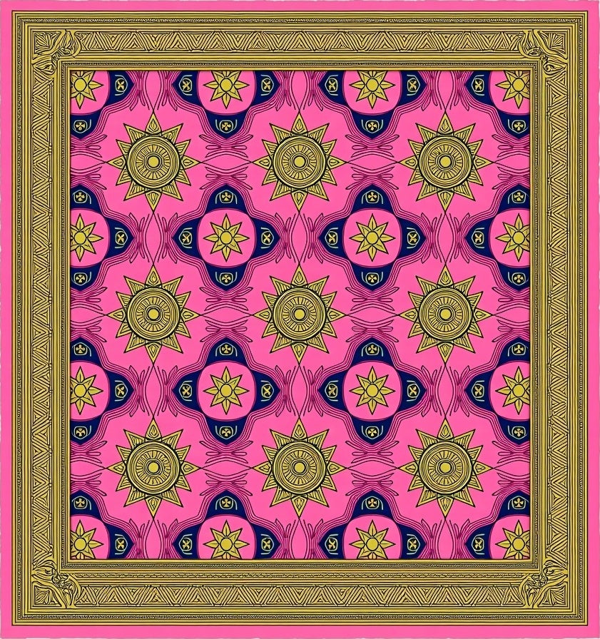 Tile Mosaic with Starburst Kaleidoscope Arrangement(Pink)