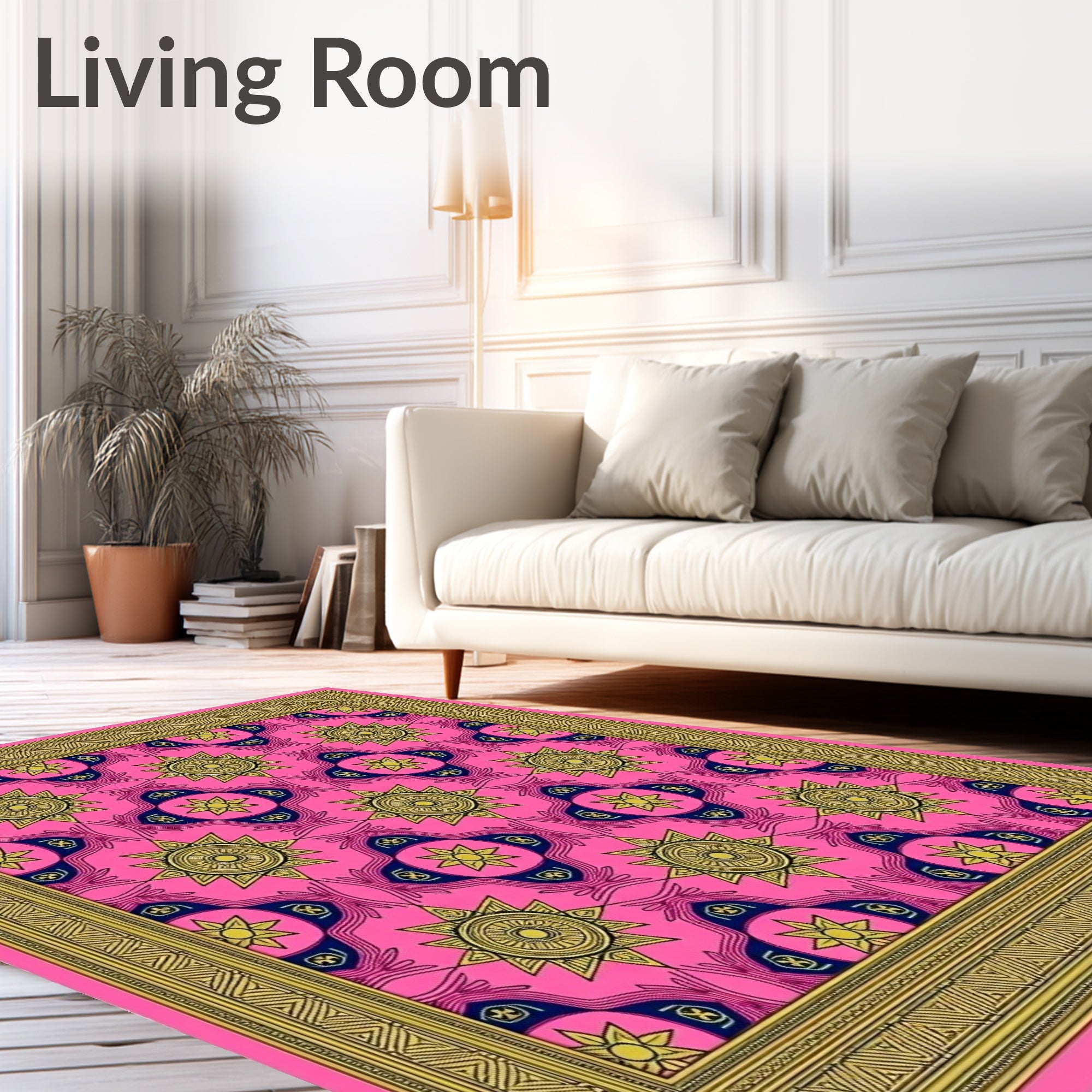 Ultra Soft Area Rug, Non Slip, Stain Resistant, Washable Area Rugs for Living Room, Bedroom, Tile Mosaic with Starburst Kaleidoscope Arrangement(Pink) Overview: