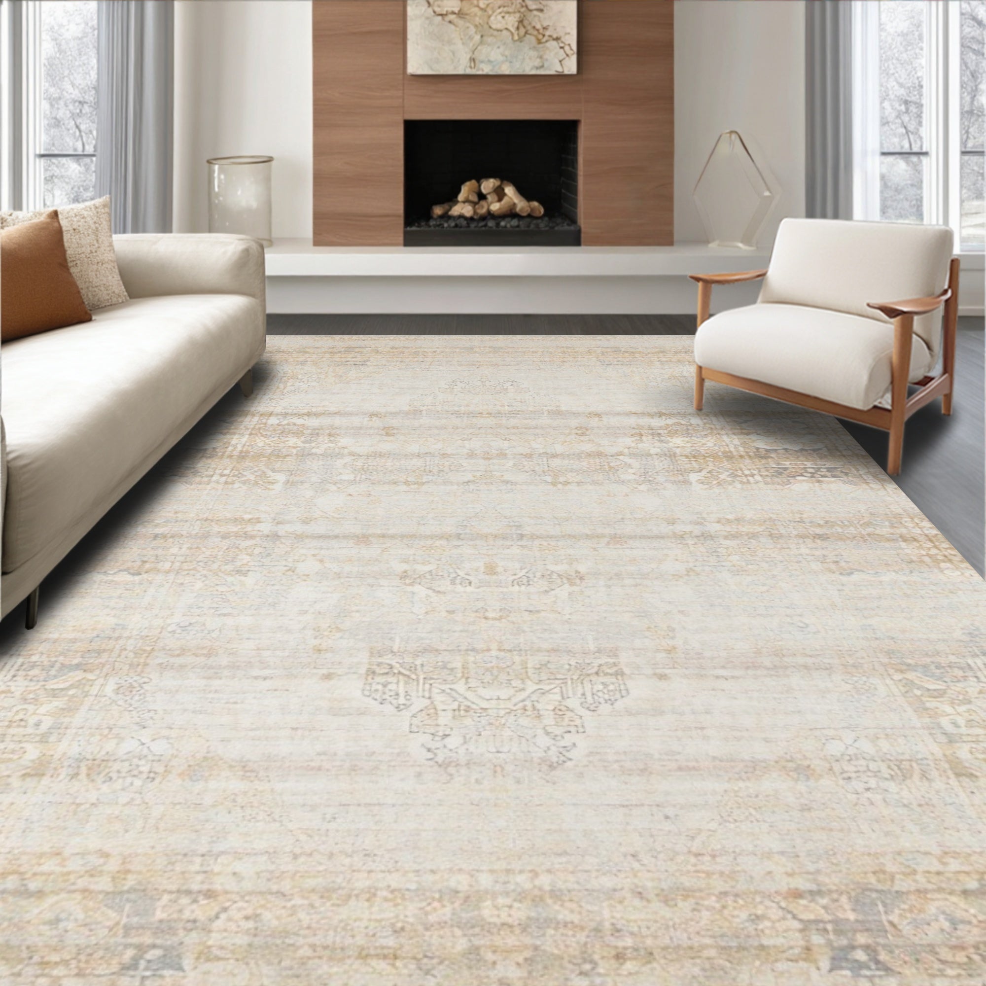 Ultra Soft Area Rug, Non Slip, Stain Resistant, Washable Area Rugs for Living Room, Bedroom, Timeless Beige Classic Subtle Distressed Non Slip(Beige) Overview: