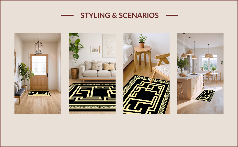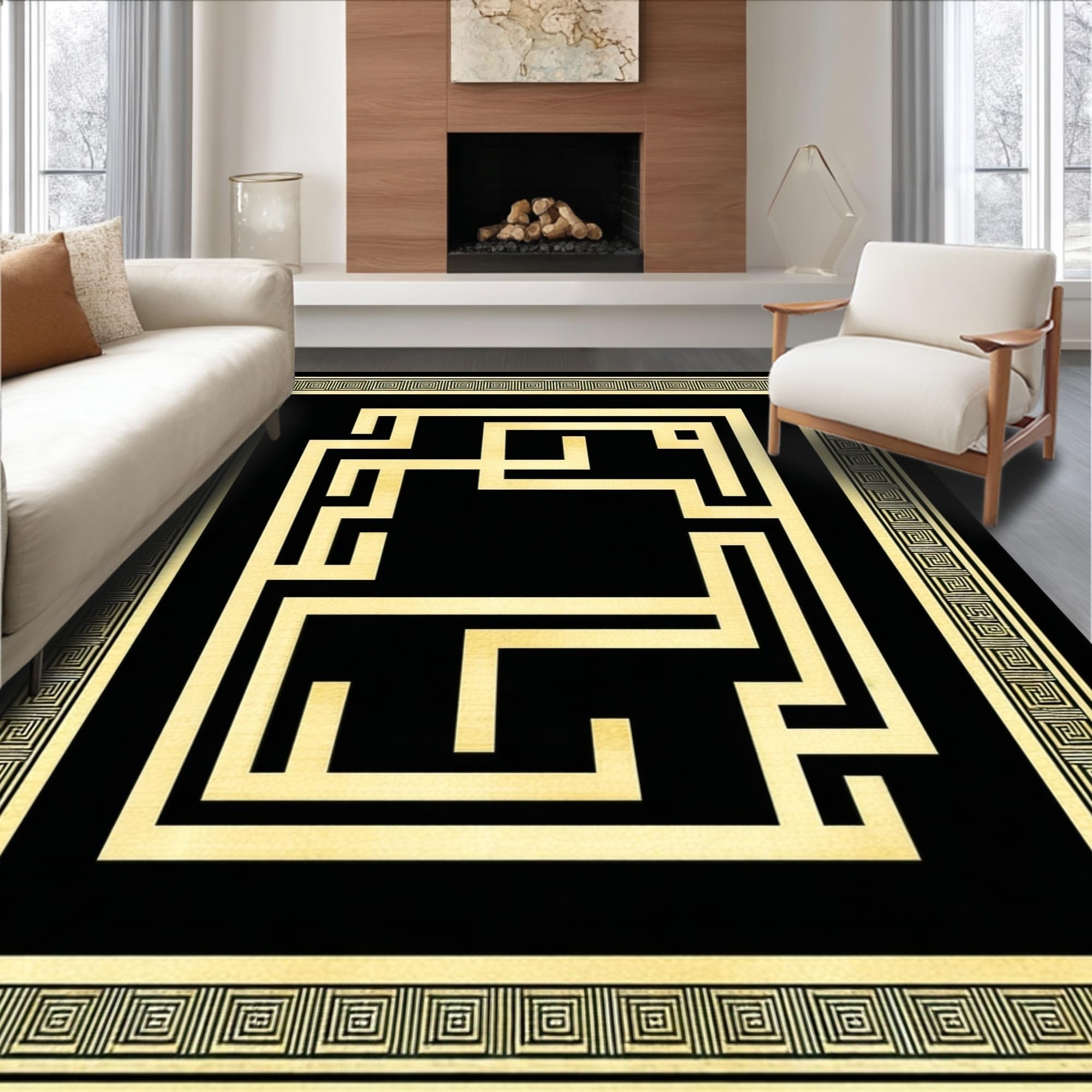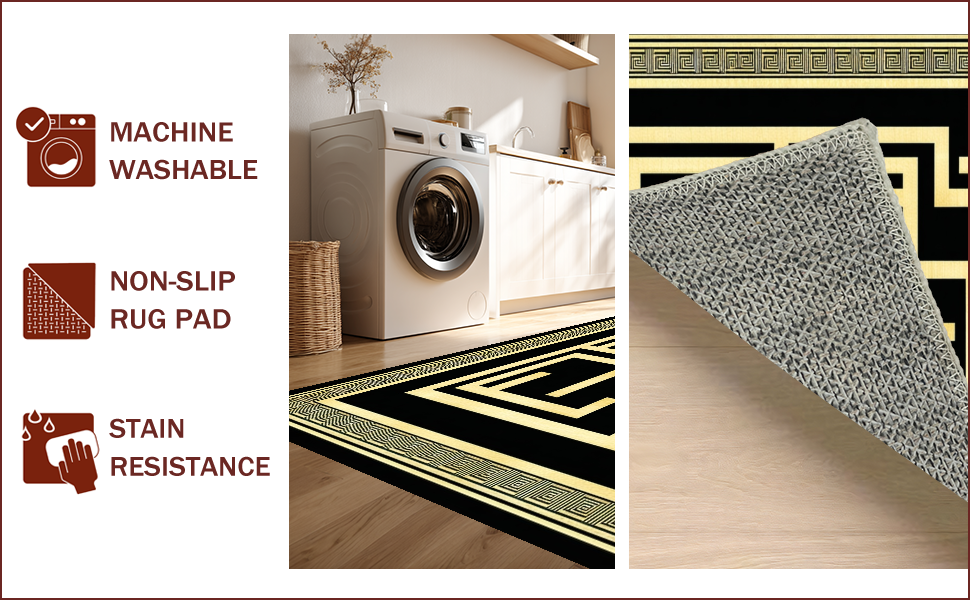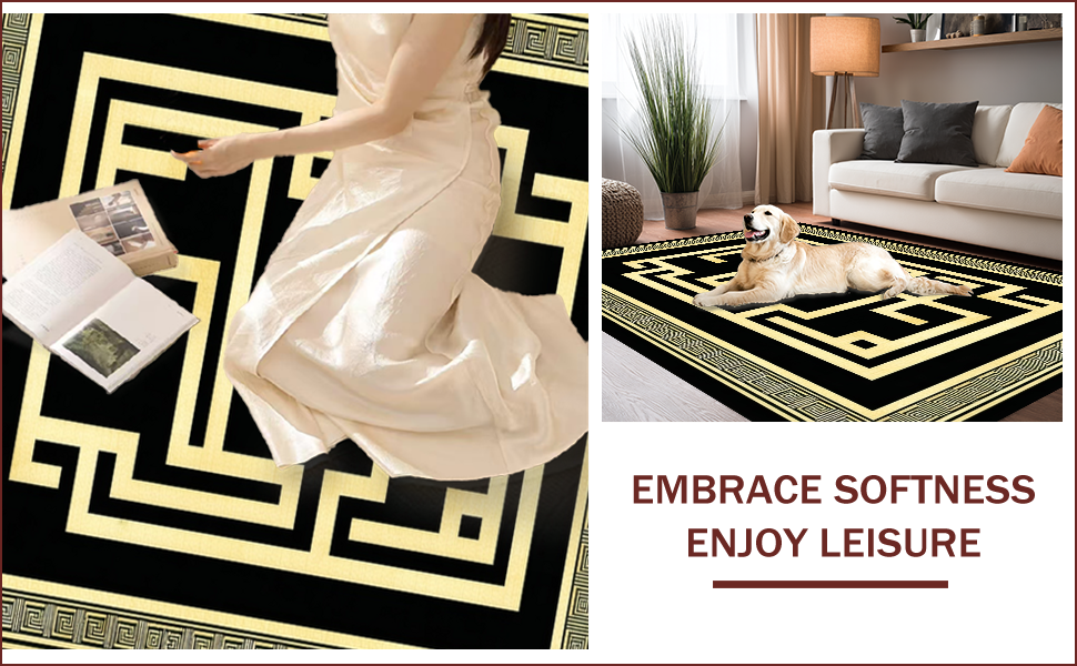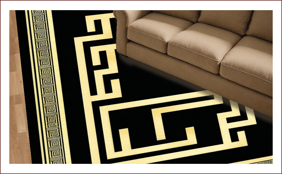 Ultra Soft Area Rug, Non Slip, Stain Resistant, Washable Area Rugs for Living Room, Bedroom, Timeless Classic Greek Key Style(Black) Overview: