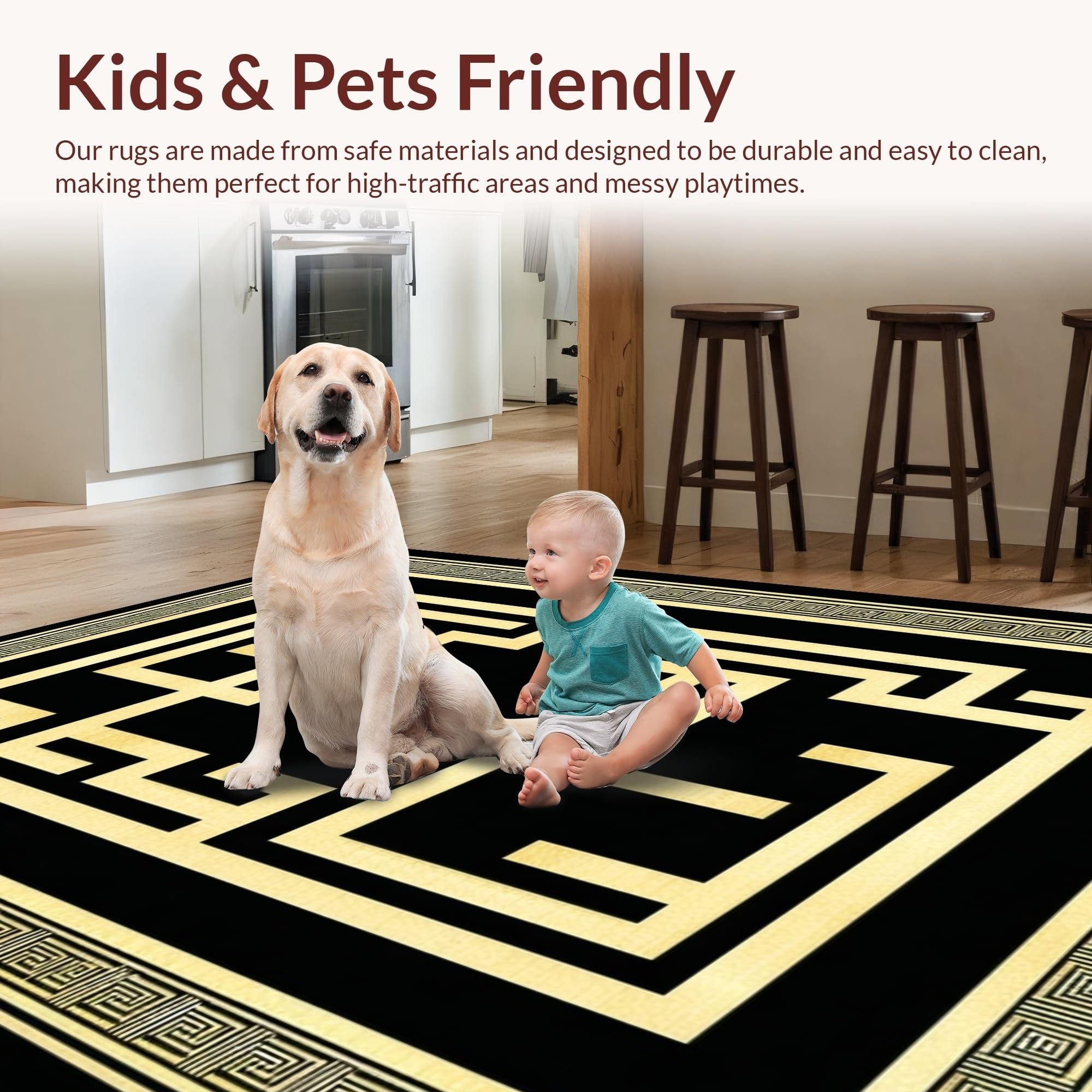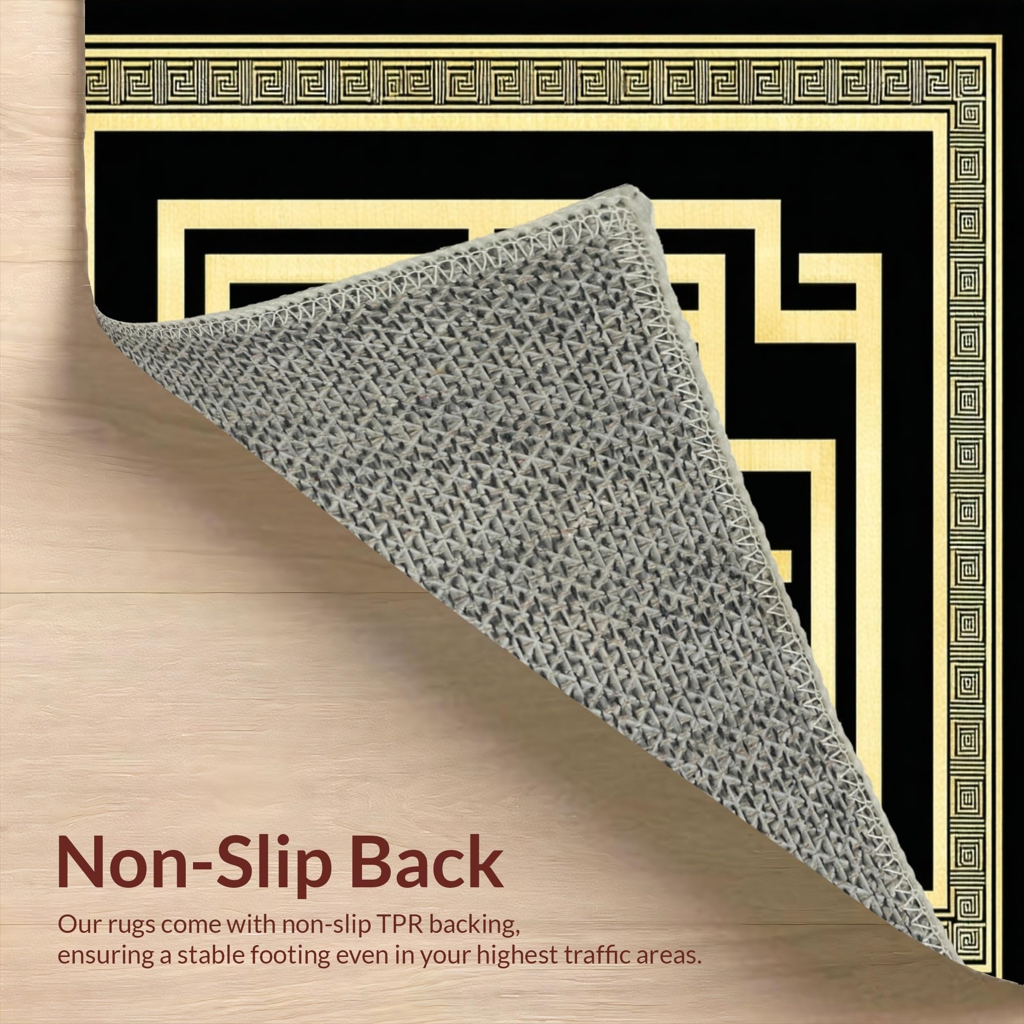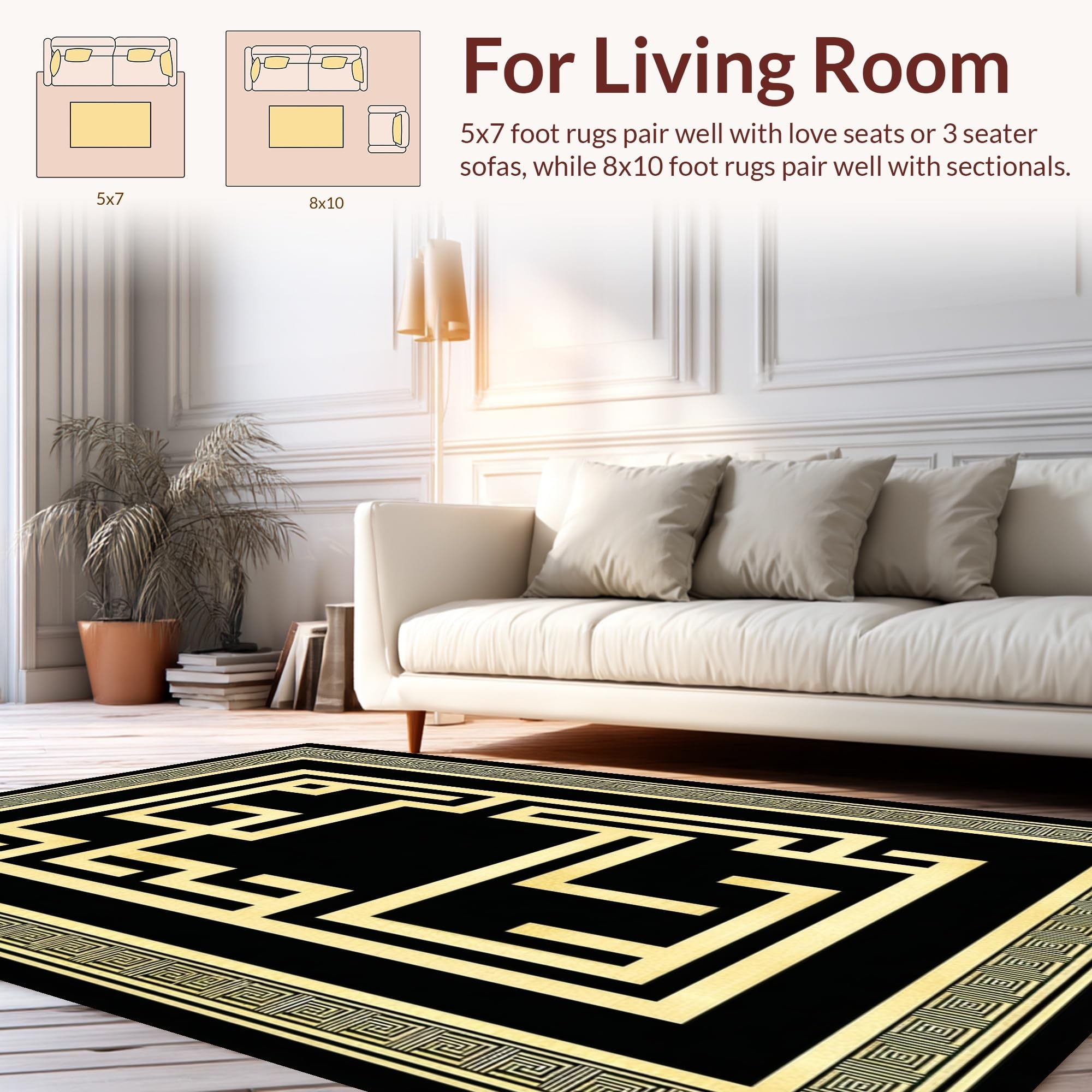 Ultra Soft Area Rug, Non Slip, Stain Resistant, Washable Area Rugs for Living Room, Bedroom, Timeless Classic Greek Key Style(Black) Overview: