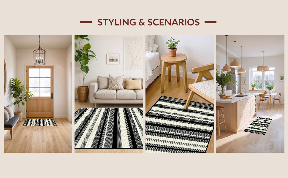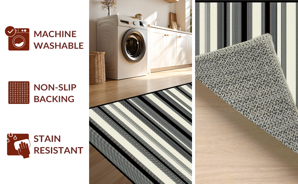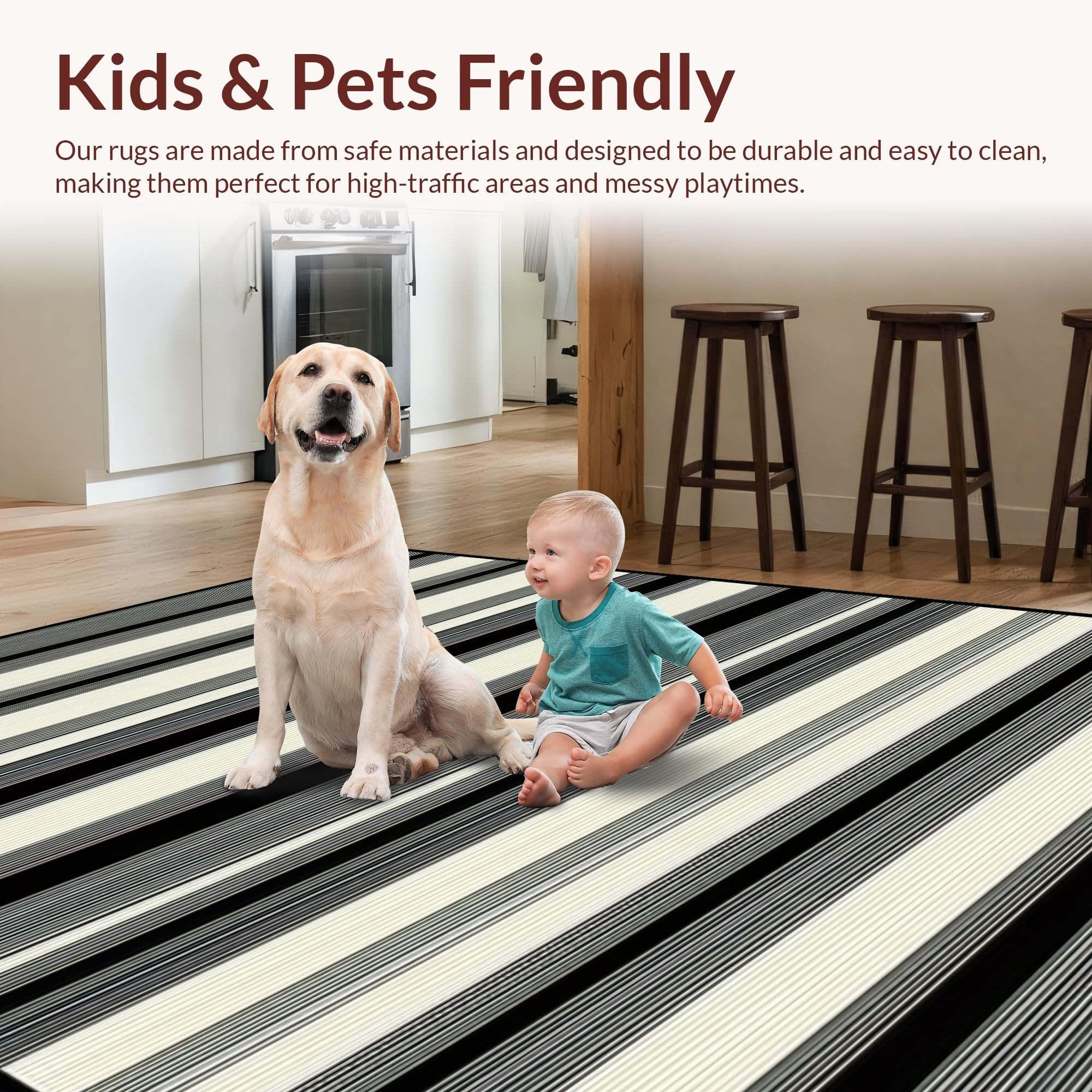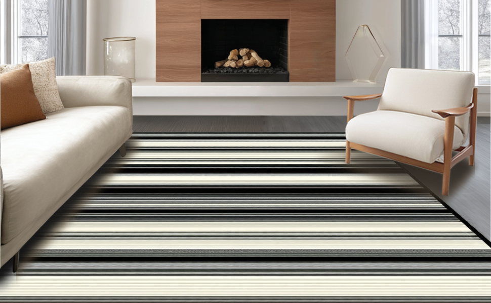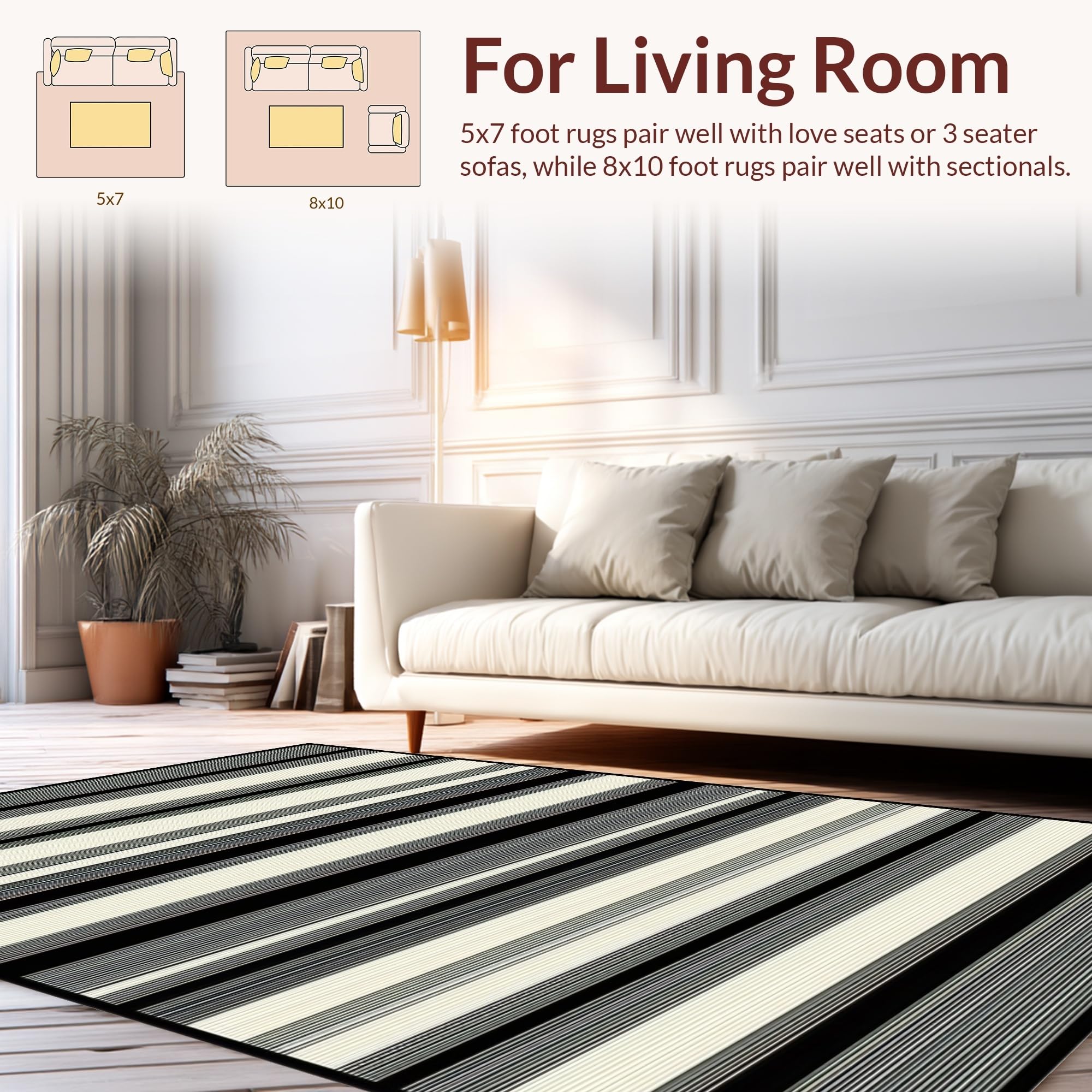 Ultra Soft Area Rug, Non Slip, Stain Resistant, Washable Area Rugs for Living Room, Bedroom, Timeless Classic Monochrome Design(Black) Overview: