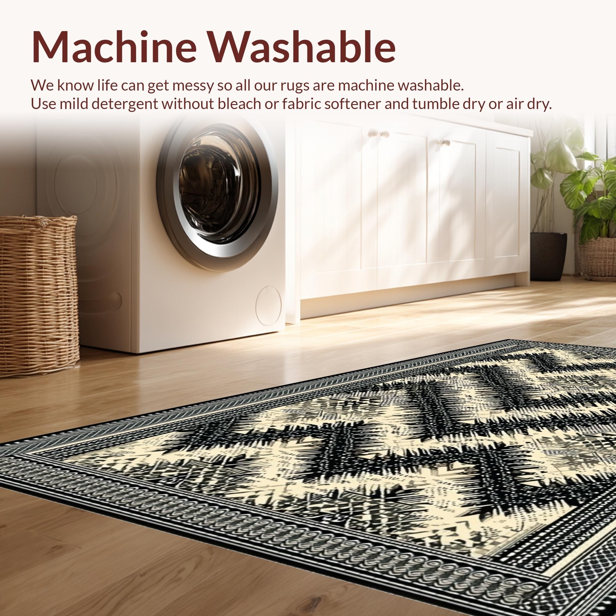 - Machine Washable: Our rugs can be easily thrown in the wash machine.