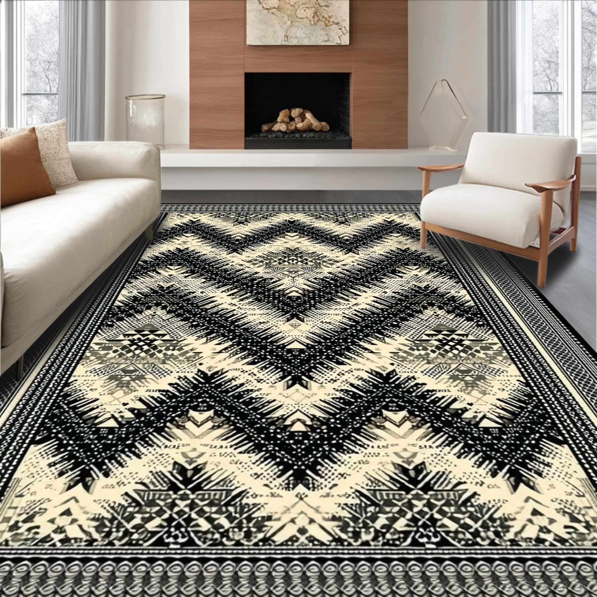 Ultra Soft Area Rug, Non Slip, Stain Resistant, Washable Area Rugs for Living Room, Bedroom, Timeless Classic Ogee Shape Style(Beige) Overview:
