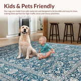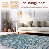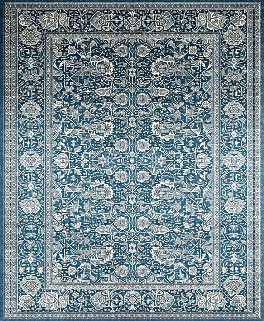 Ultra Soft Area Rug, Non Slip, Stain Resistant, Washable Area Rugs for Living Room, Bedroom, Timeless Dual-Toned Floral Arrangement(Blue) Overview:
