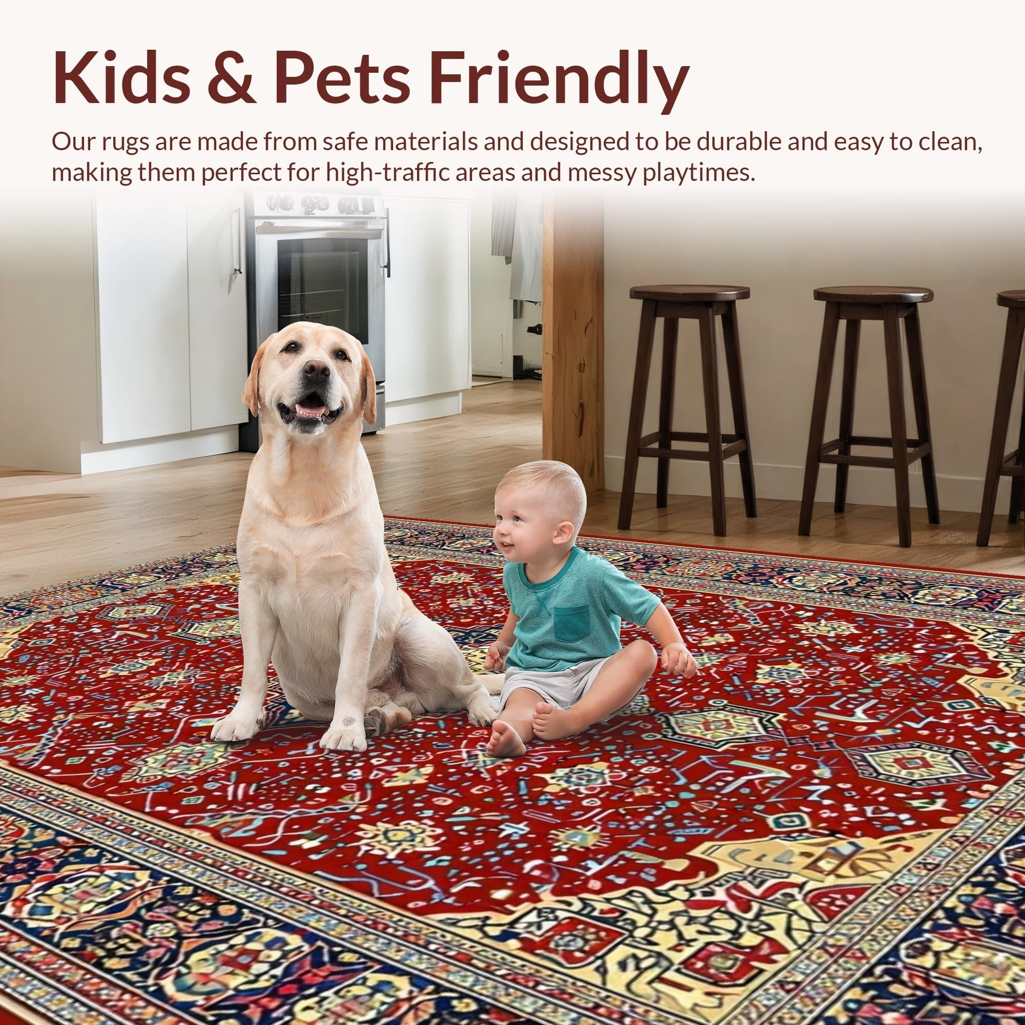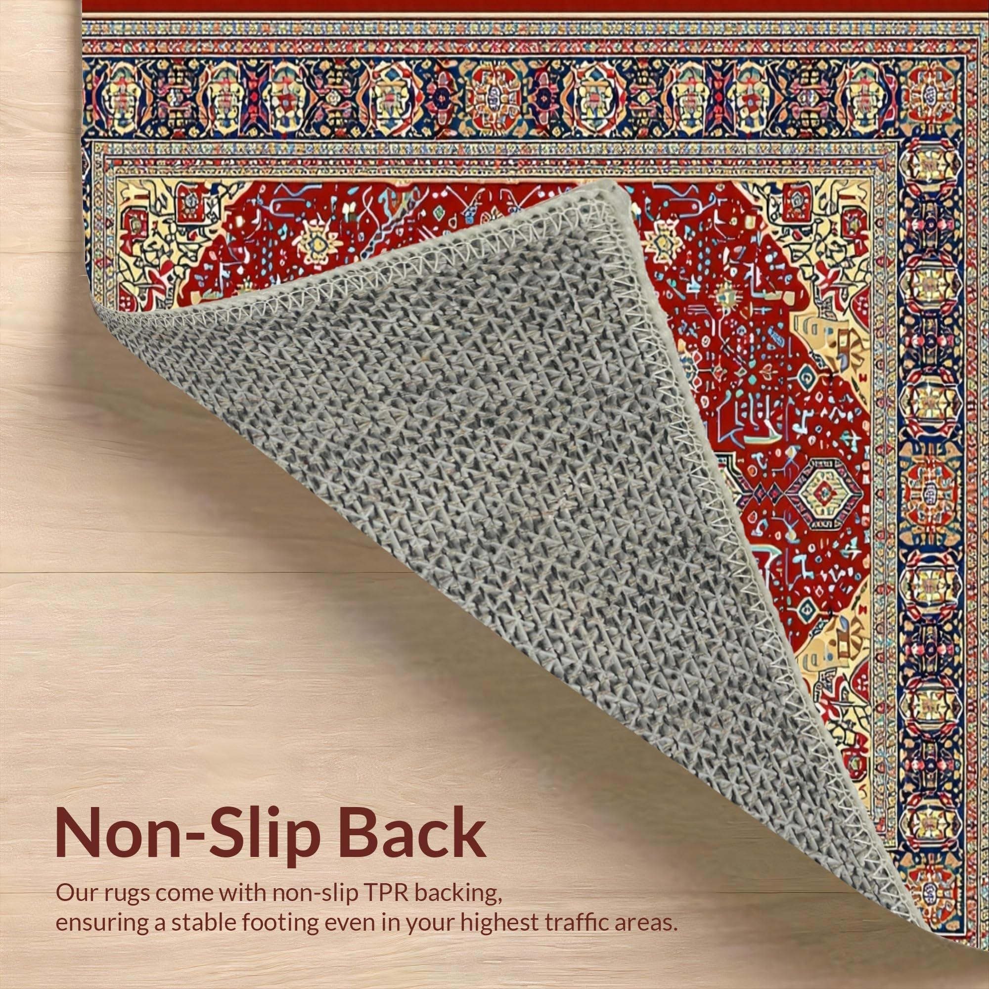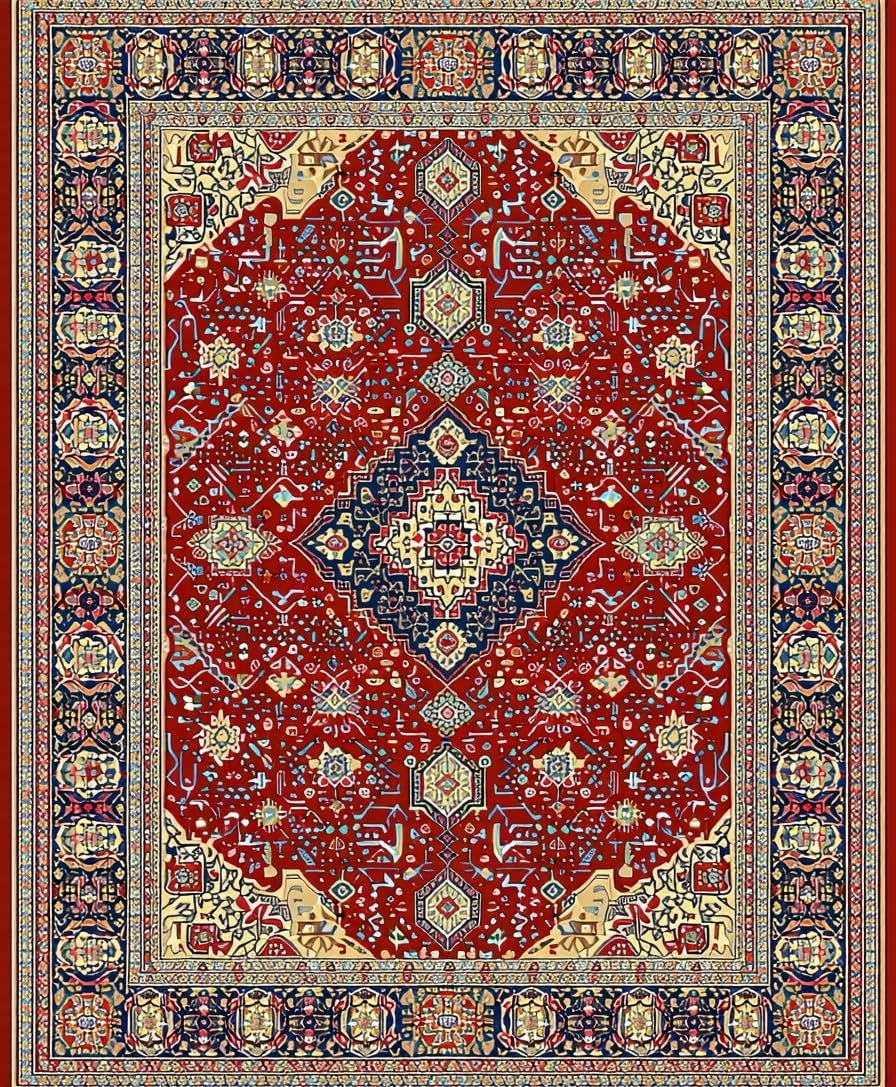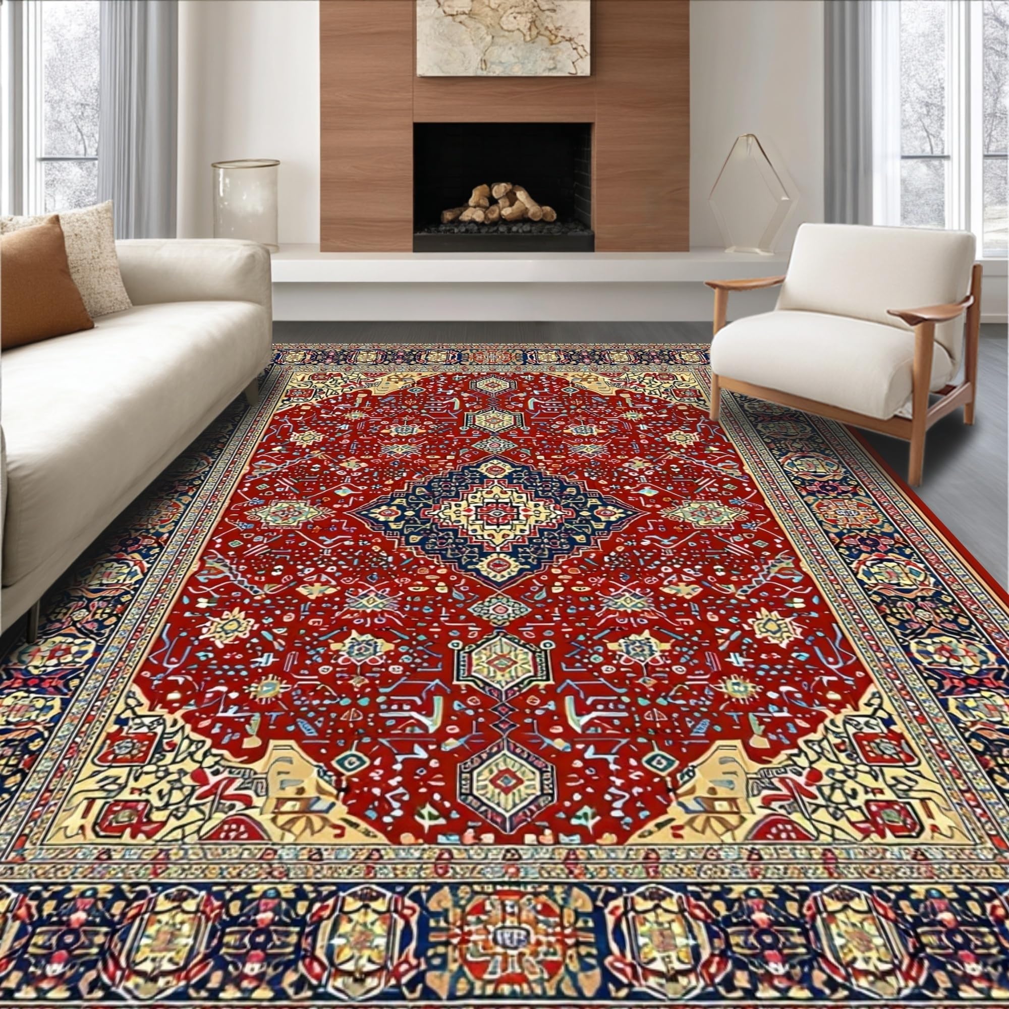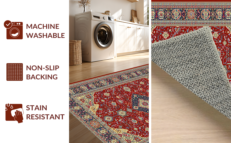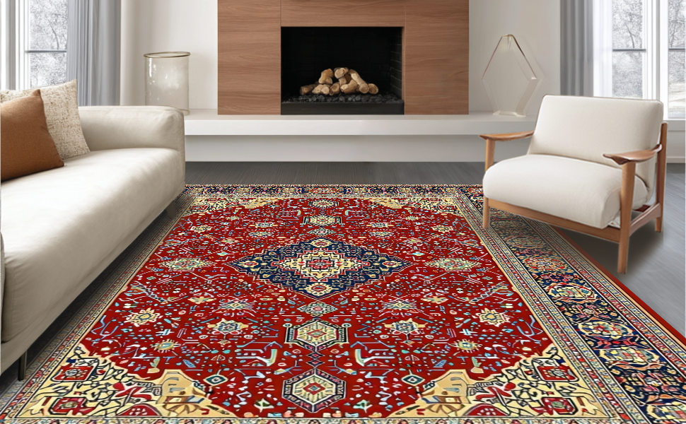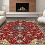 Ultra Soft Area Rug, Non Slip, Stain Resistant, Washable Area Rugs for Living Room, Bedroom, Timeless Earth Tone Medallion(Red) Overview: