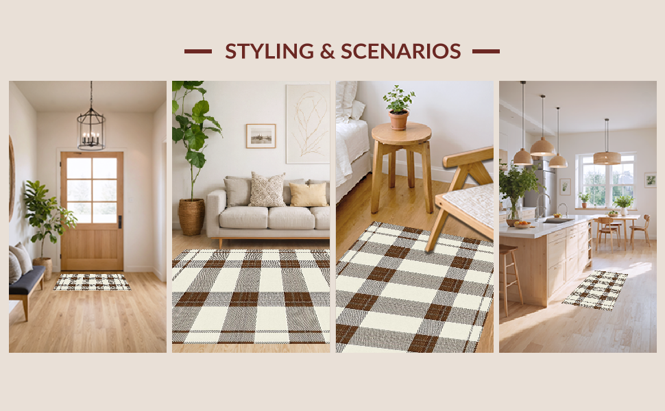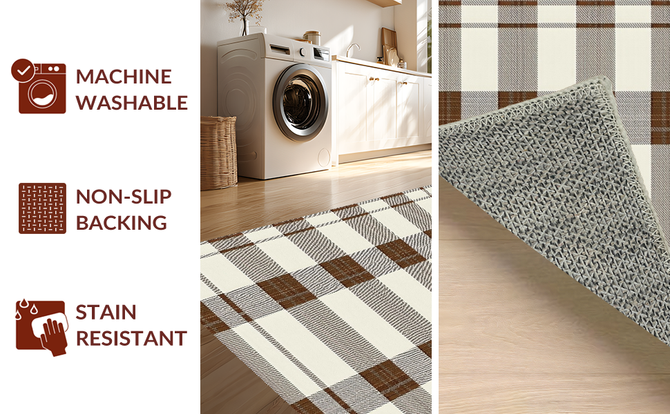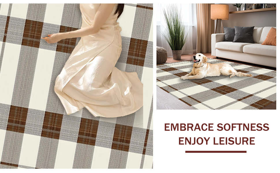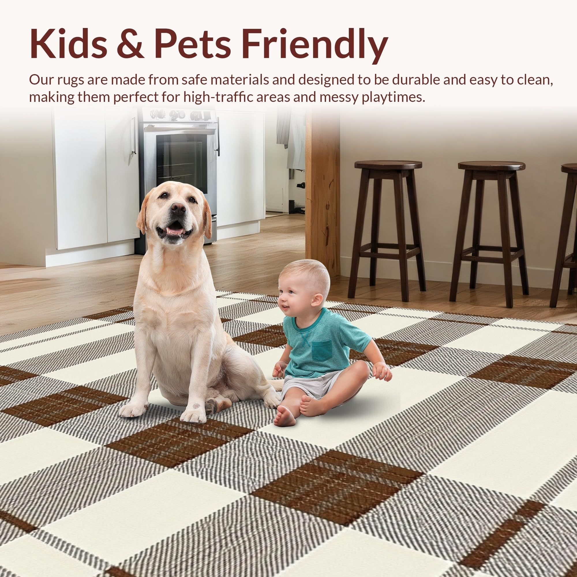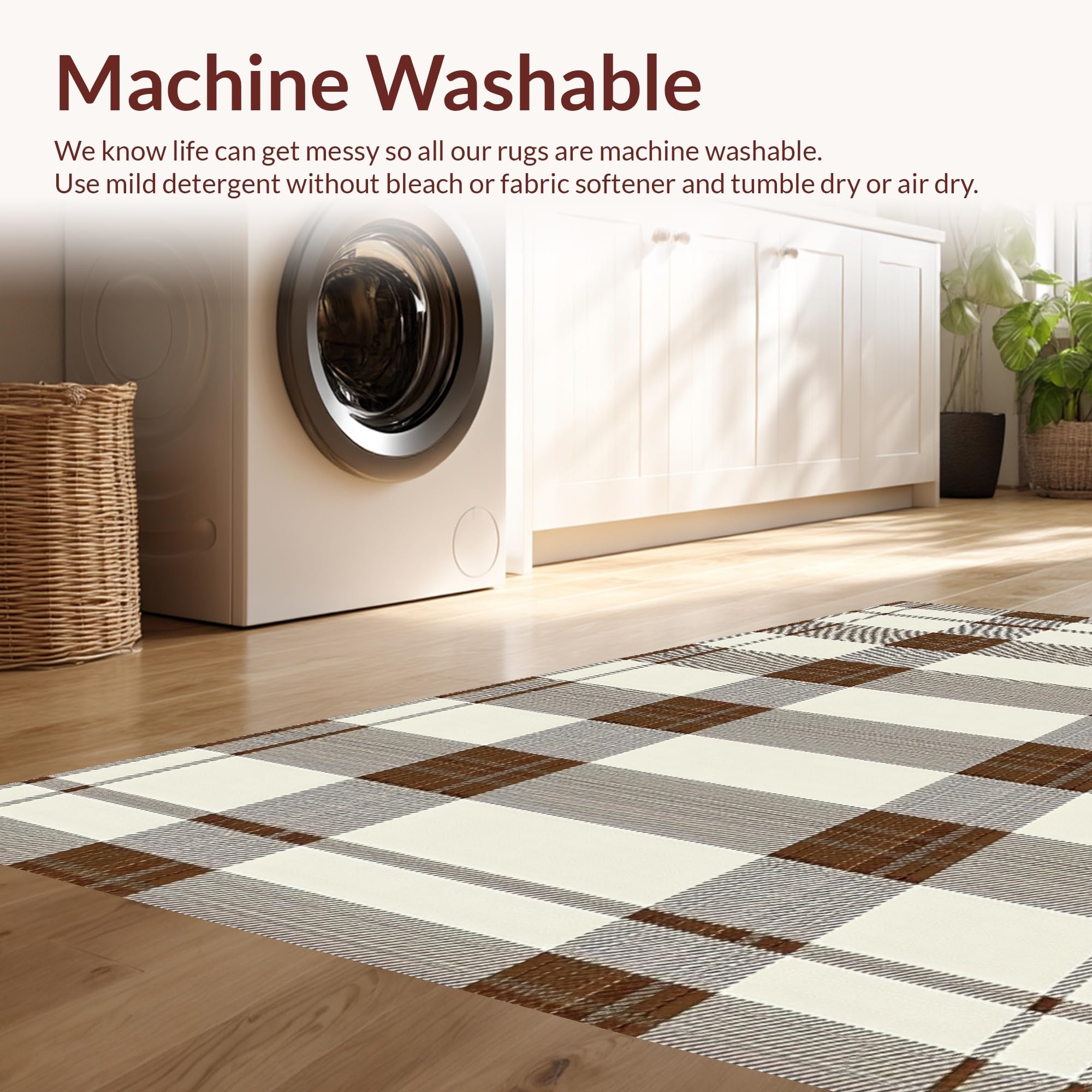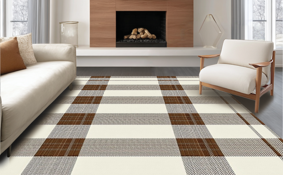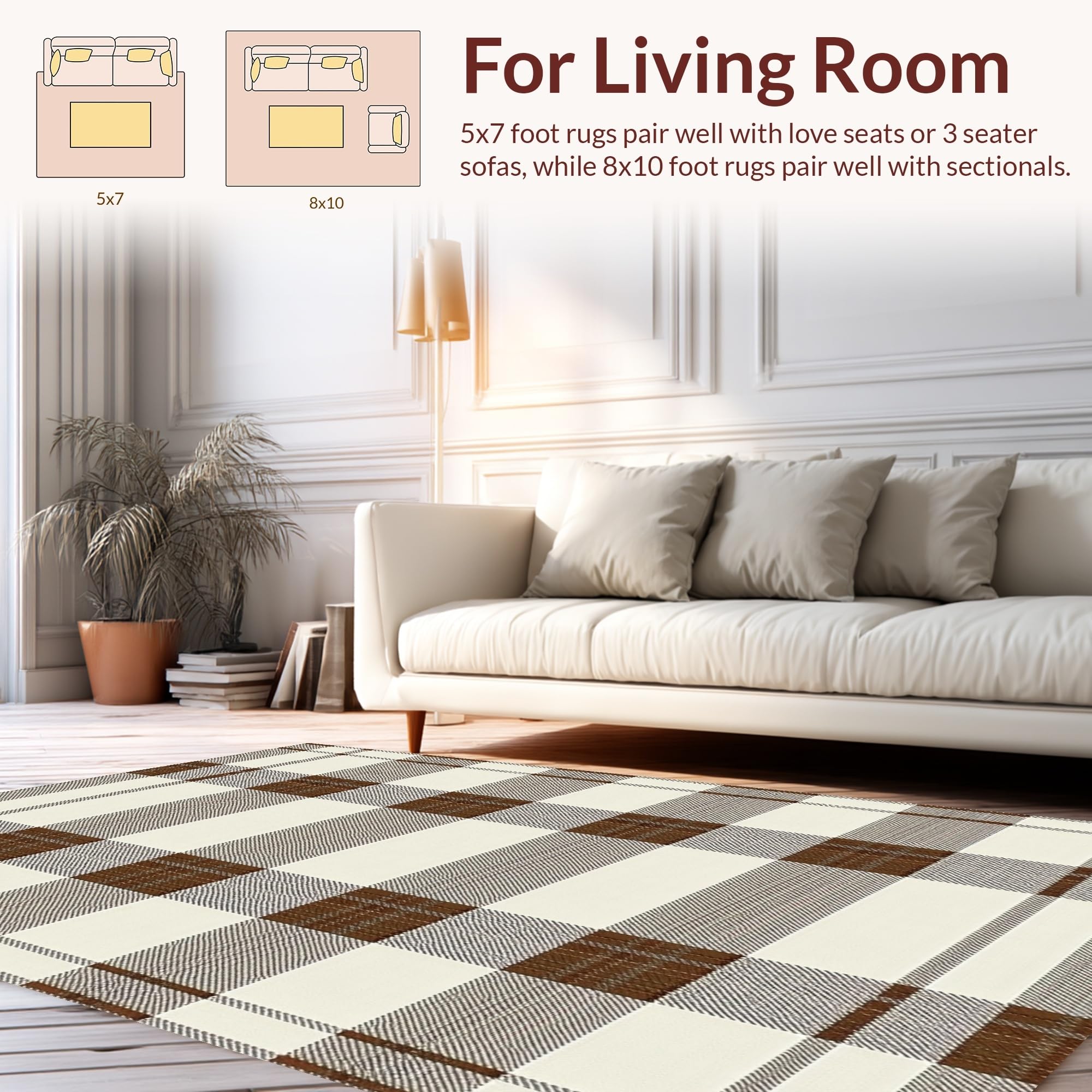 Ultra Soft Area Rug, Non Slip, Stain Resistant, Washable Area Rugs for Living Room, Bedroom, Timeless Earthy Plaid Elegance(Beige) Overview: