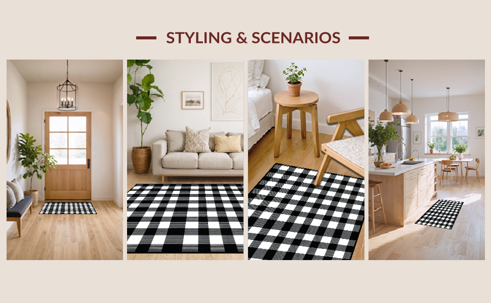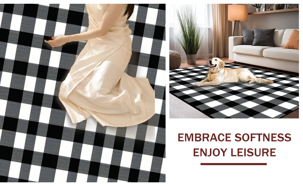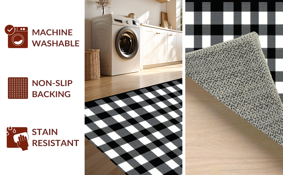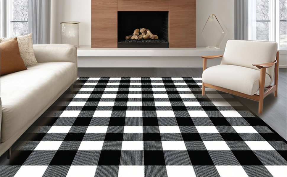 Ultra Soft Area Rug, Non Slip, Stain Resistant, Washable Area Rugs for Living Room, Bedroom, Timeless Farmhouse Inspired Checkerboard Look(Black) Overview: