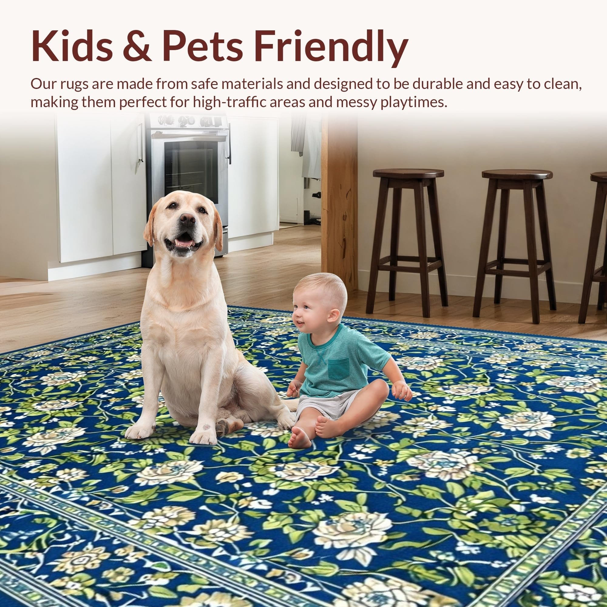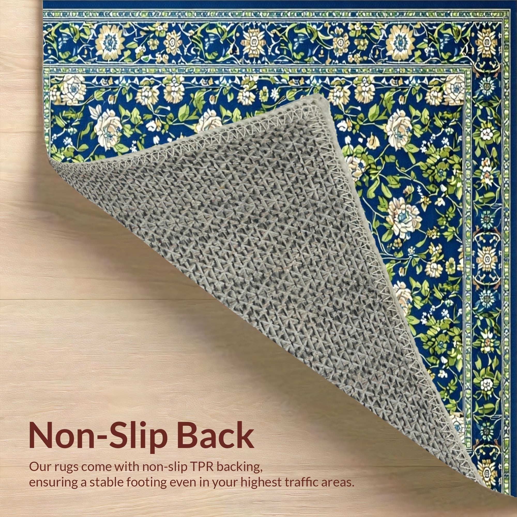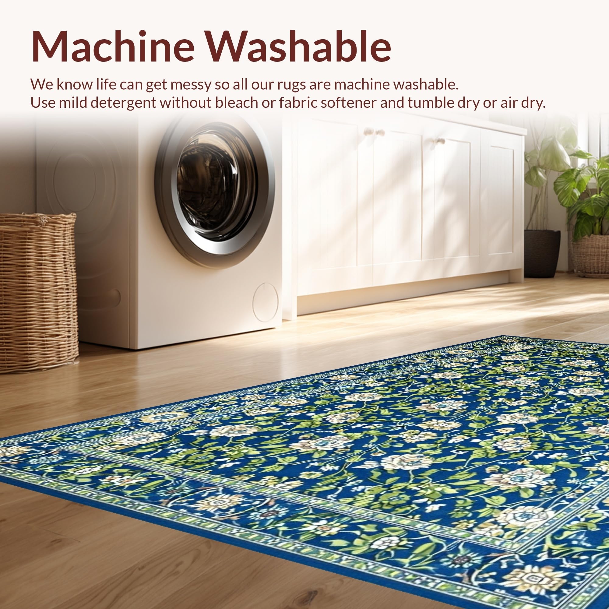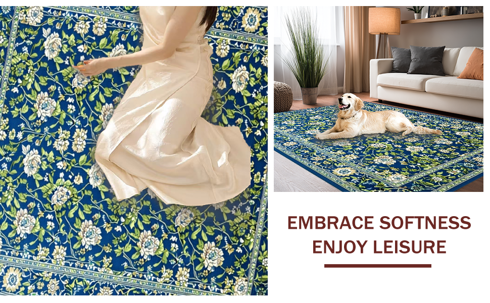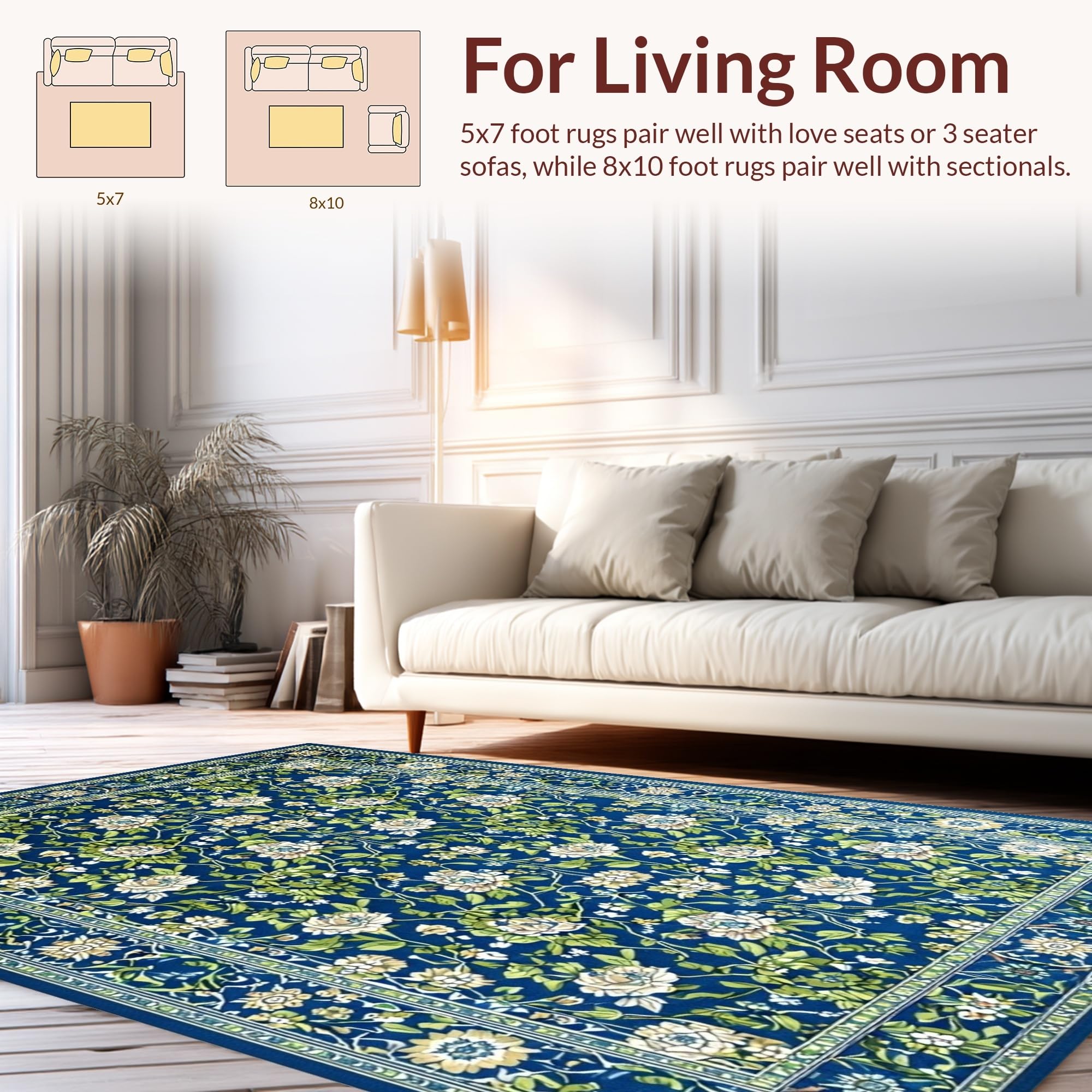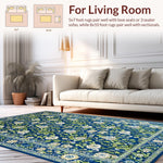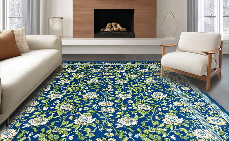 Ultra Soft Area Rug, Non Slip, Stain Resistant, Washable Area Rugs for Living Room, Bedroom, Timeless Floral Design with Grace(Blue) Overview: