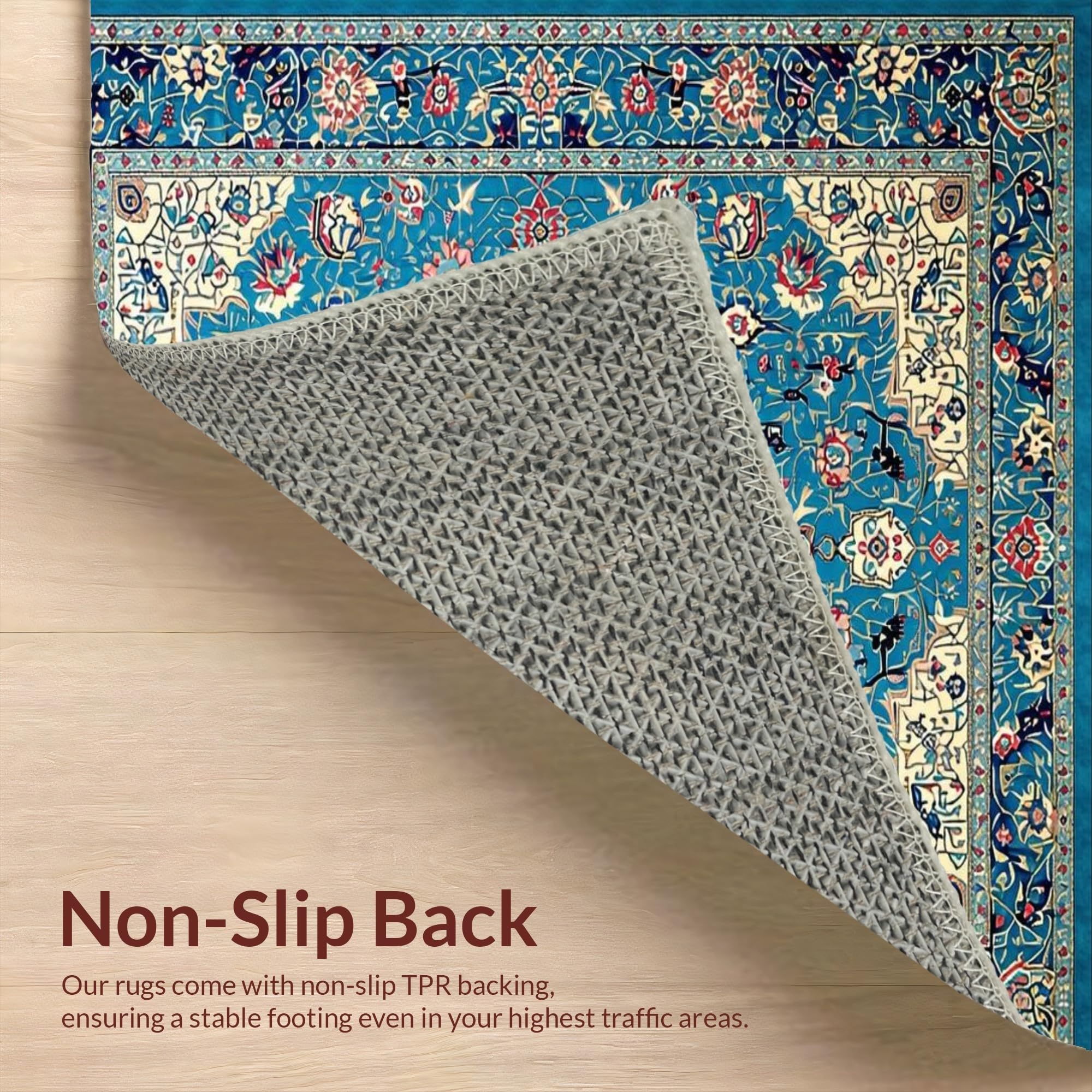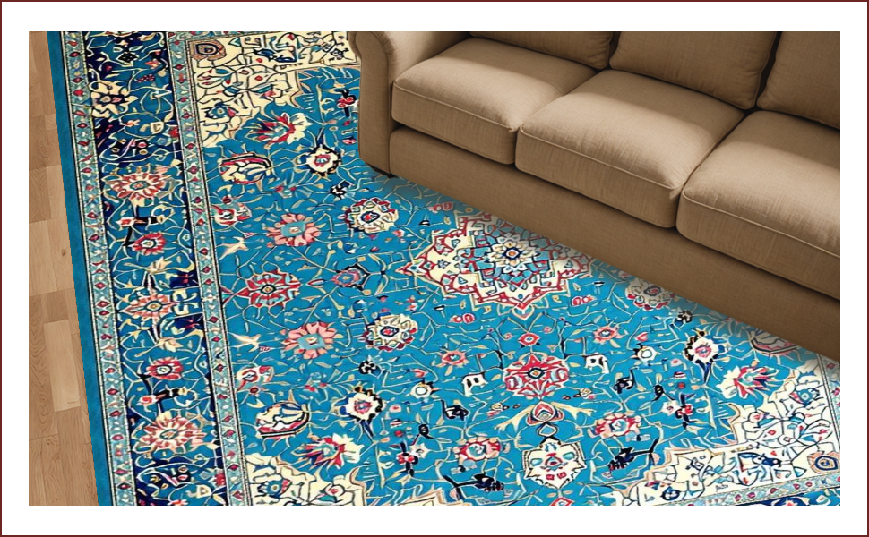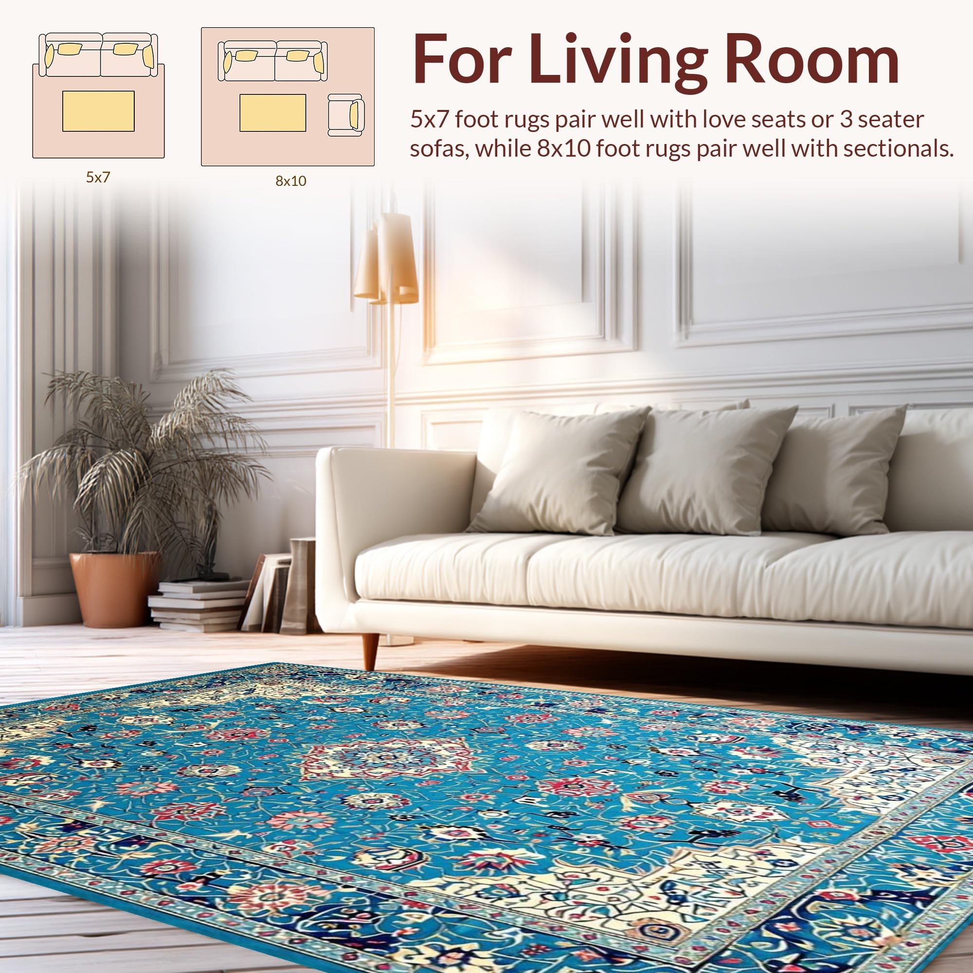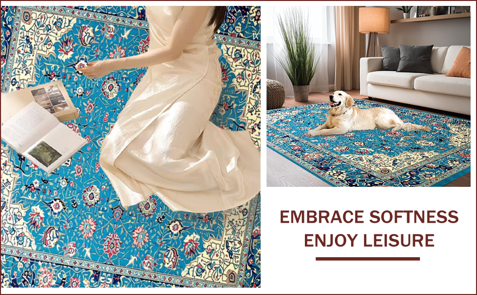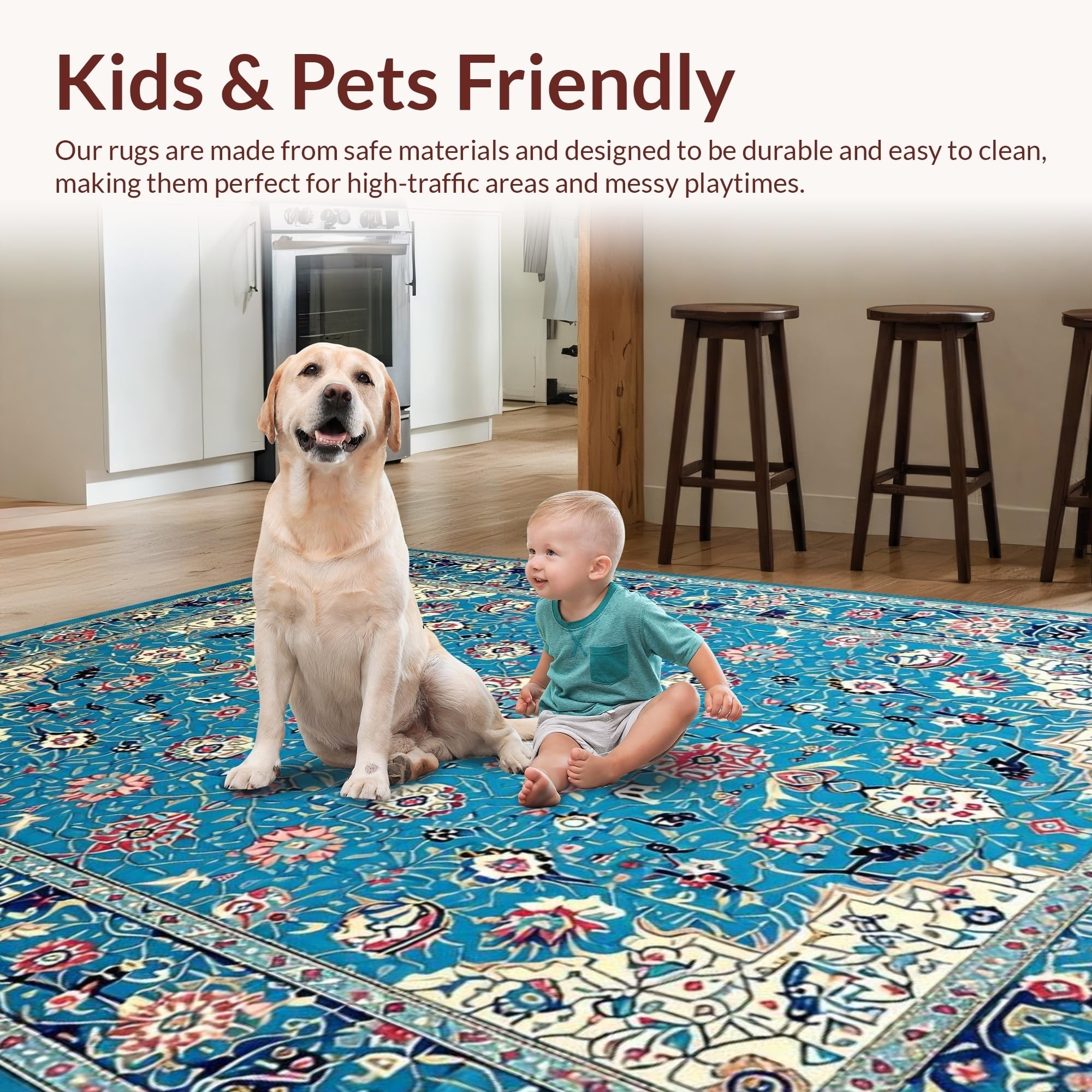 Ultra Soft Area Rug, Non Slip, Stain Resistant, Washable Area Rugs for Living Room, Bedroom, Timeless Geometric Blue Harmony(Blue) Overview: