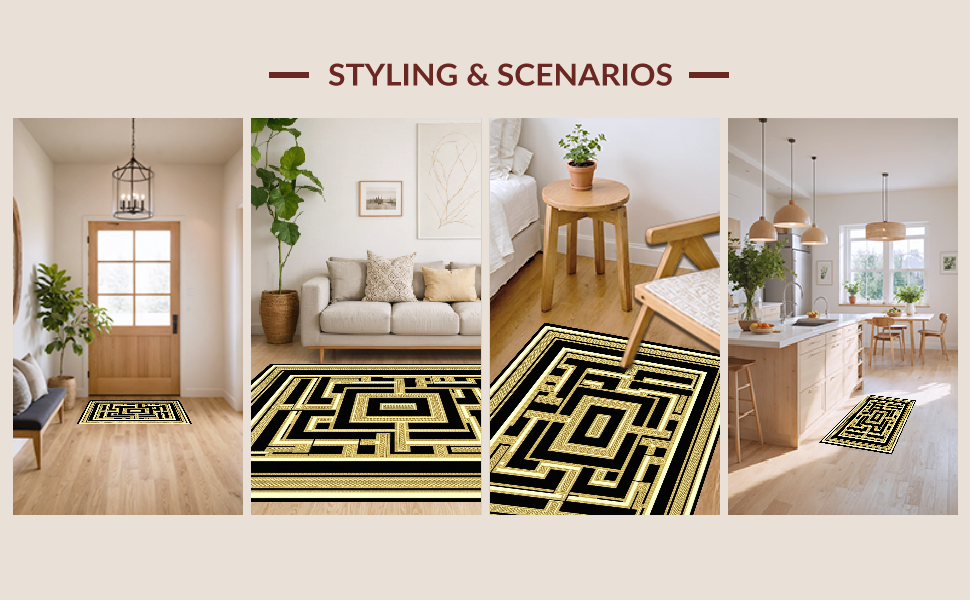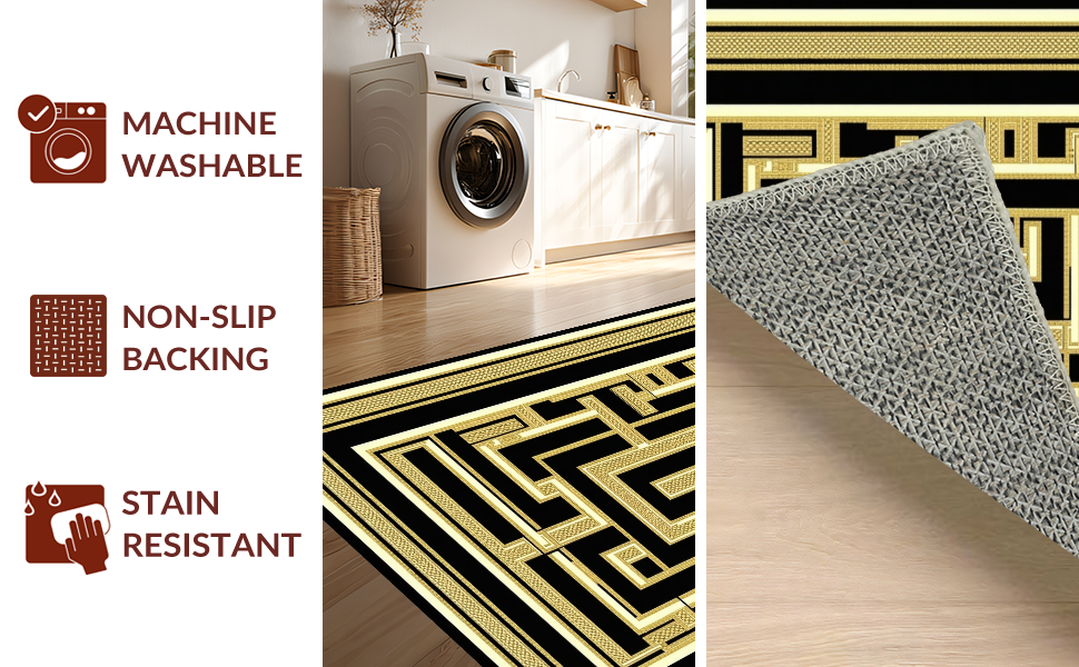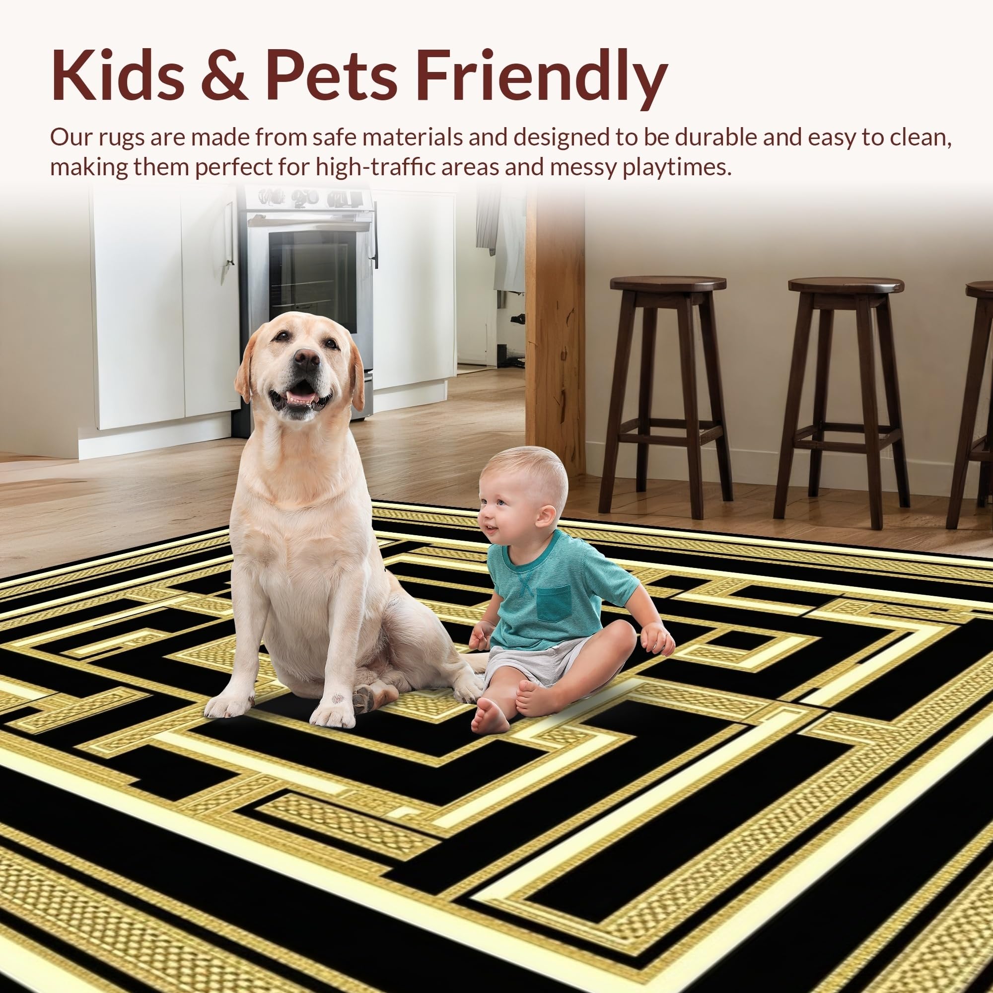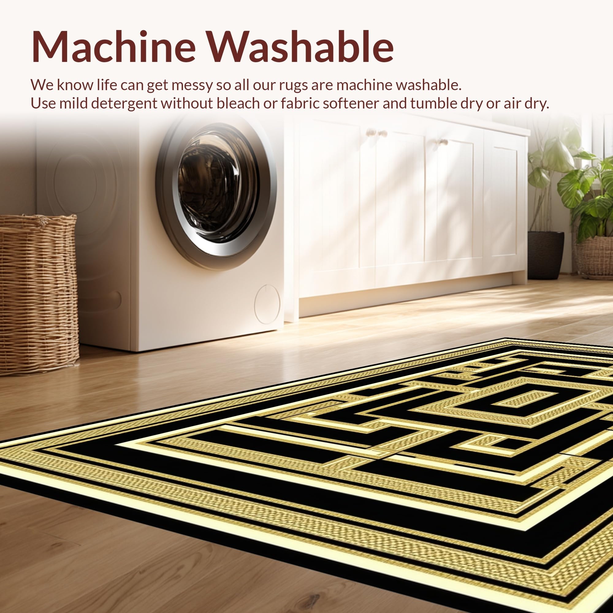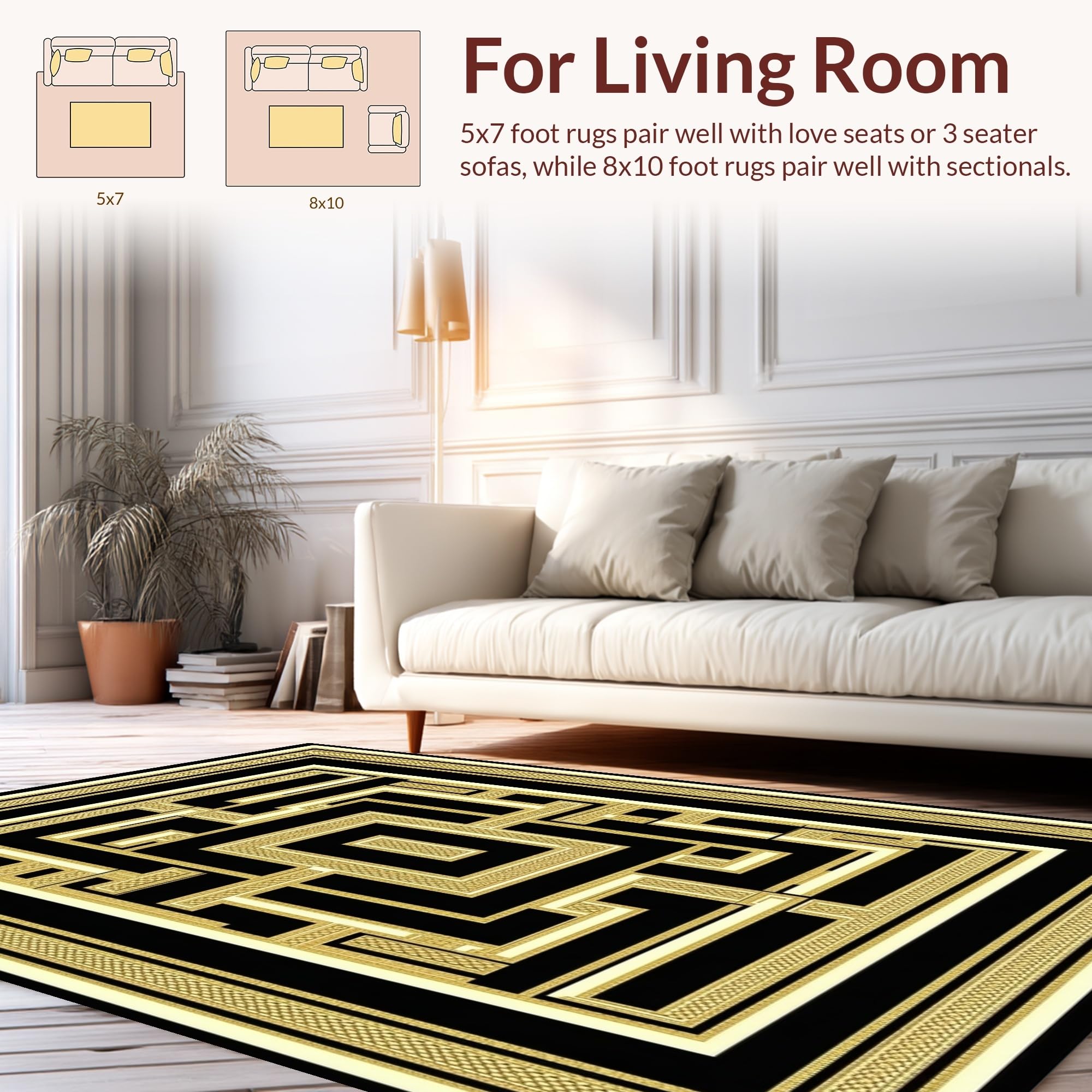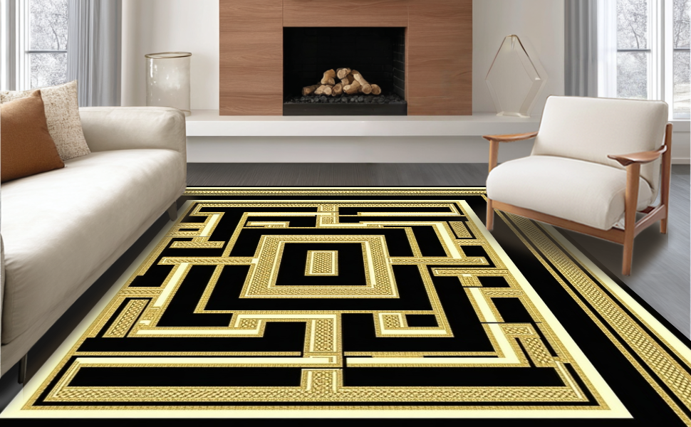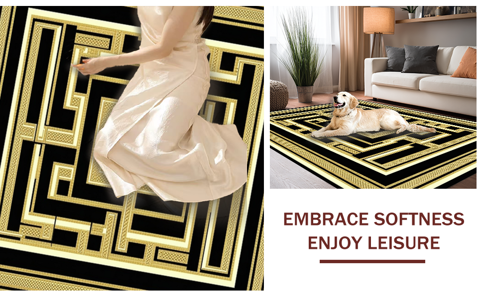 Ultra Soft Area Rug, Non Slip, Stain Resistant, Washable Area Rugs for Living Room, Bedroom, Timeless Greek Key Elegance(Black) Overview: