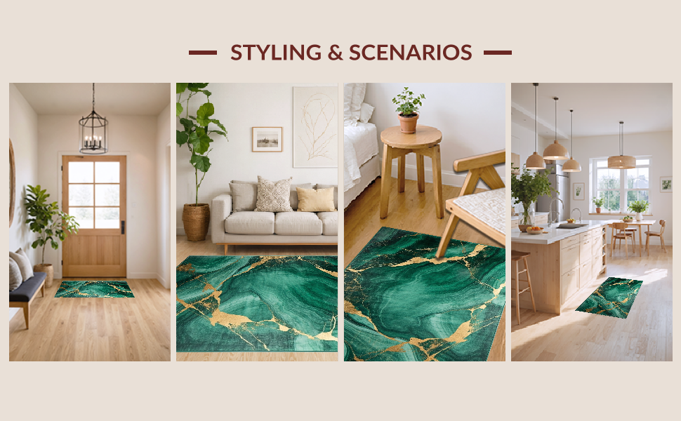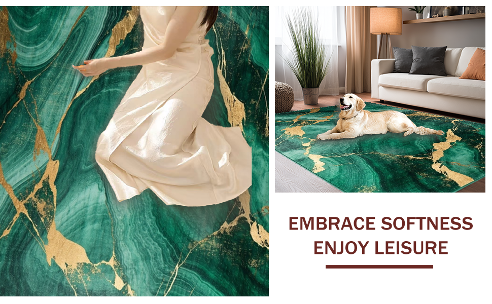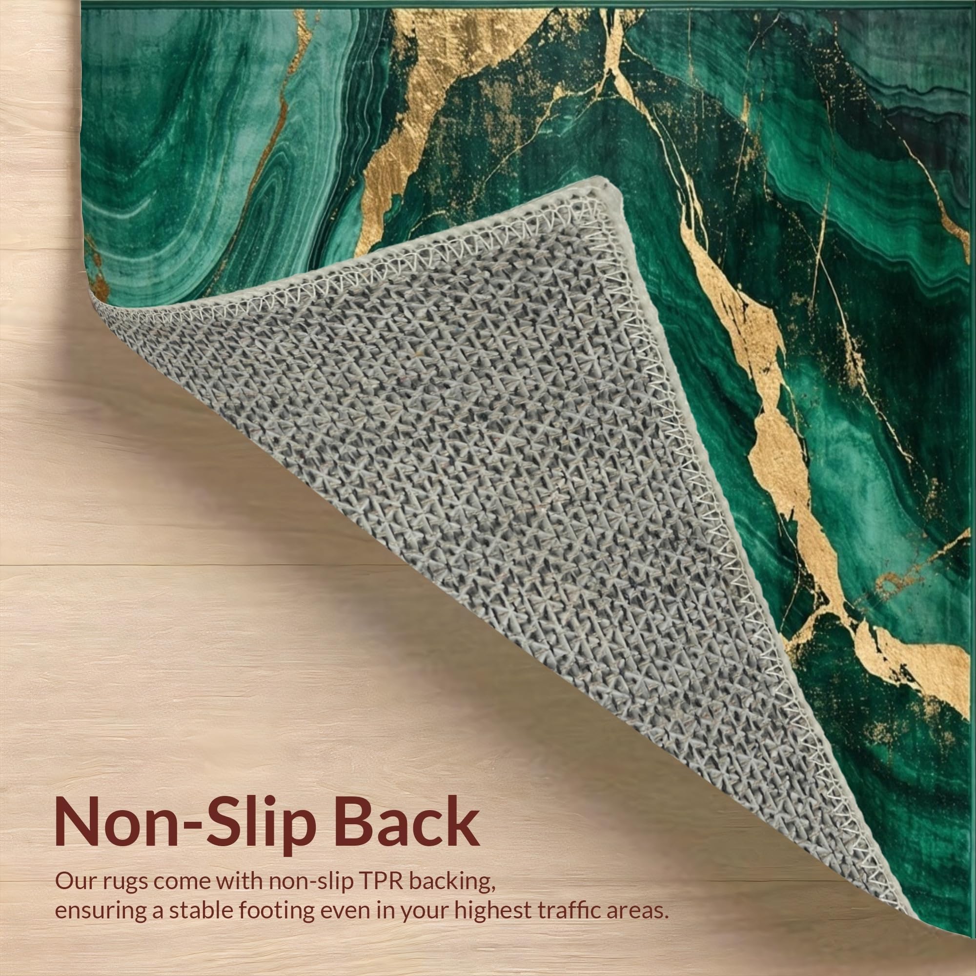 Ultra Soft Area Rug, Non Slip, Stain Resistant, Washable Area Rugs for Living Room, Bedroom, Timeless Green and Gold Elegance(Green) Overview: