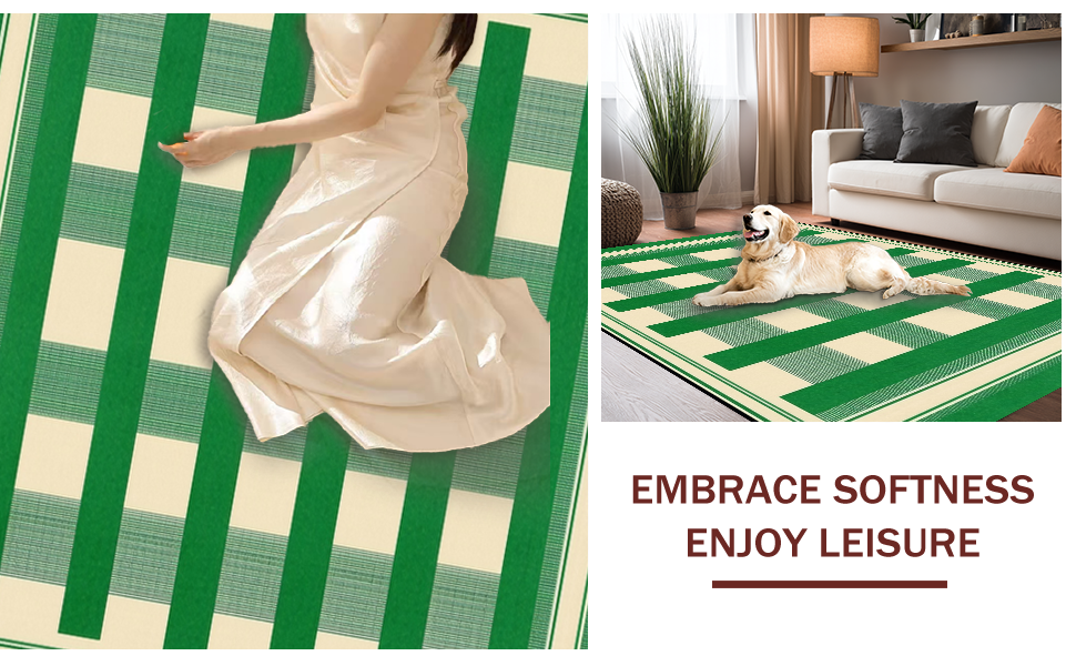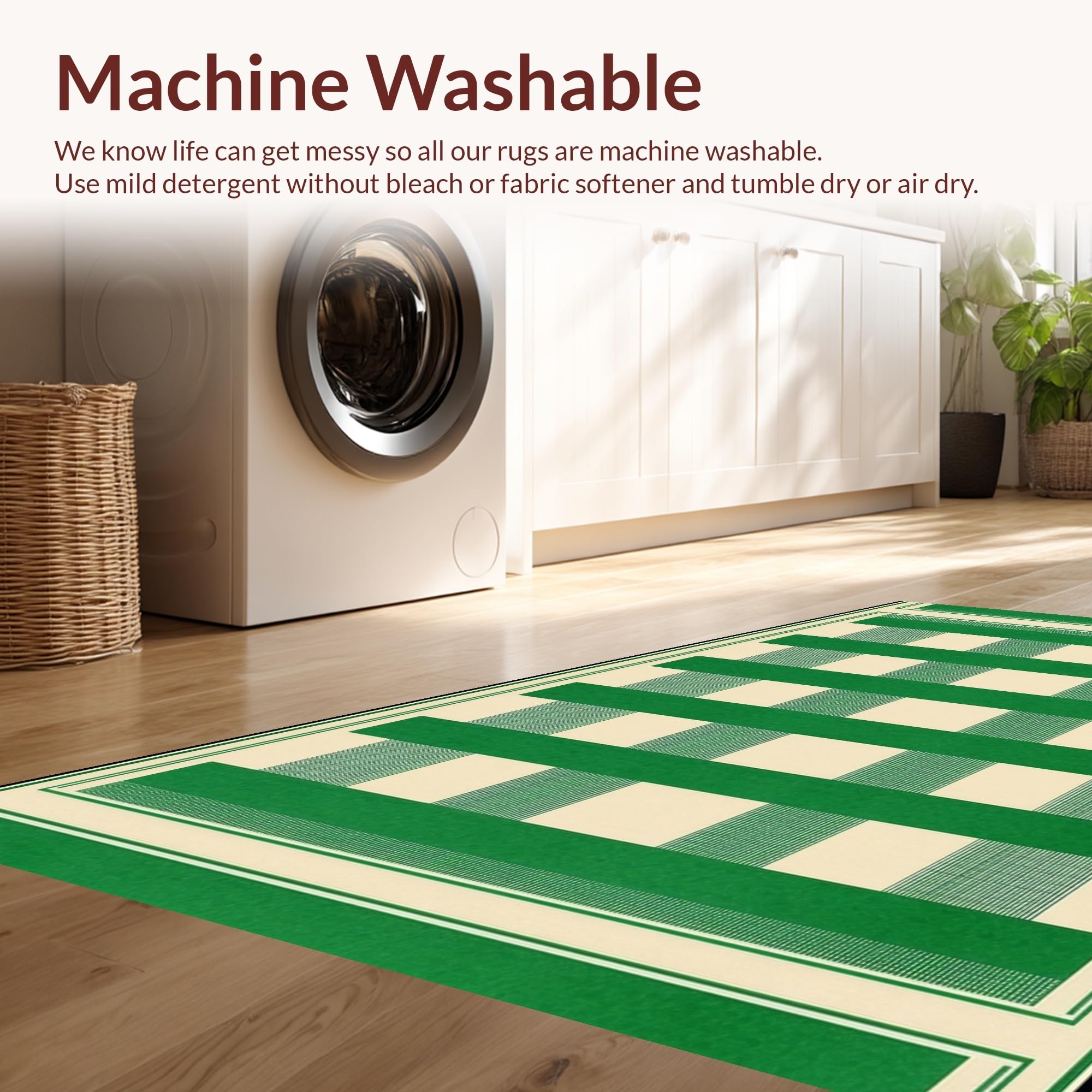 Ultra Soft Area Rug, Non Slip, Stain Resistant, Washable Area Rugs for Living Room, Bedroom, Timeless Green Checkered Aesthetic(Green) Overview: