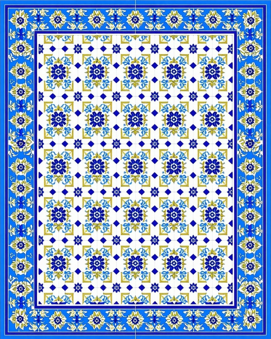Timeless Mediterranean Tile Classic Azure and Cream(Blue)