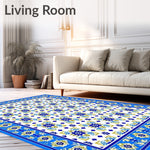 Flatwoven High Traffic Area Rug, Timeless Mediterranean Tile Classic Azure and Cream, Non Slip, Stain Resistant, Washable Area Rugs for Living Room, Bedroom (Blue) Overview: