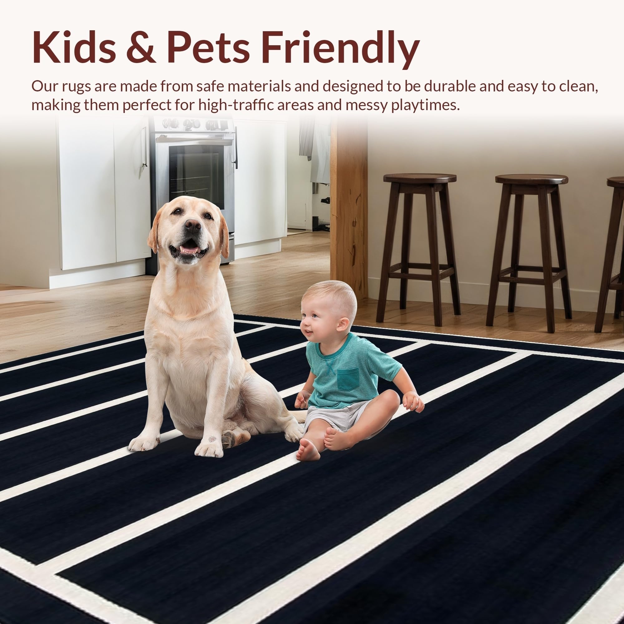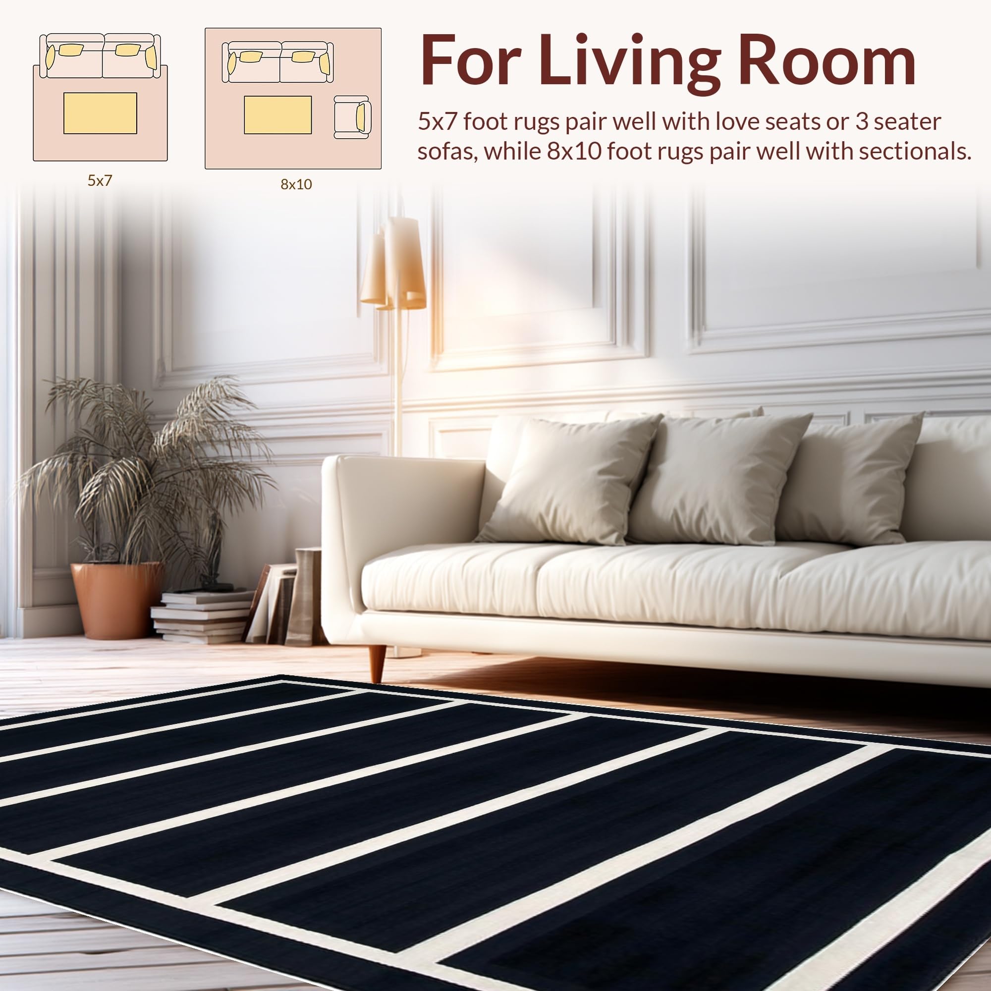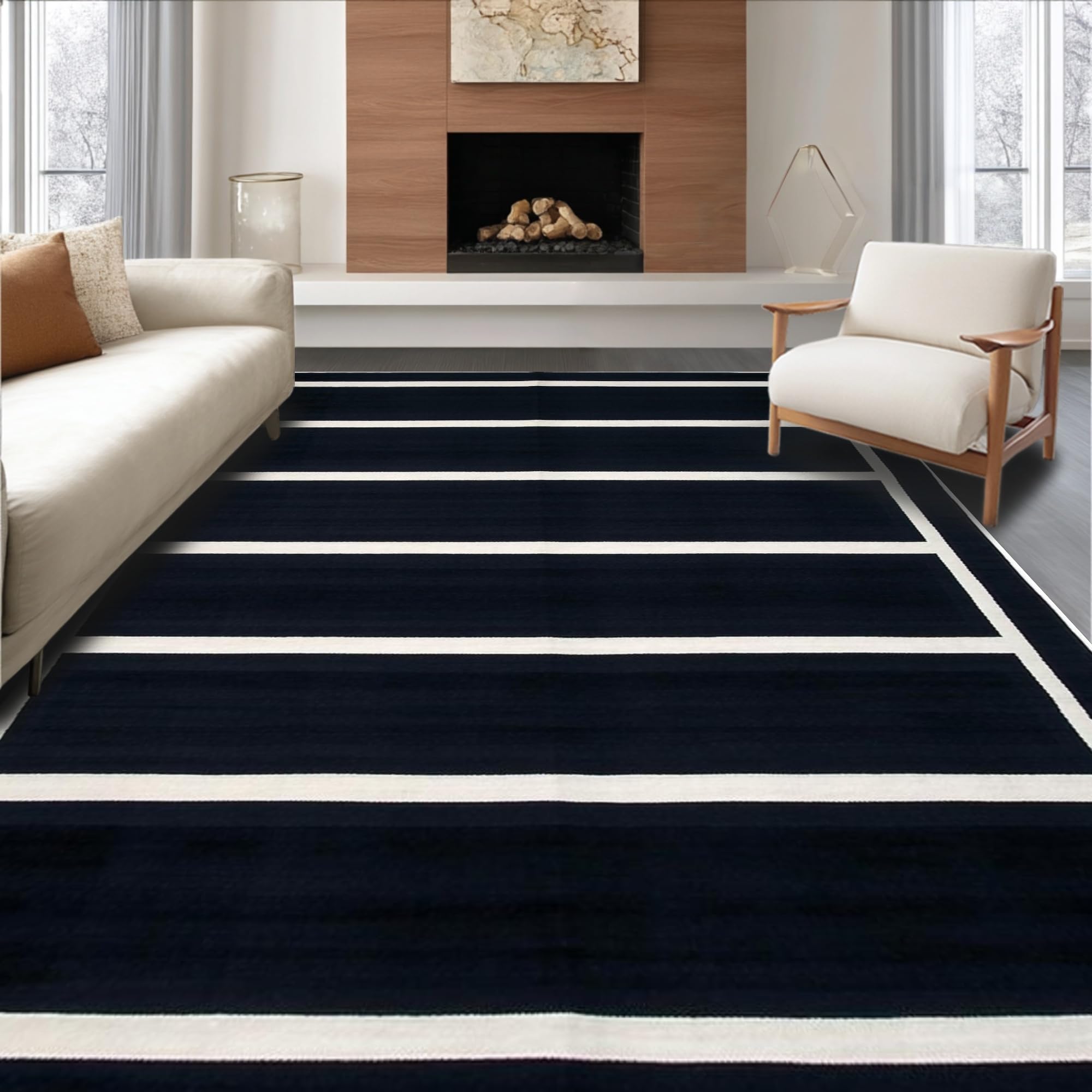 Ultra Soft Area Rug, Non Slip, Stain Resistant, Washable Area Rugs for Living Room, Bedroom, Timeless Monochrome Checkerboard Aesthetic(Black) Overview: