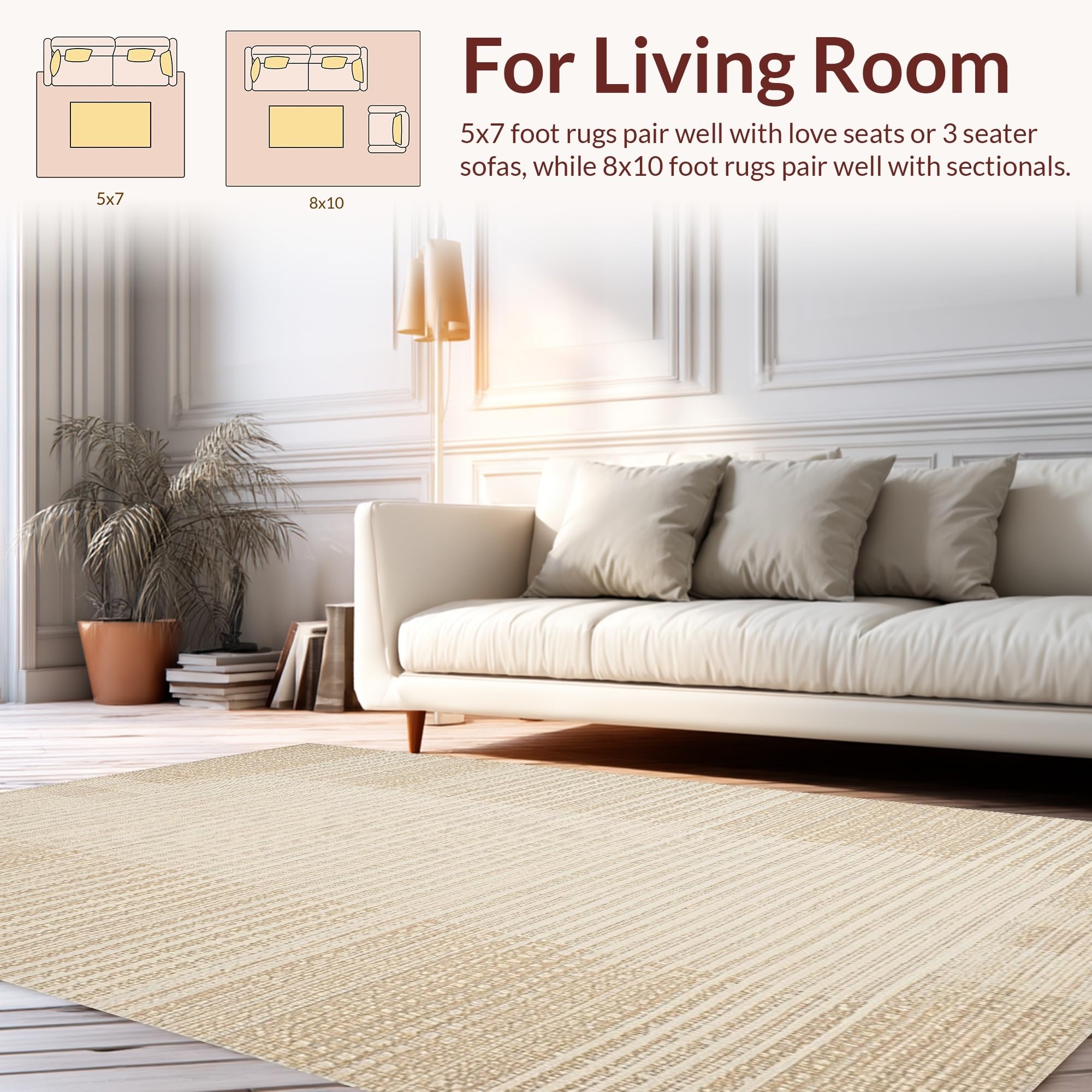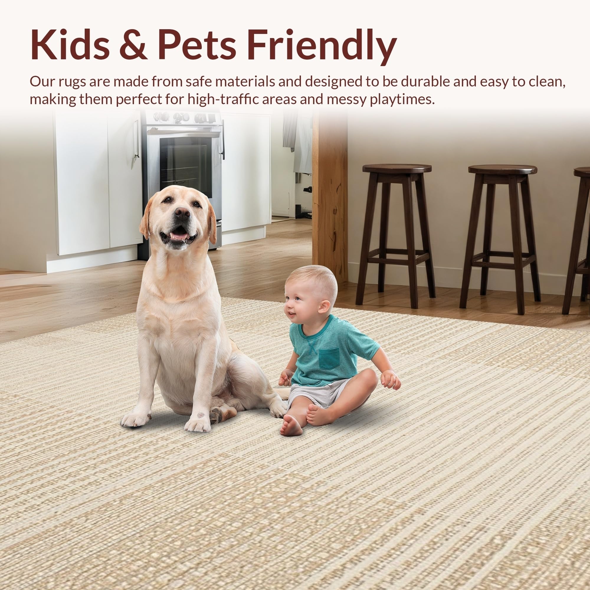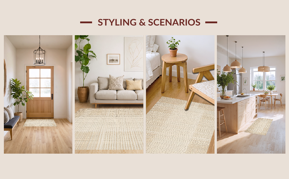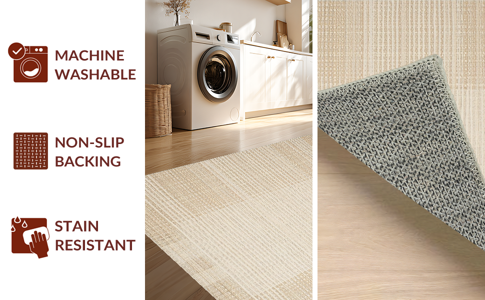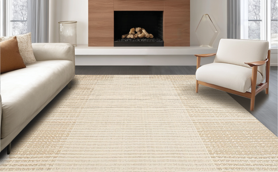 Ultra Soft Area Rug, Non Slip, Stain Resistant, Washable Area Rugs for Living Room, Bedroom, Timeless Neutral Tones Pattern(Beige) Overview: