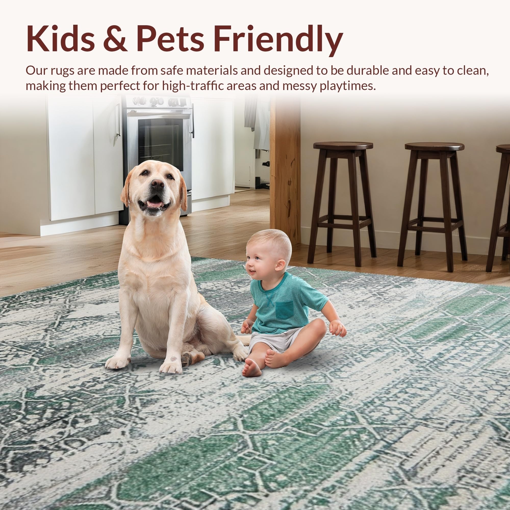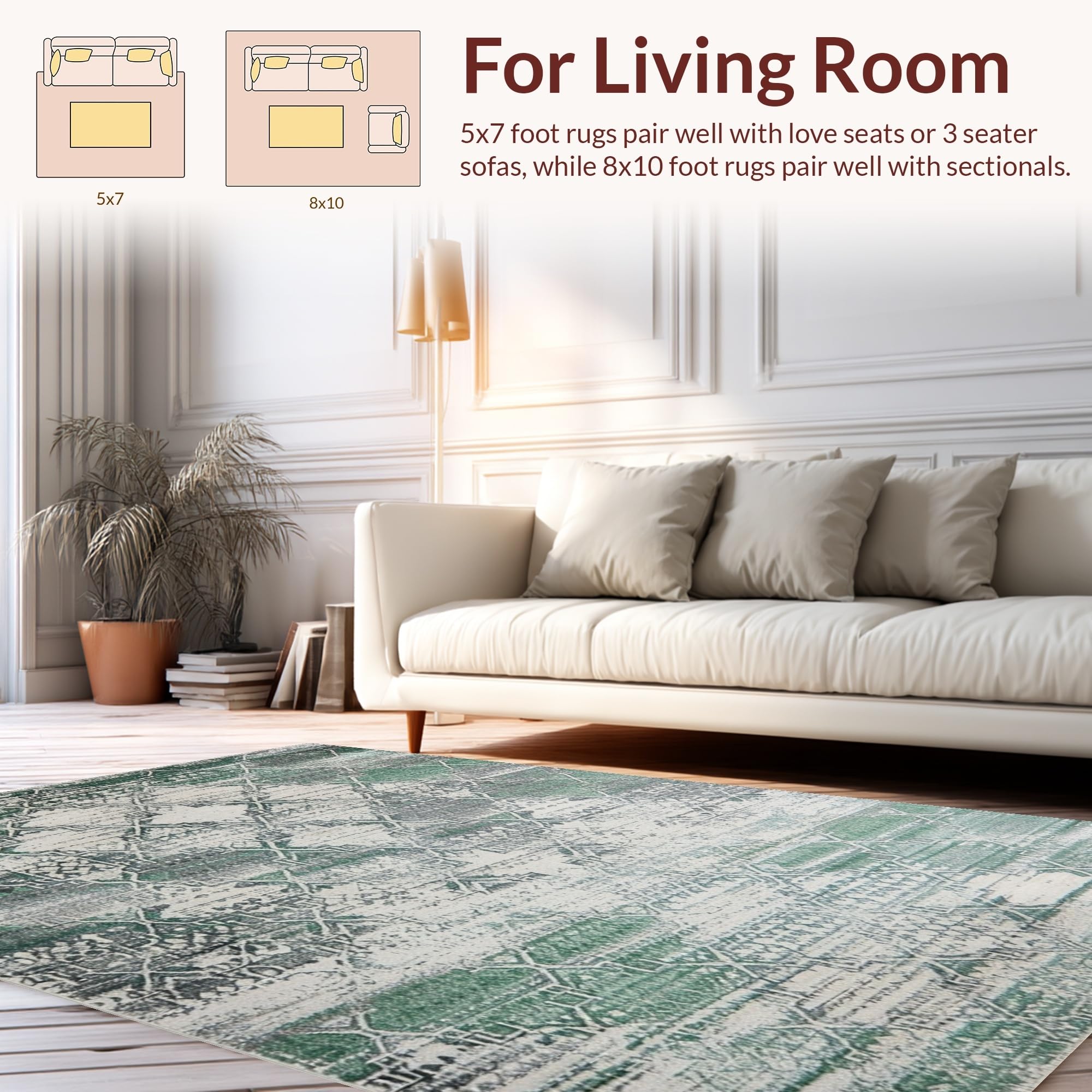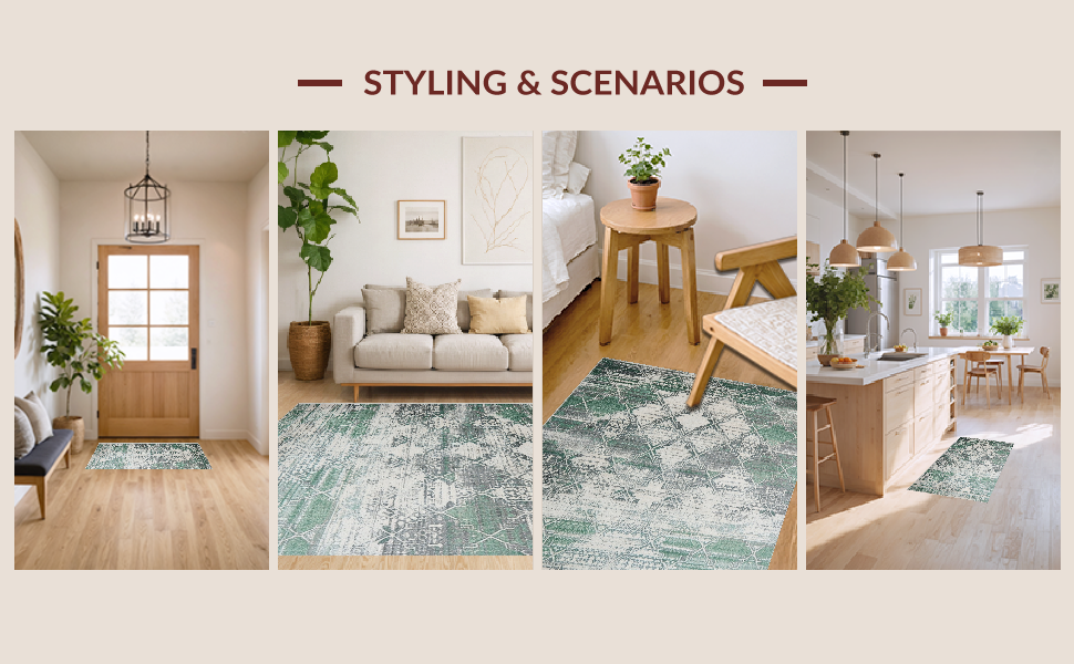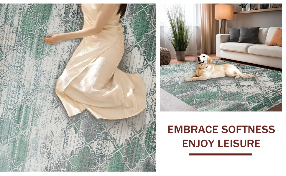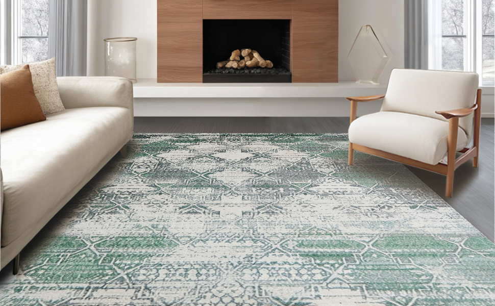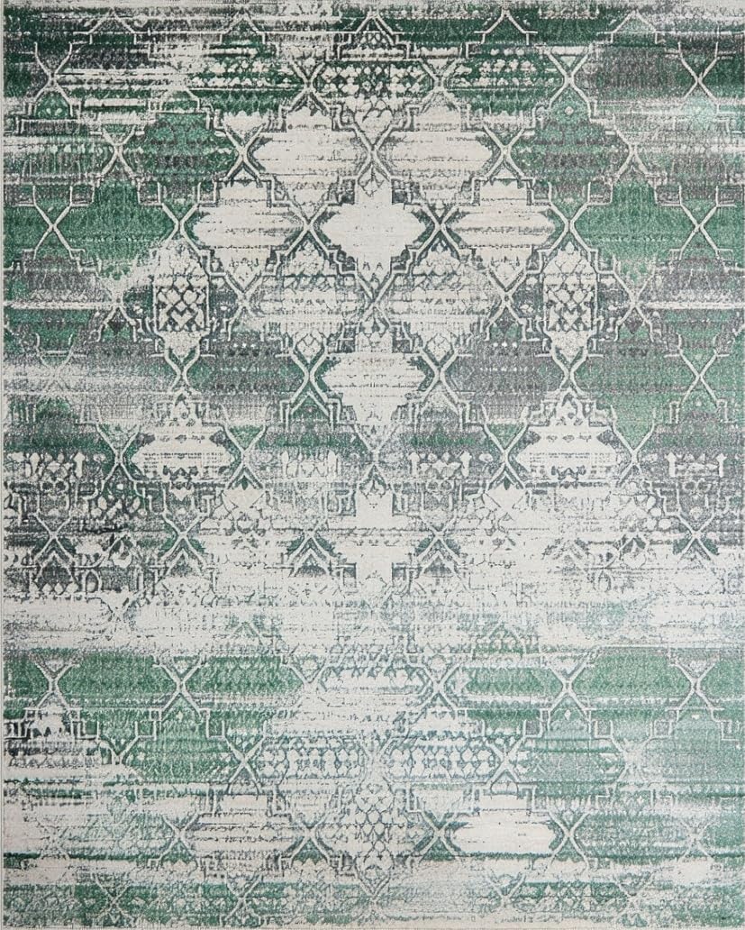 Ultra Soft Area Rug, Non Slip, Stain Resistant, Washable Area Rugs for Living Room, Bedroom, Timeless Ogee Pattern with Warm Hues(Green) Overview: