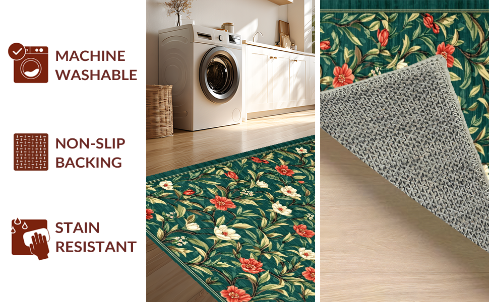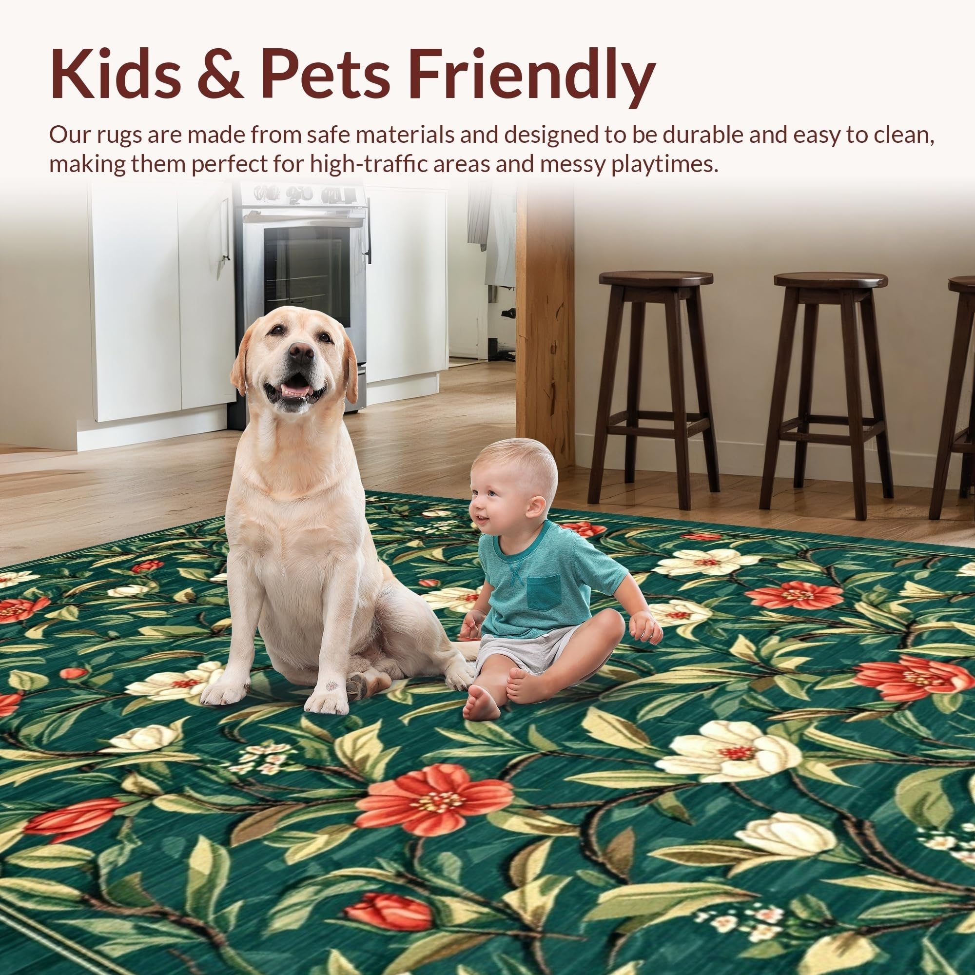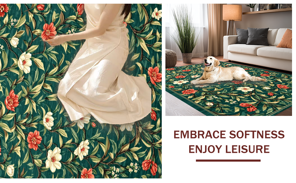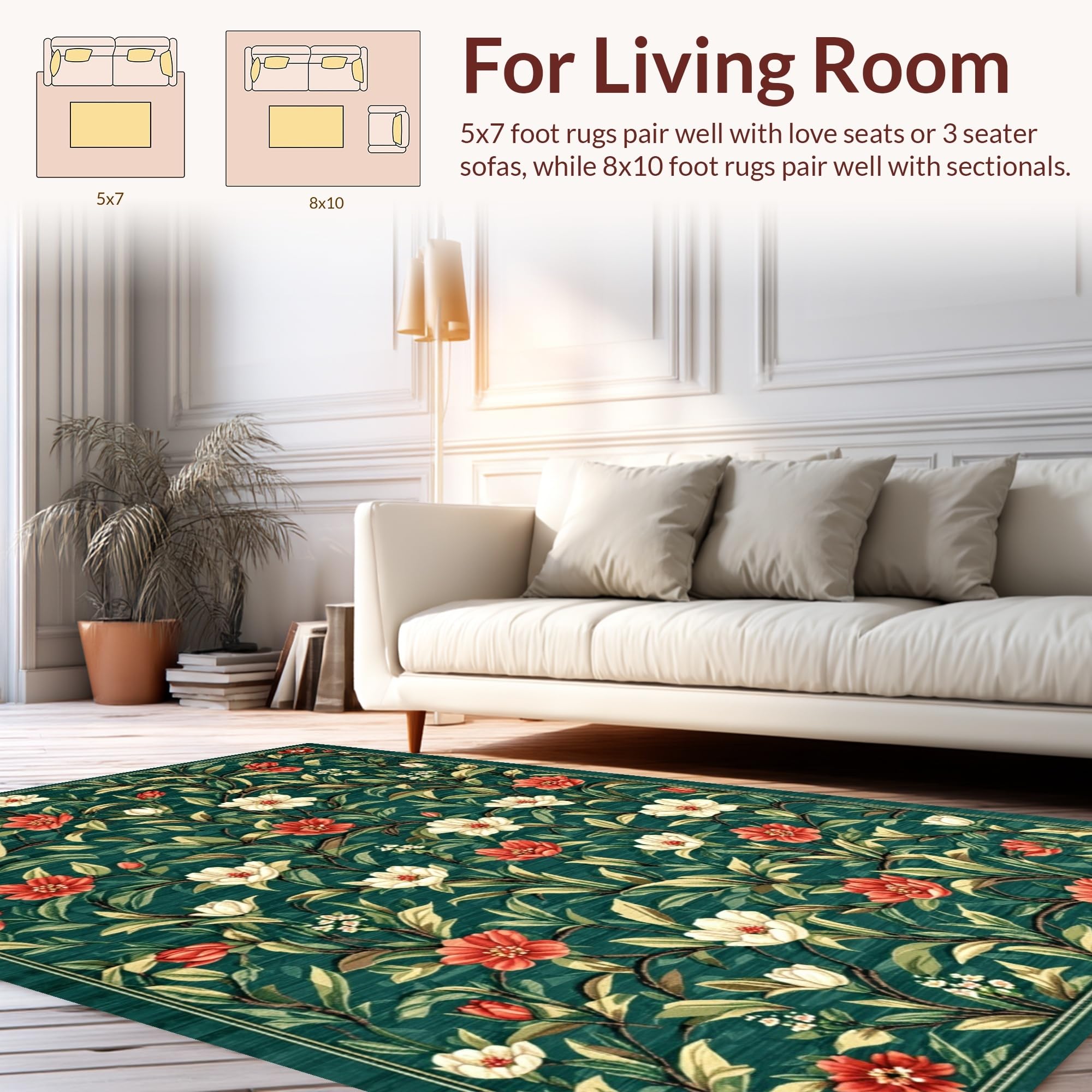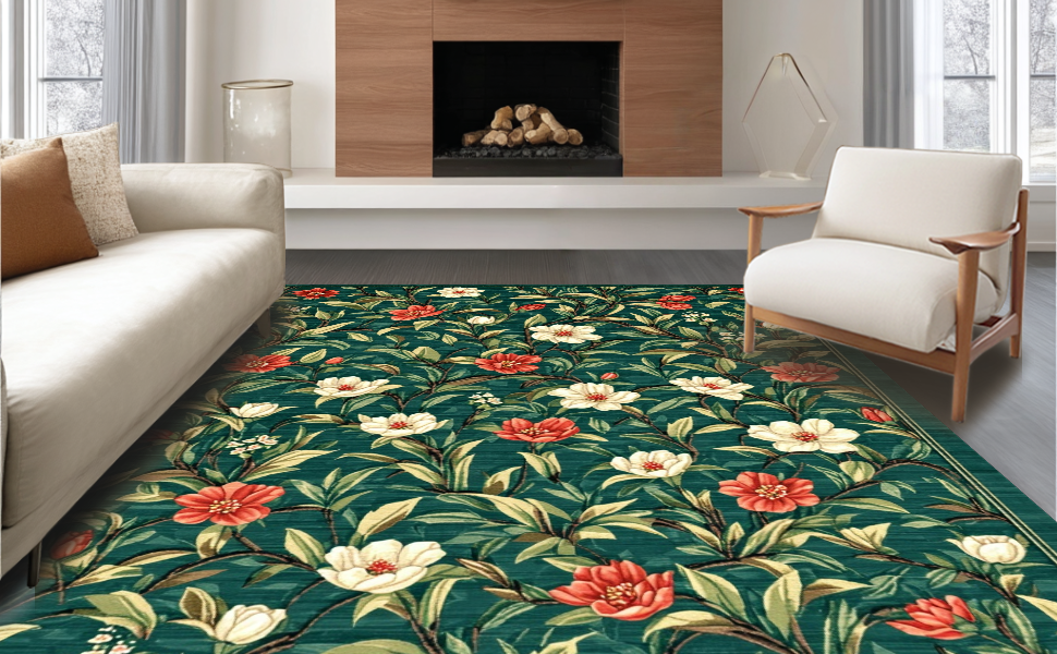 Ultra Soft Area Rug, Non Slip, Stain Resistant, Washable Area Rugs for Living Room, Bedroom, Timeless Romantic Green Palette(Green) Overview: