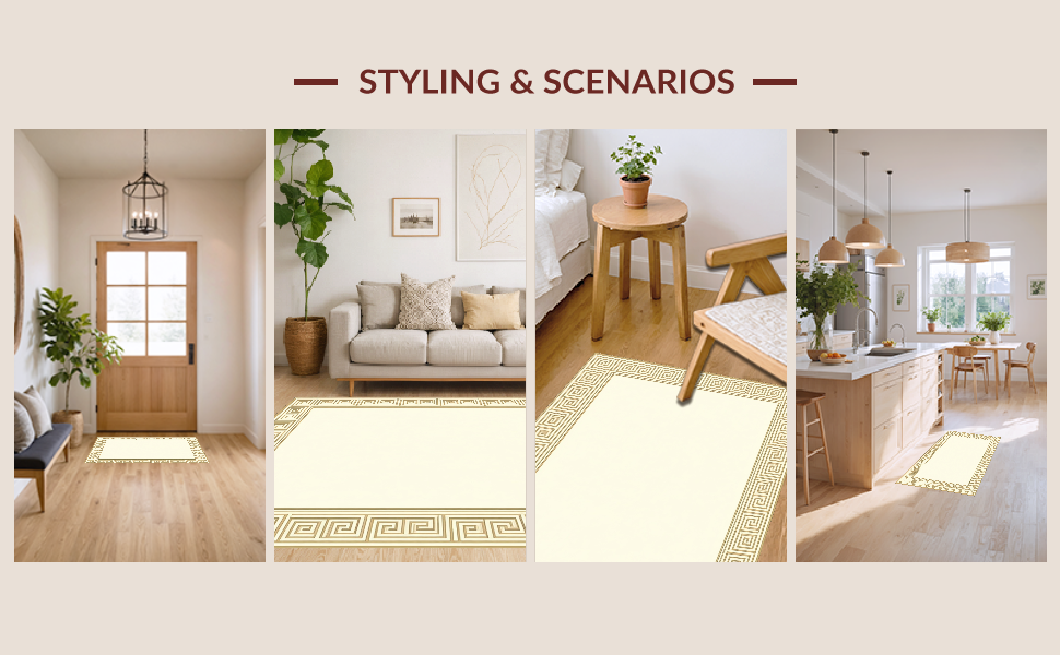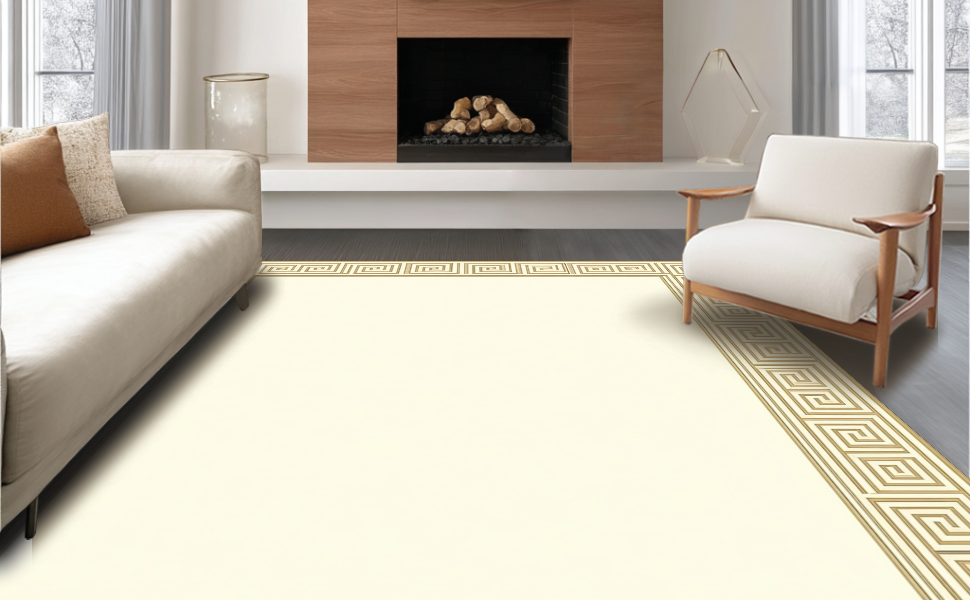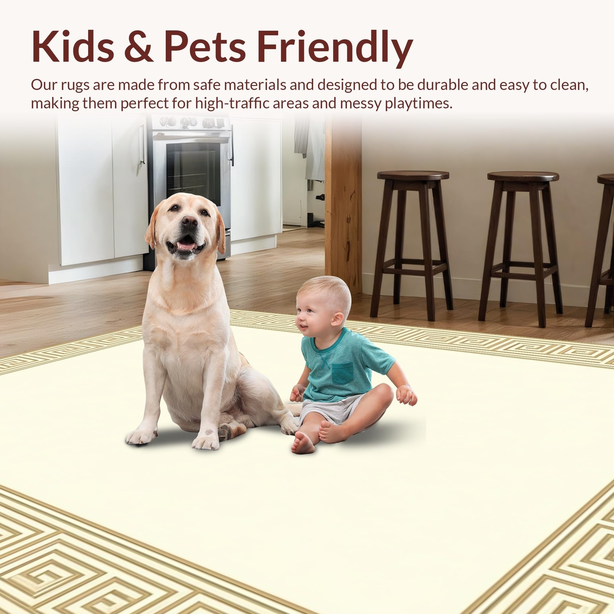 Ultra Soft Area Rug, Non Slip, Stain Resistant, Washable Area Rugs for Living Room, Bedroom, Timeless Rustic Ogee Pattern(Beige) Overview: