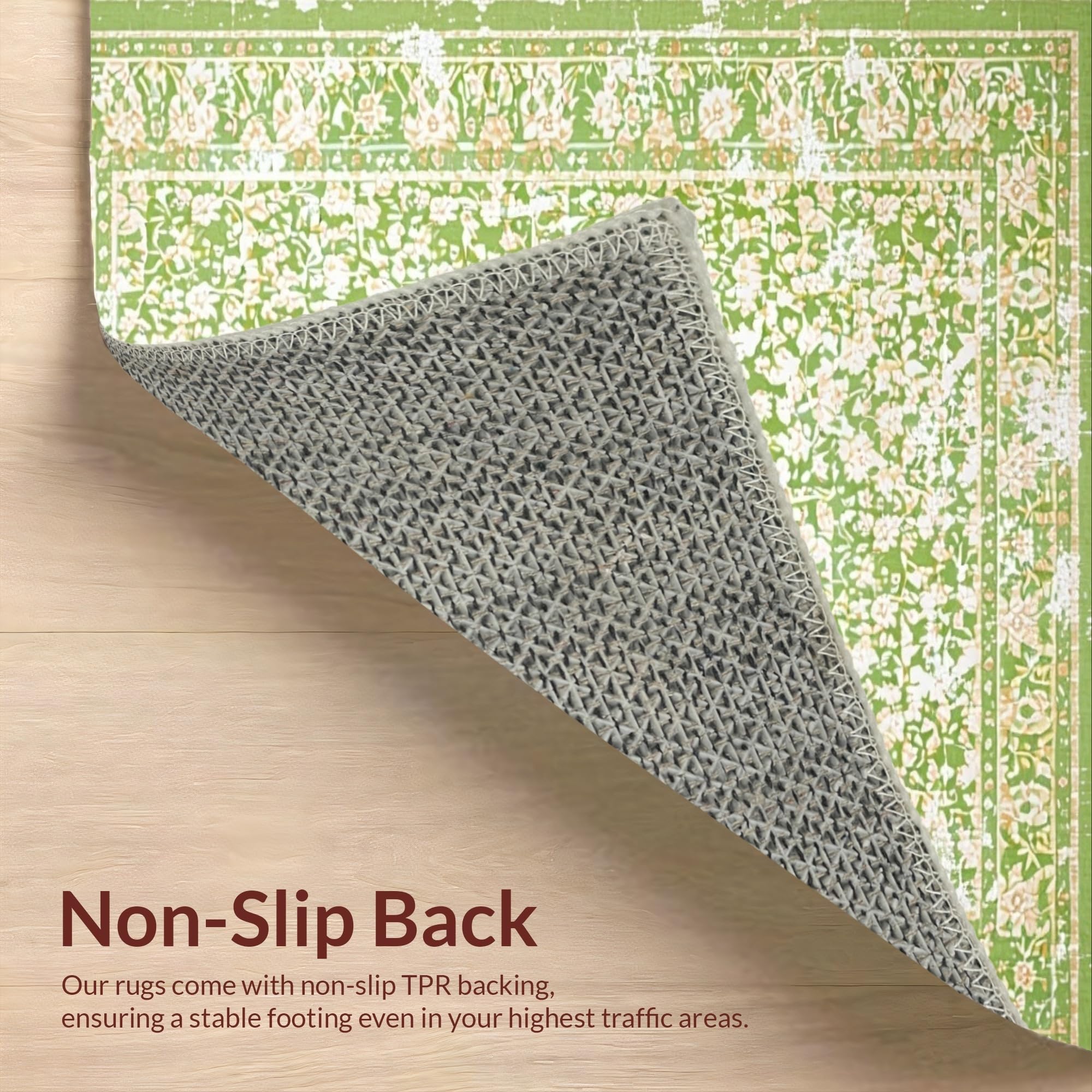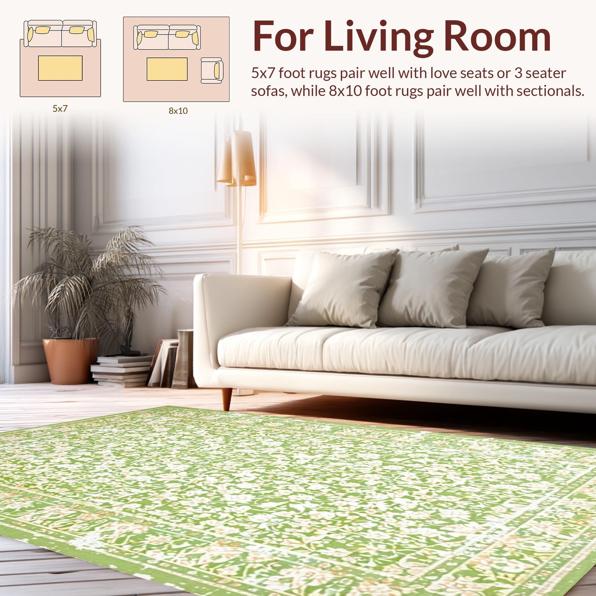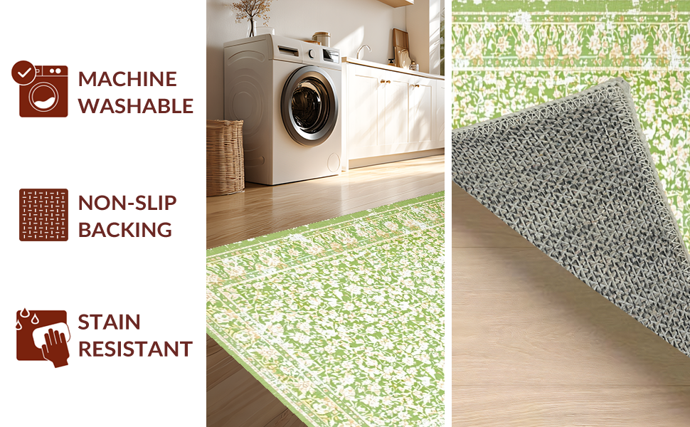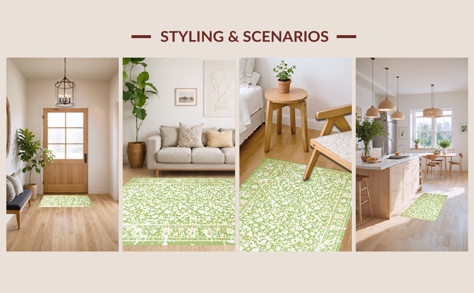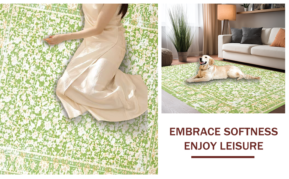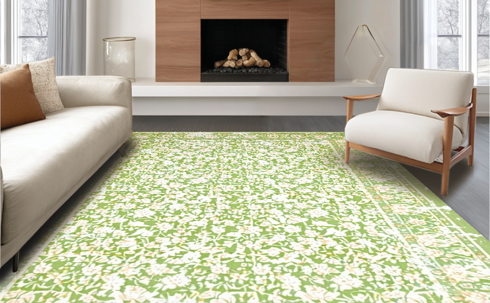 Ultra Soft Area Rug, Non Slip, Stain Resistant, Washable Area Rugs for Living Room, Bedroom, Timeless Soft Green Floral Vibe(Green) Overview: