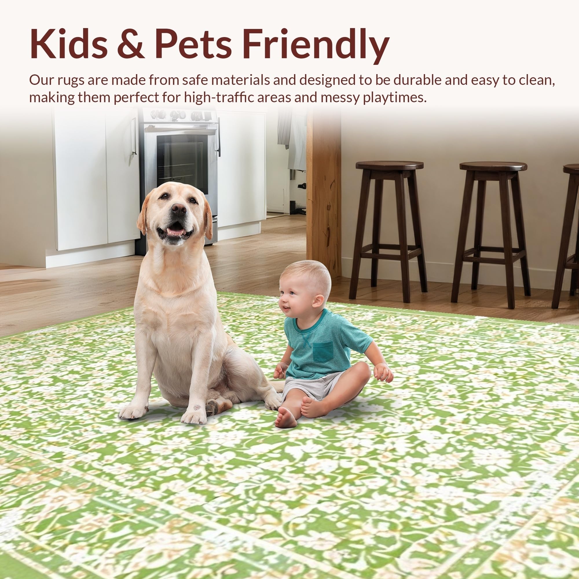 - Kid & Pet Friendly: Ideal for high-traffic indoor areas, this flooring is designed to withstand life's unpredictable messes caused by children or pets.