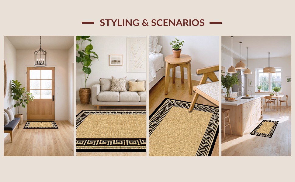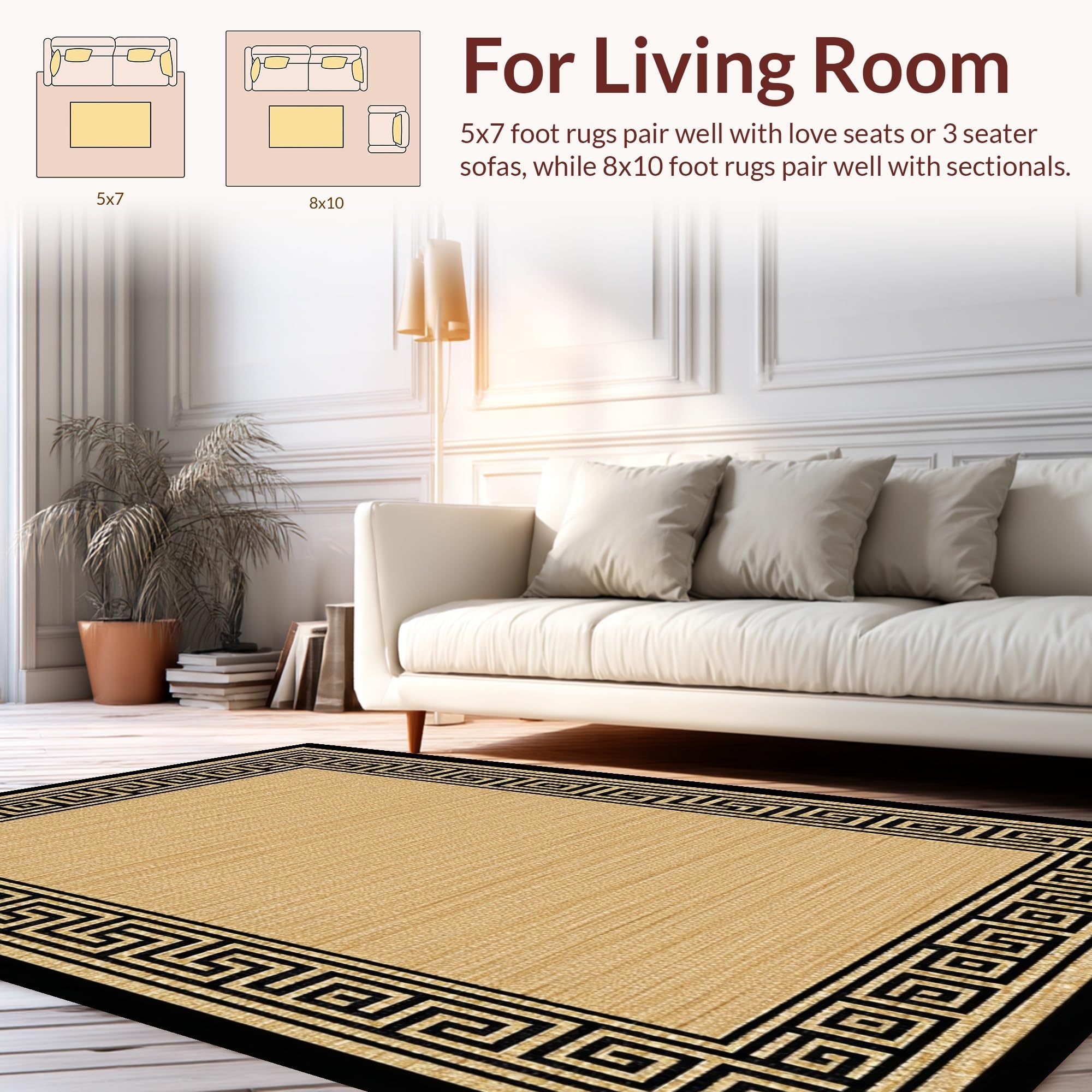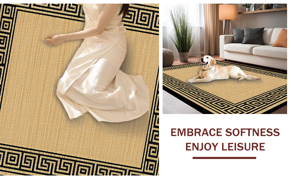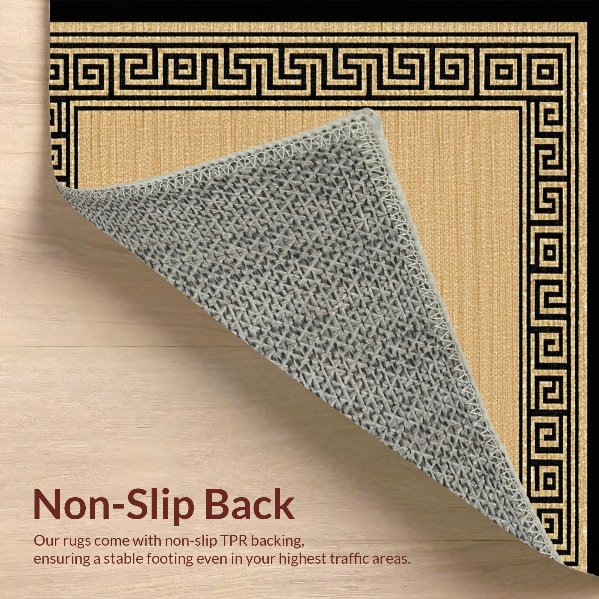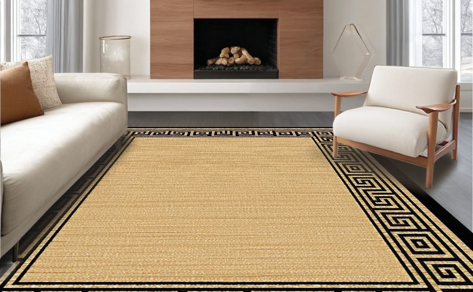 Ultra Soft Area Rug, Non Slip, Stain Resistant, Washable Area Rugs for Living Room, Bedroom, Timeless Symmetrical Monochrome Style(Beige) Overview: