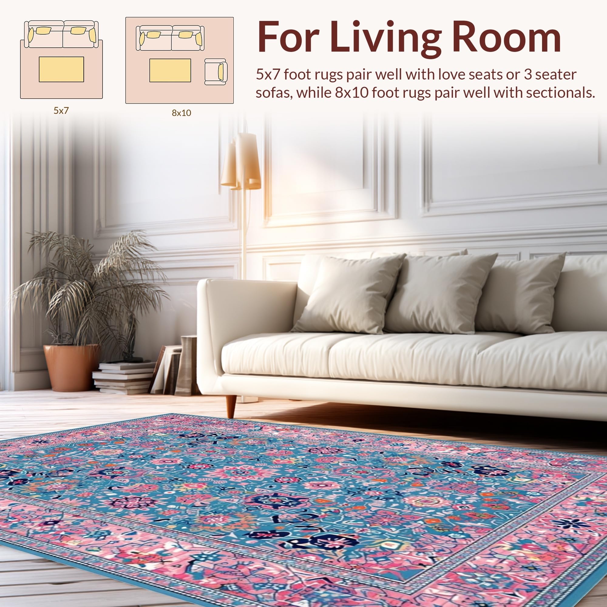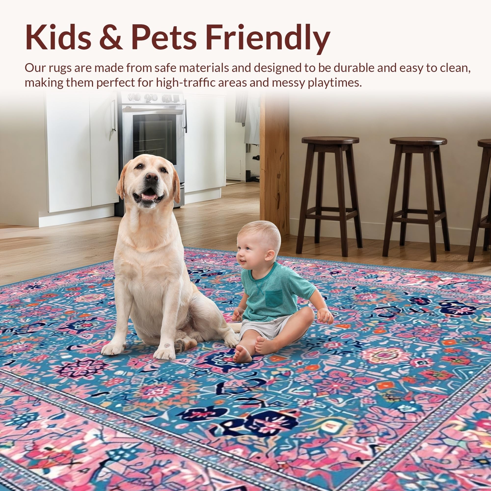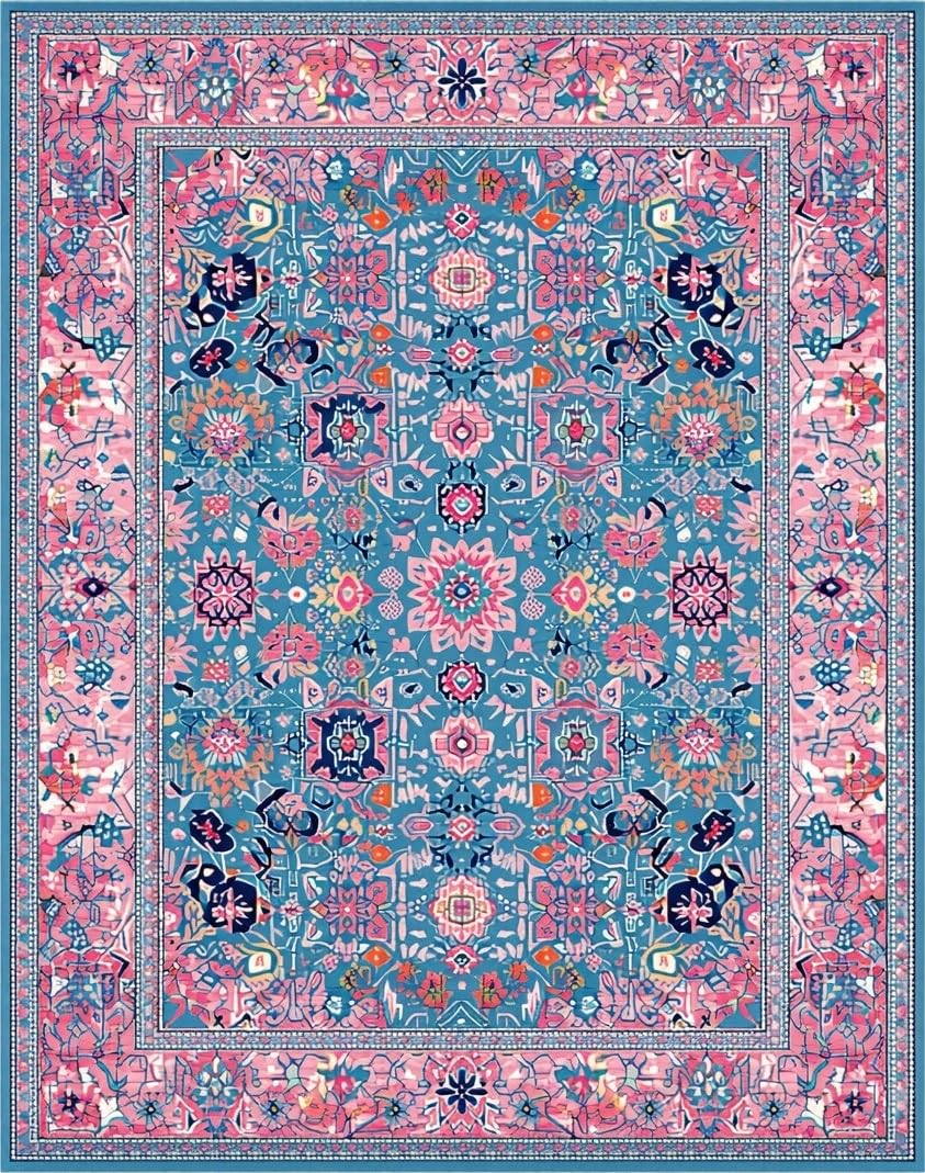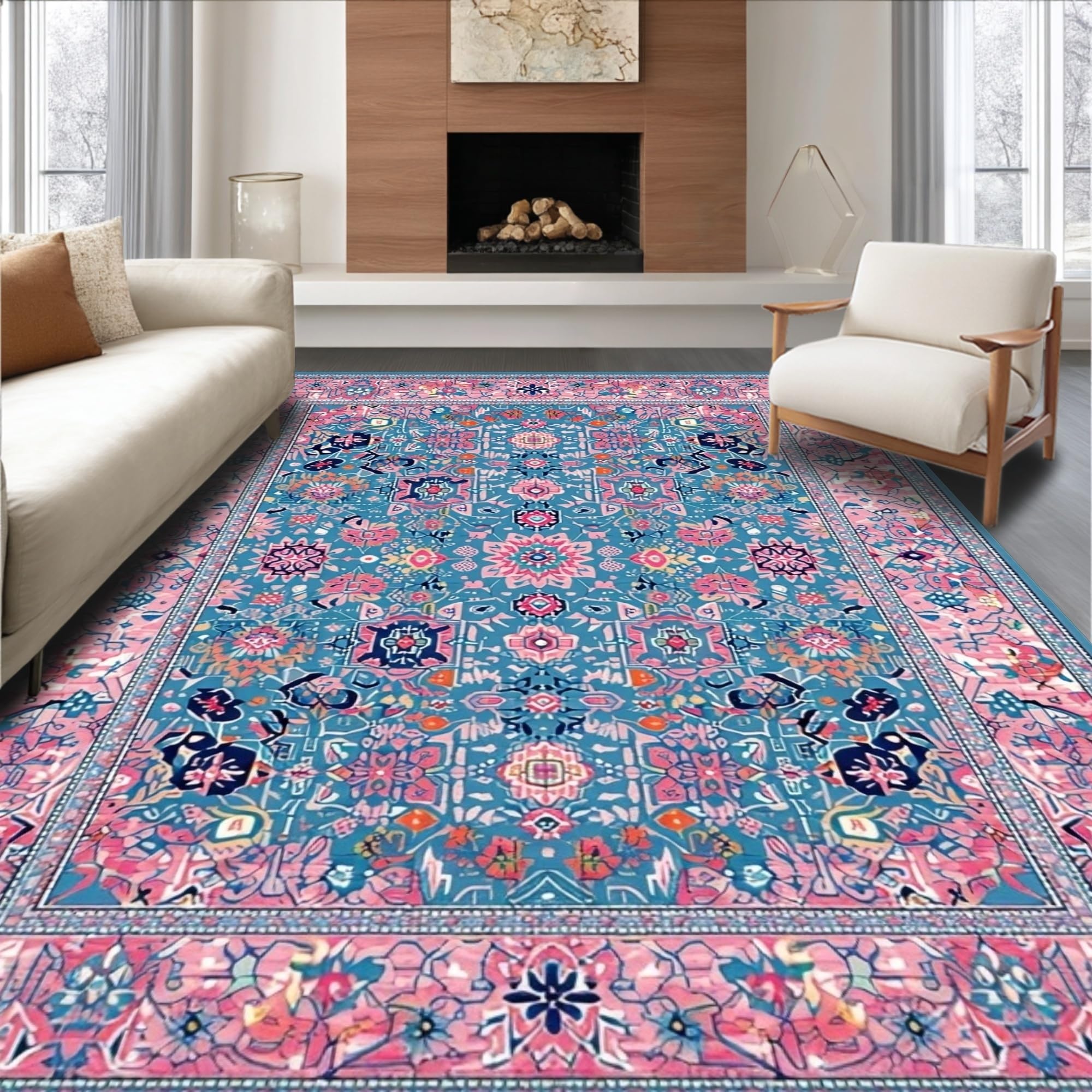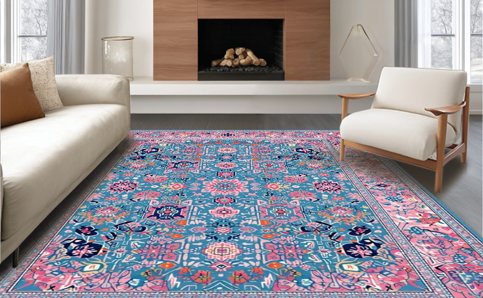 Ultra Soft Area Rug, Non Slip, Stain Resistant, Washable Area Rugs for Living Room, Bedroom, Timeless Vibrant Lattice Composition(Blue) Overview: