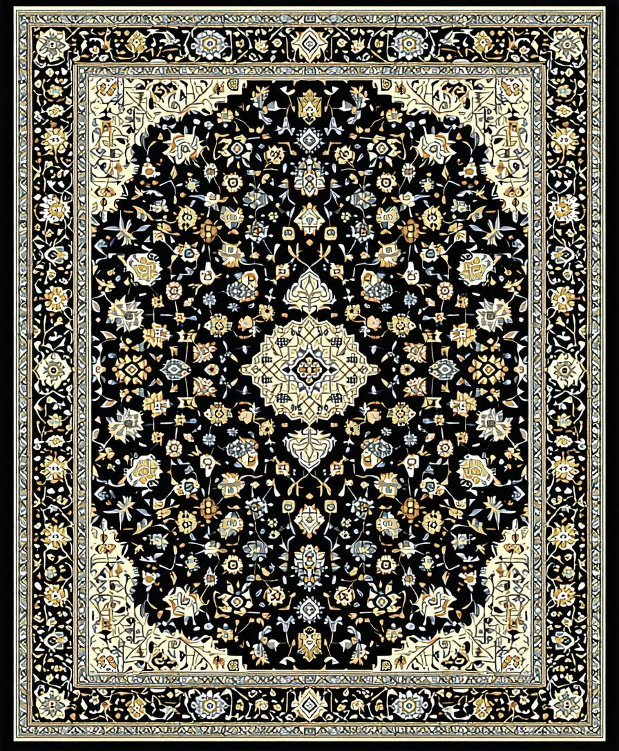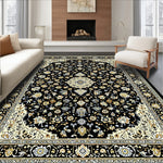 Flatwoven High Traffic Area Rug, Timeless Vintage Patterned Charm, Non Slip, Stain Resistant, Washable Area Rugs for Living Room, Bedroom (Black) Overview: