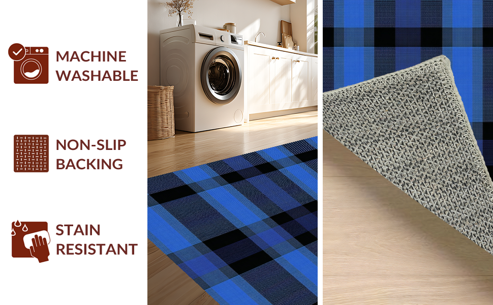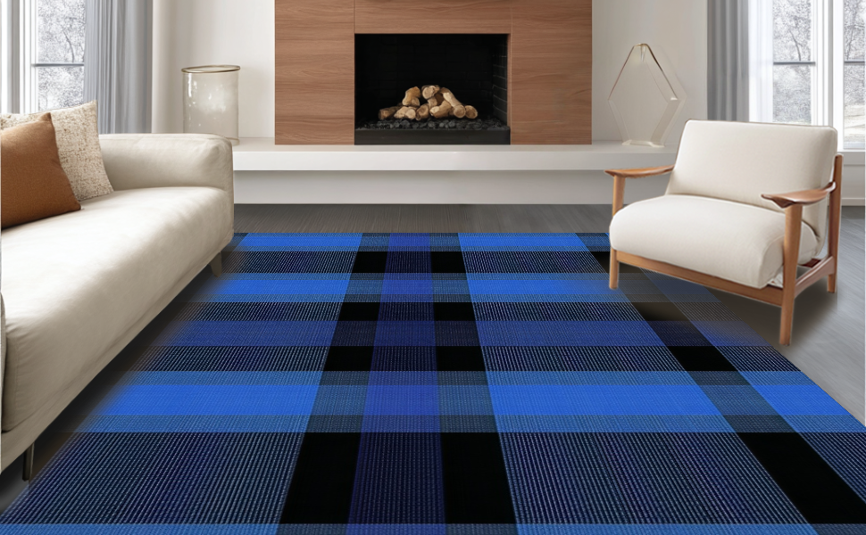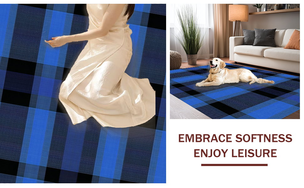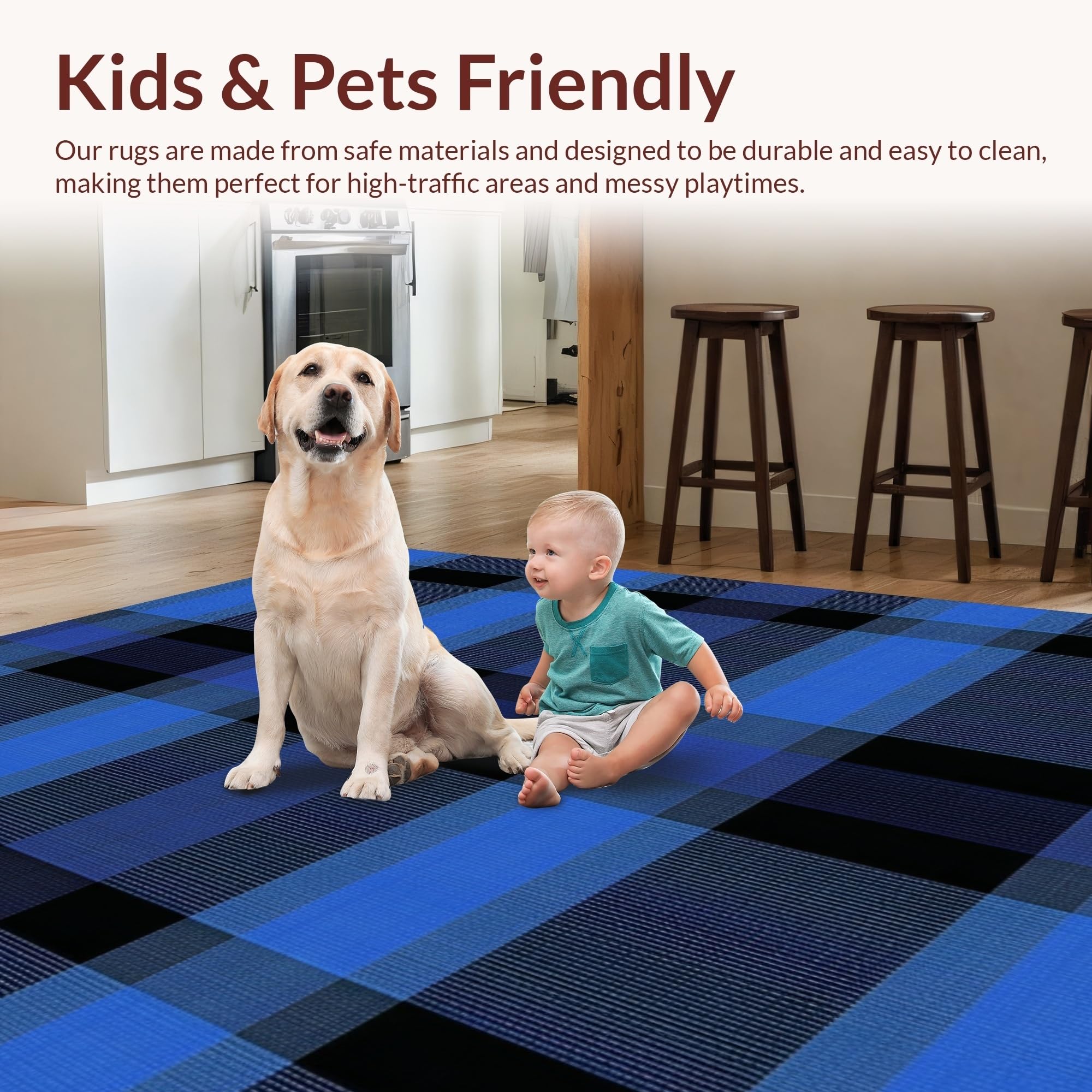 Ultra Soft Area Rug, Non Slip, Stain Resistant, Washable Area Rugs for Living Room, Bedroom, Timeless Vintage Plaid Charm(Blue) Overview: