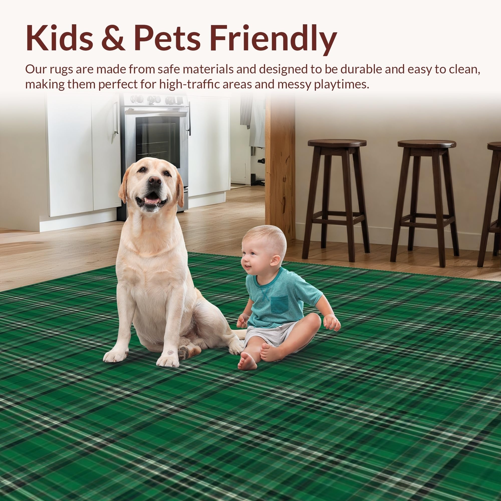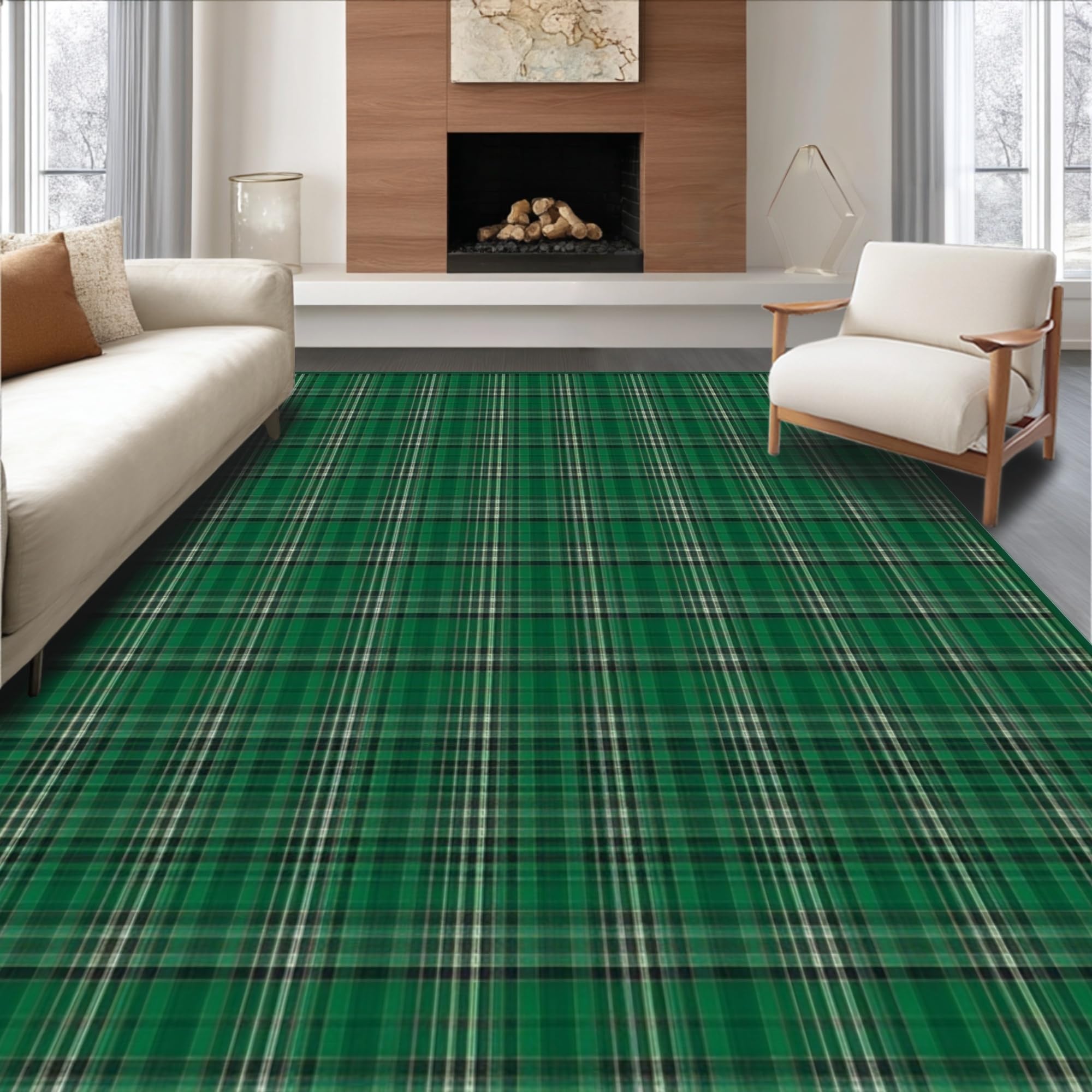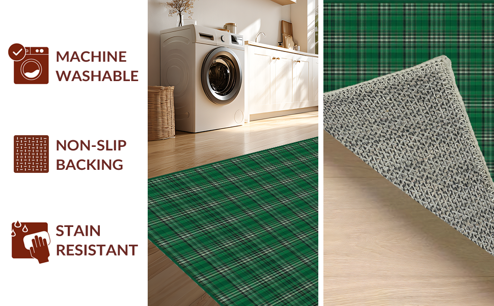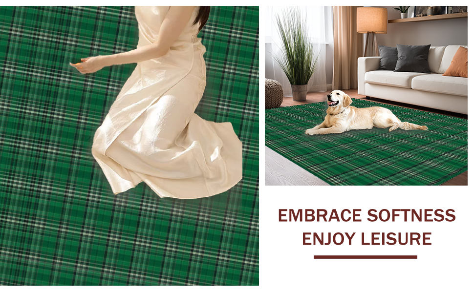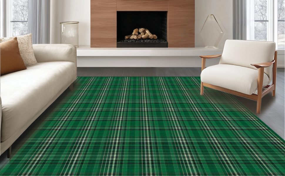 Ultra Soft Area Rug, Non Slip, Stain Resistant, Washable Area Rugs for Living Room, Bedroom, Traditional Cotton Check Design(Green) Overview:
