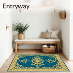 Flatwoven High Traffic Area Rug, Traditional Damask Medallion Ornate Surface Treatment, Non Slip, Stain Resistant, Washable Area Rugs for Living Room, Bedroom (Blue) Overview: