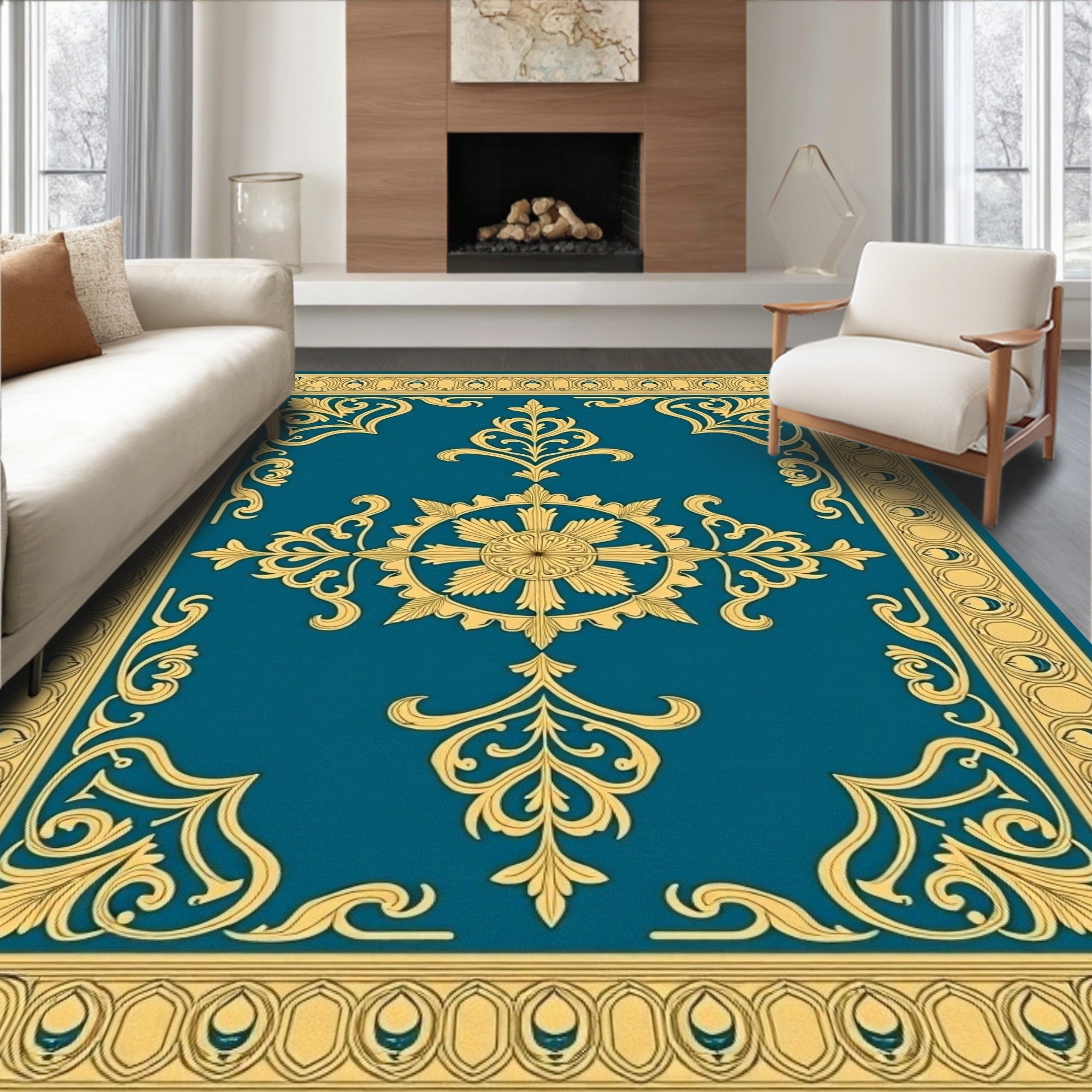 Traditional Damask Medallion Ornate Surface Treatment(Blue)