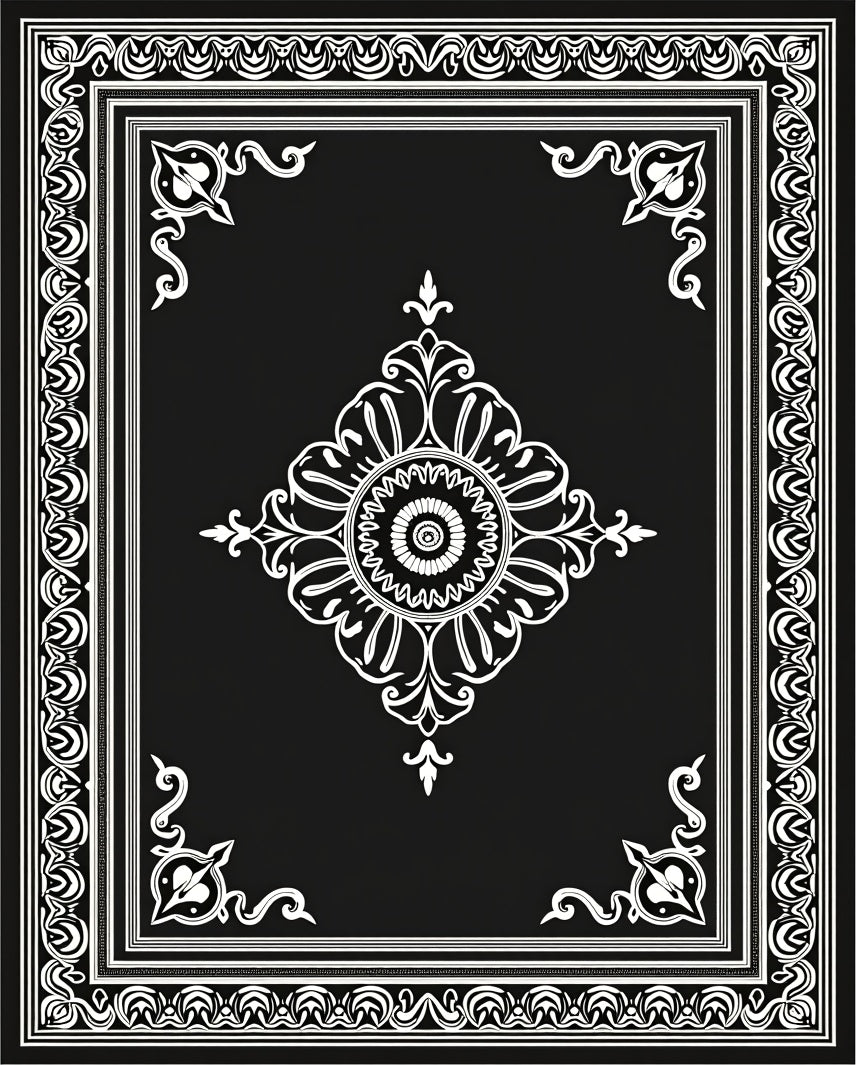 Traditional Damask Paisley with Ornamental Border Framework(Black)