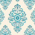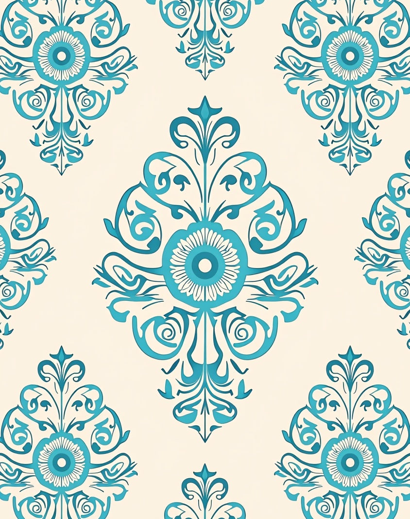 Traditional Damask Scrollwork with Central Rosette Flourish Motif(Turquoise)