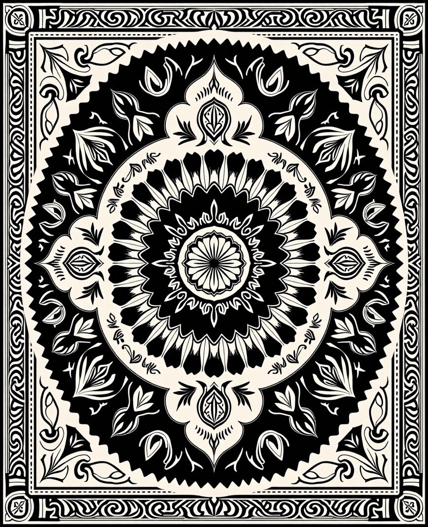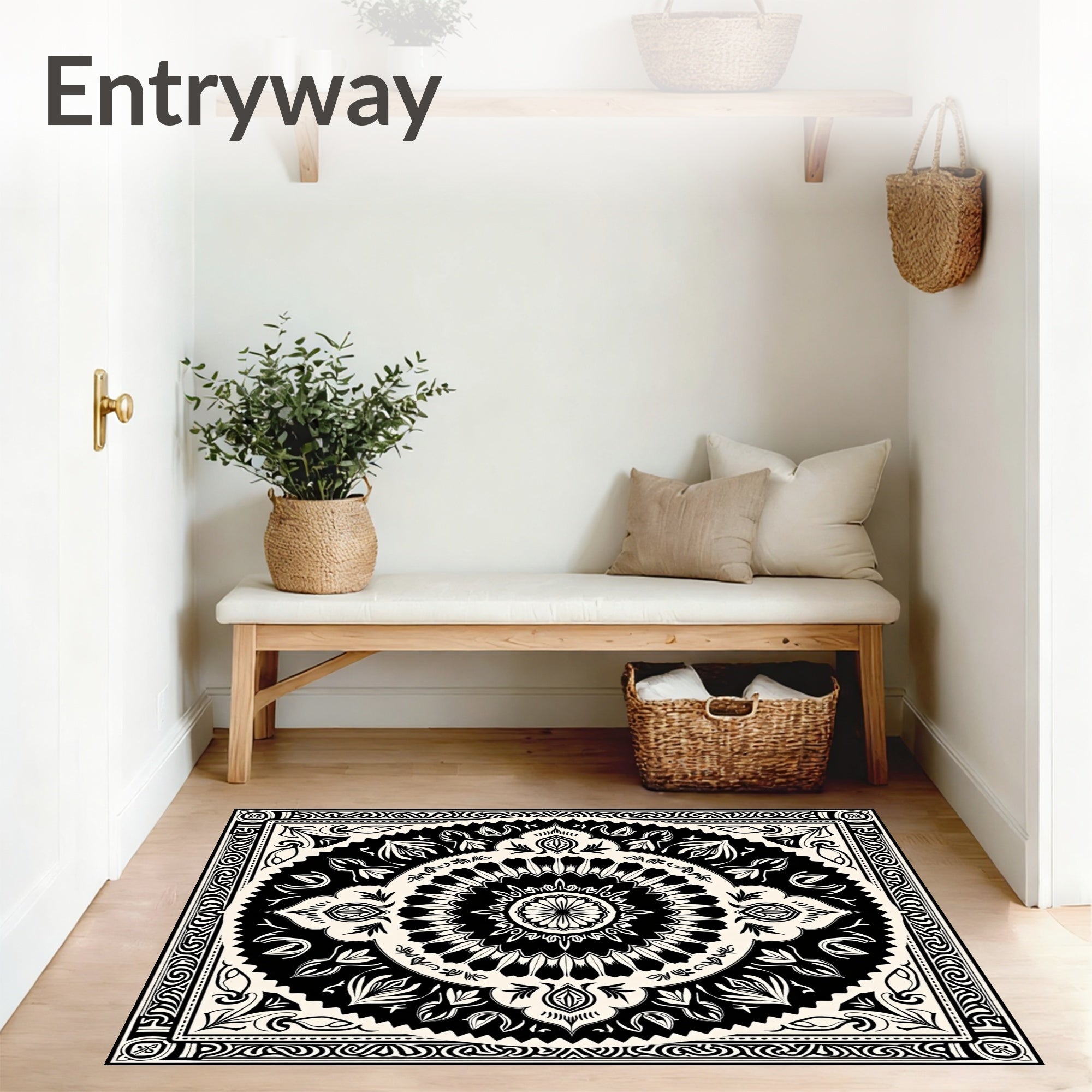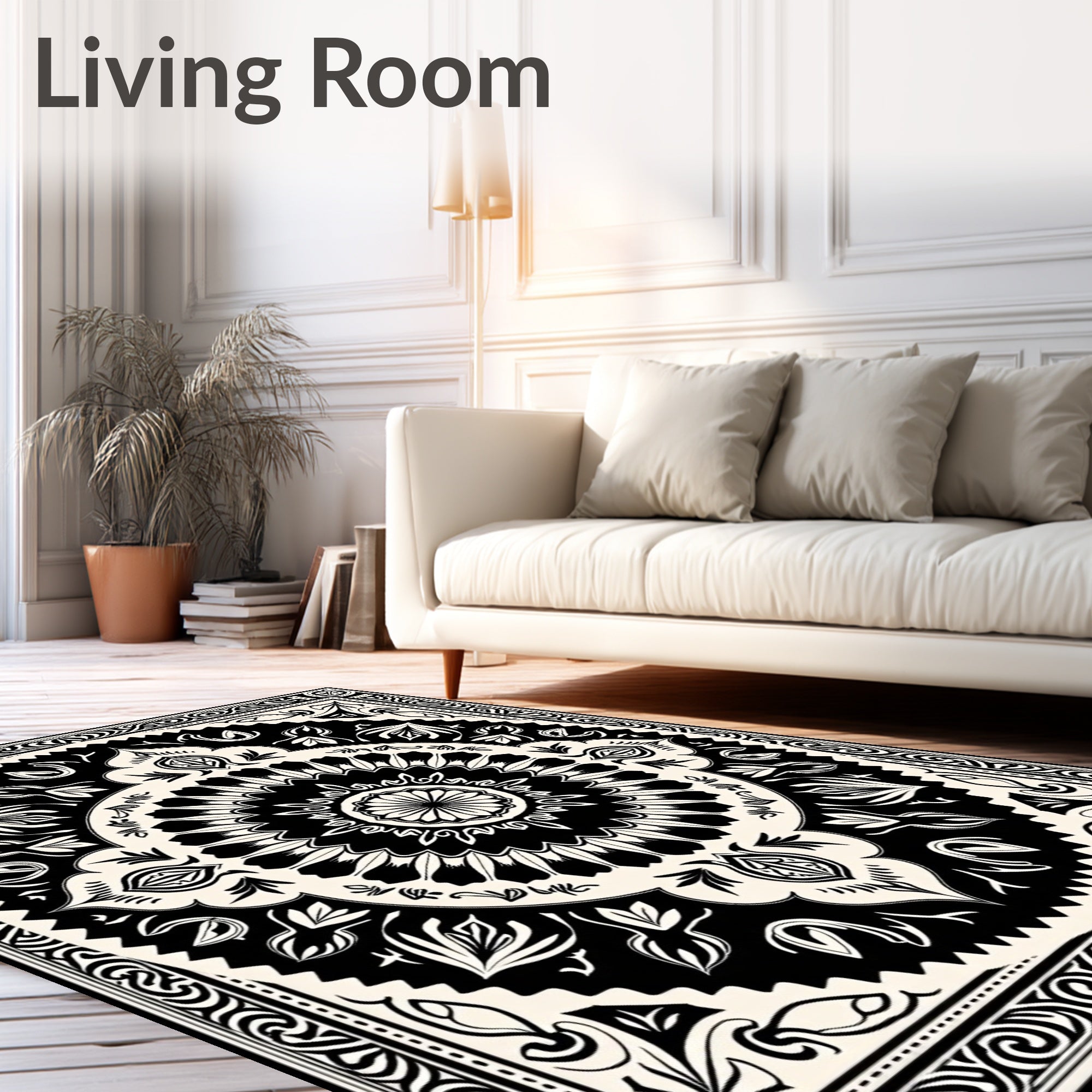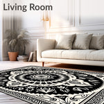 Ultra Soft Area Rug, Non Slip, Stain Resistant, Washable Area Rugs for Living Room, Bedroom, Traditional Design with Symmetrical Botanical(Black) Overview: