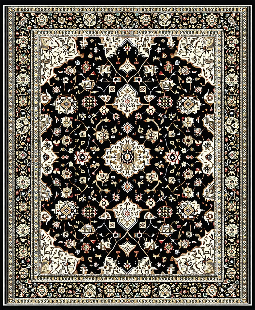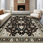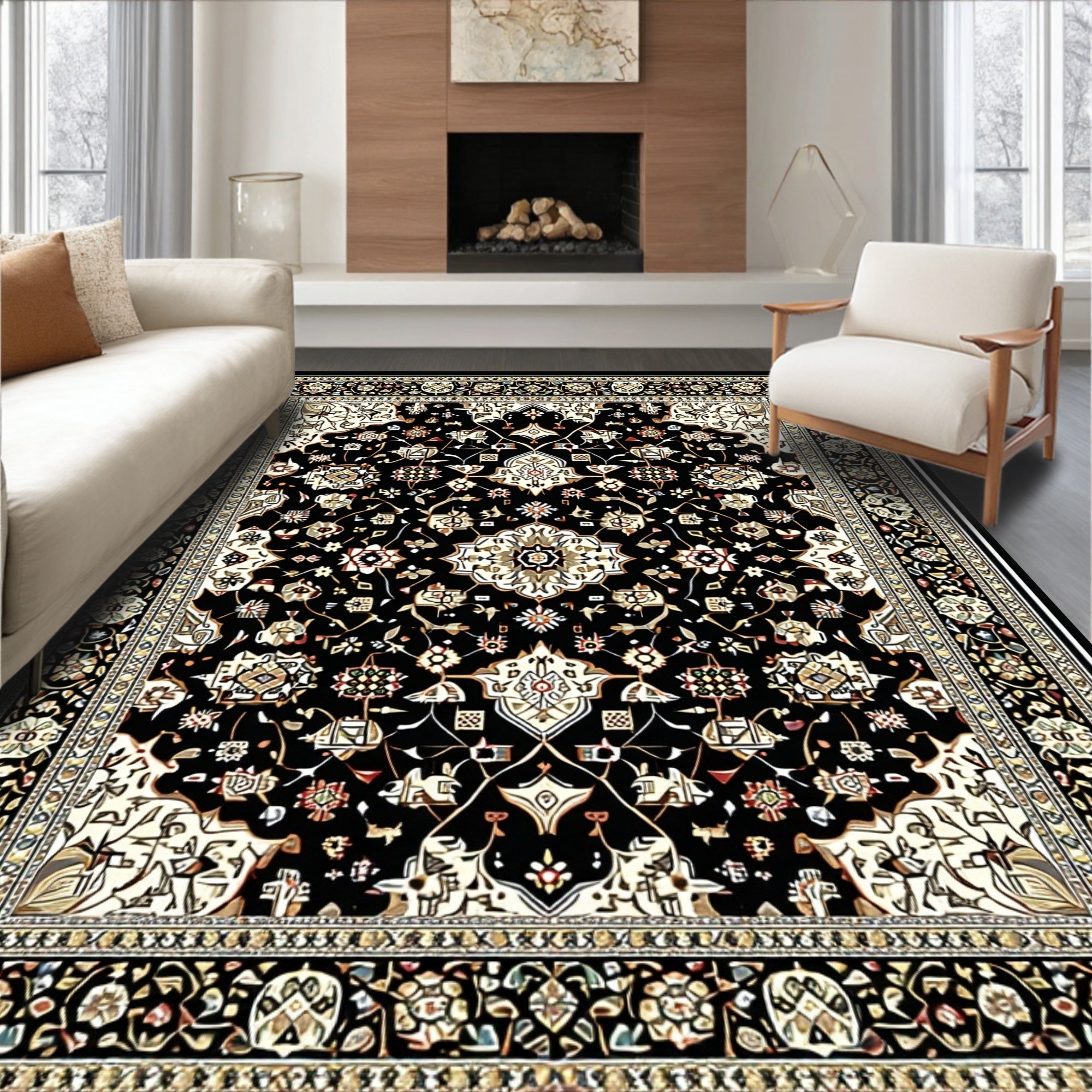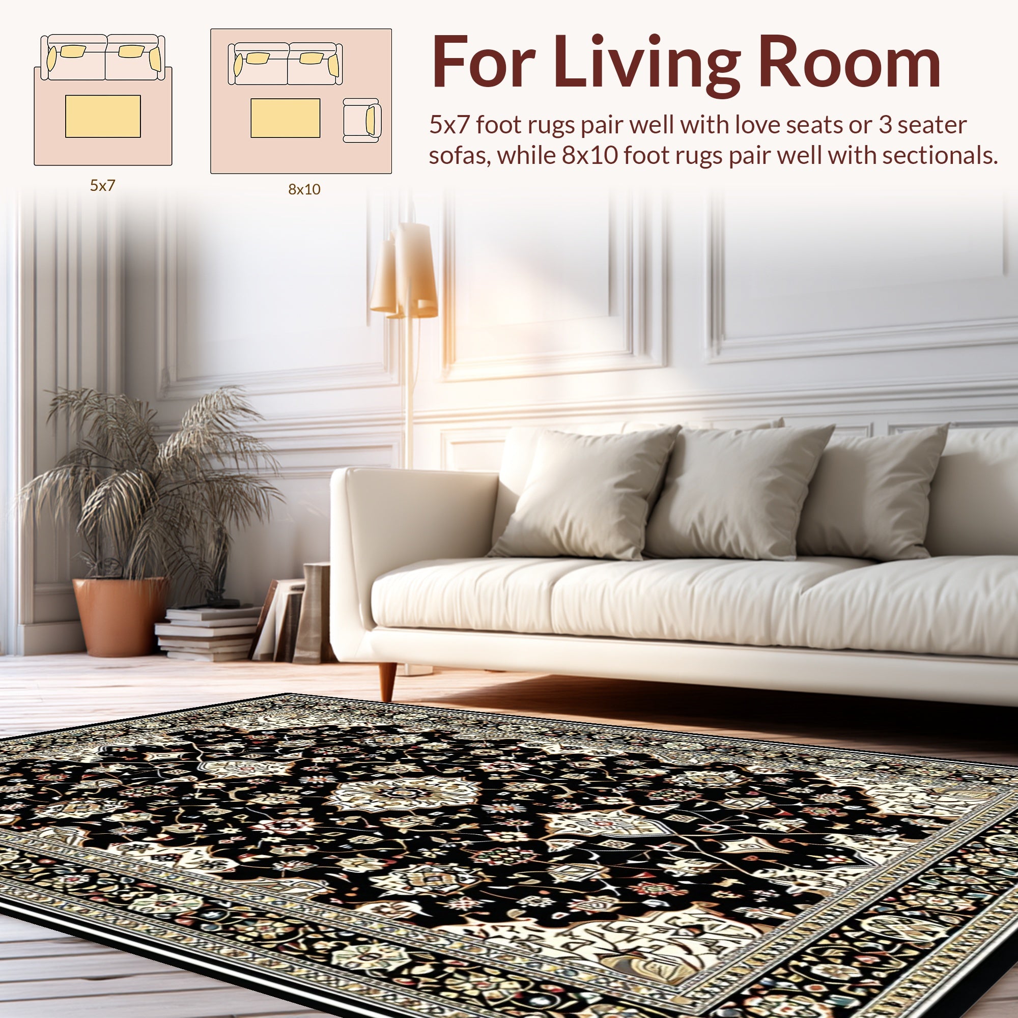 Flatwoven High Traffic Area Rug, Traditional Floral Medallion Elegance, Non Slip, Stain Resistant, Washable Area Rugs for Living Room, Bedroom (Black) Overview:
