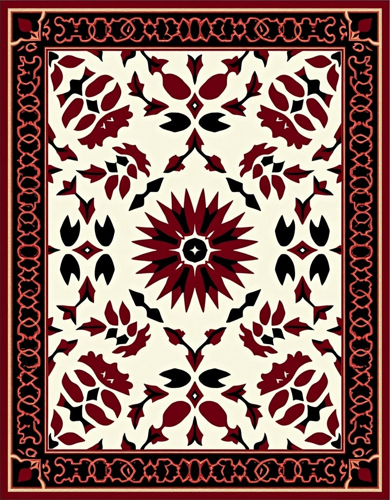 Traditional Lattice Enhanced With Stylized Botanical(Maroon)