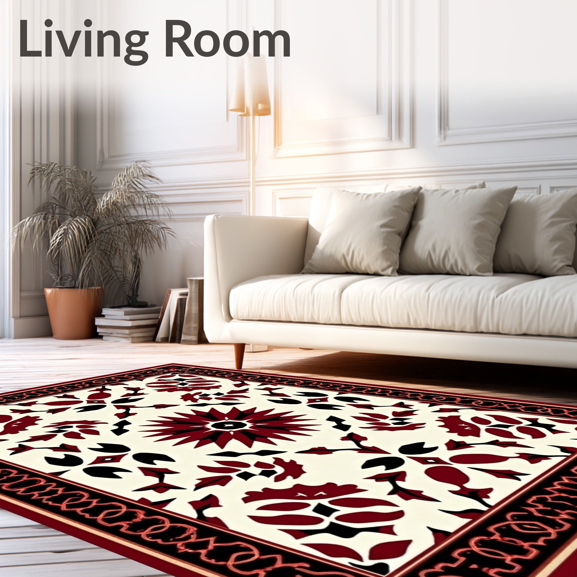 Ultra Soft Area Rug, Non Slip, Stain Resistant, Washable Area Rugs for Living Room, Bedroom, Traditional Lattice Enhanced With Stylized Botanical(Maroon) Overview: