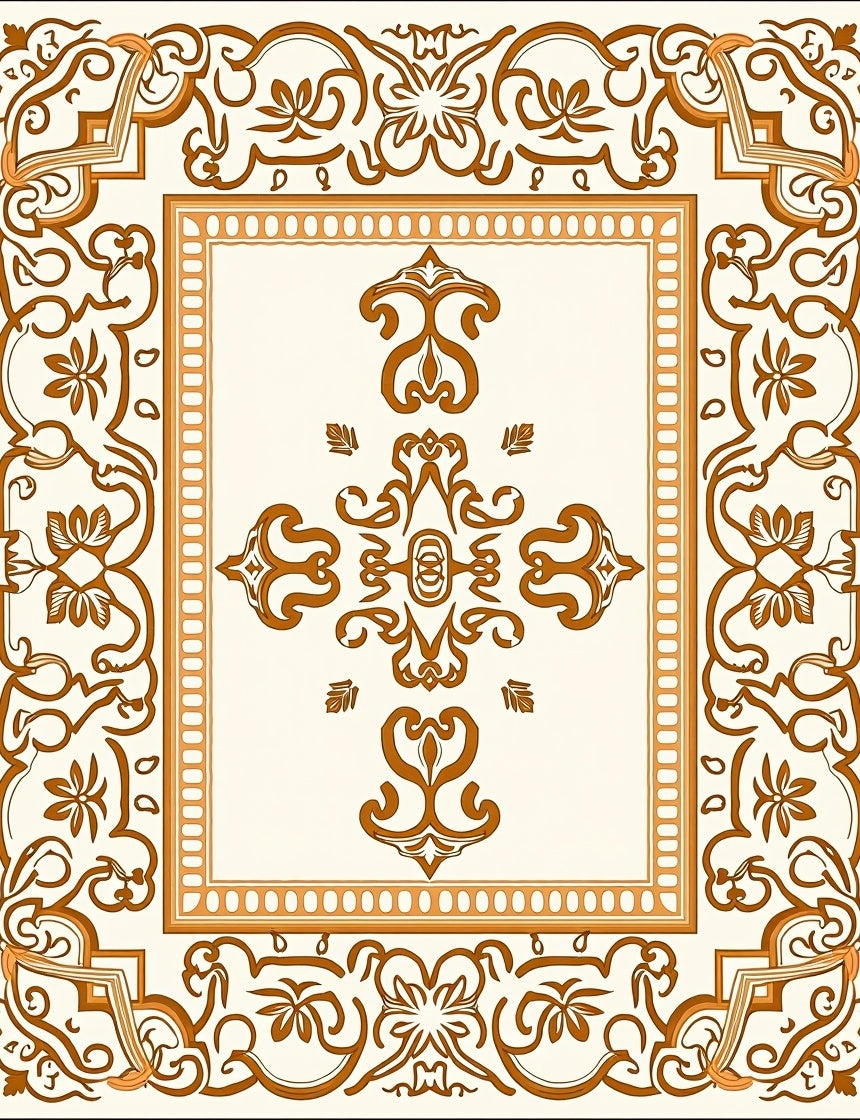 Traditional Ornate Scrollwork Symmetrical(Brown)