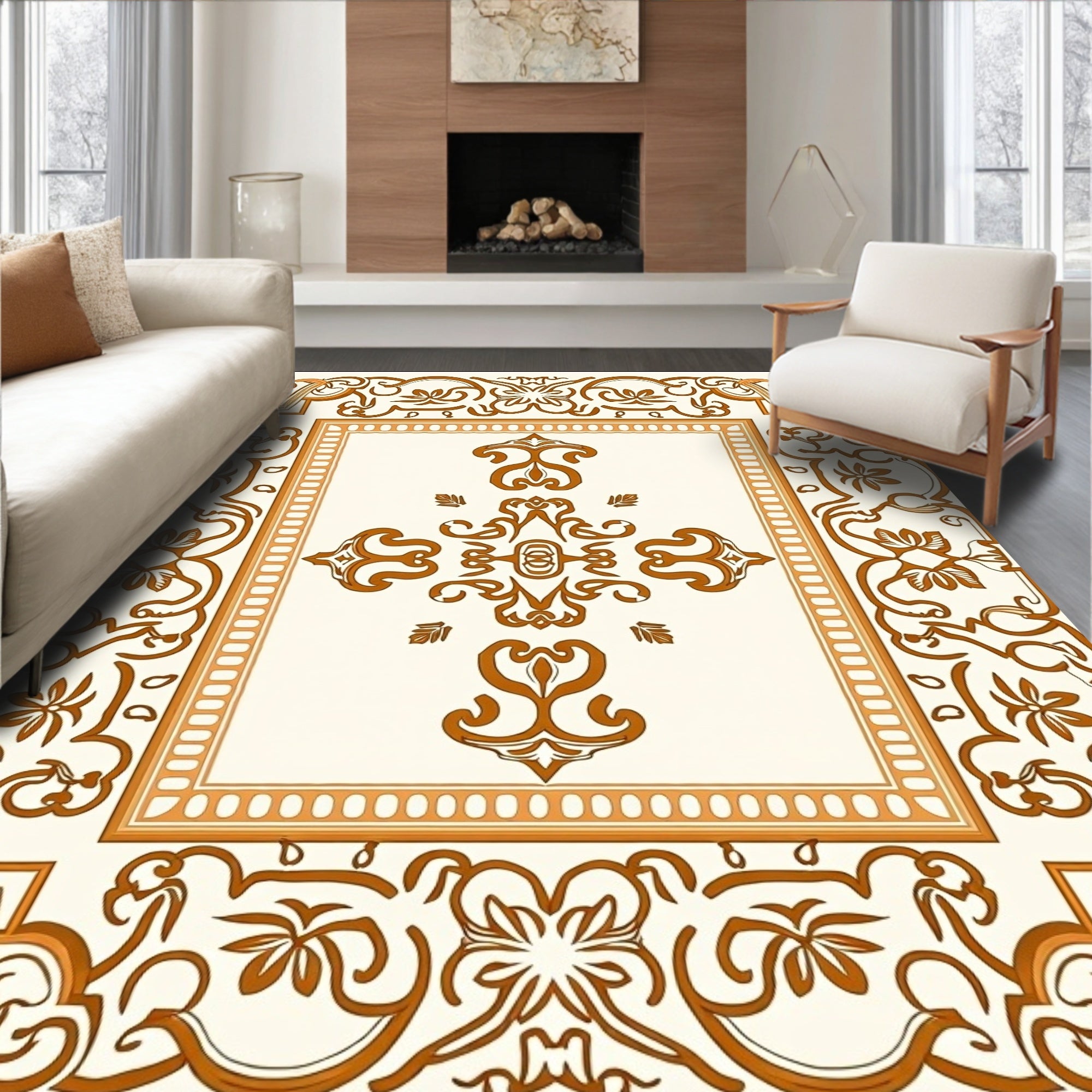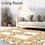 Flatwoven High Traffic Area Rug, Traditional Ornate Scrollwork Symmetrical, Non Slip, Stain Resistant, Washable Area Rugs for Living Room, Bedroom (Brown) Overview: