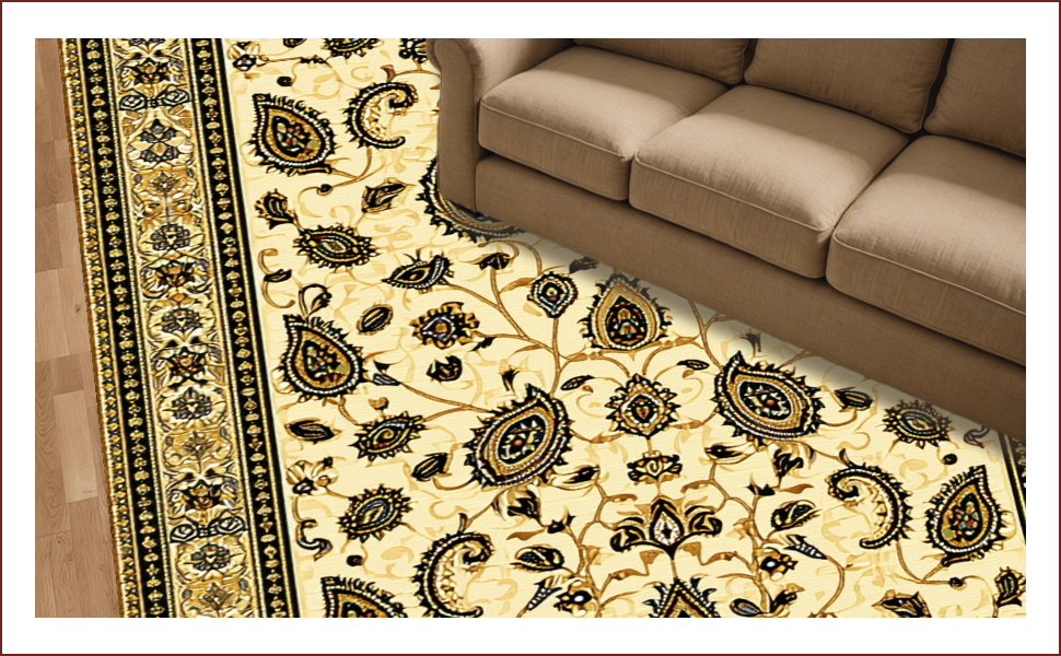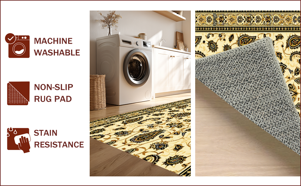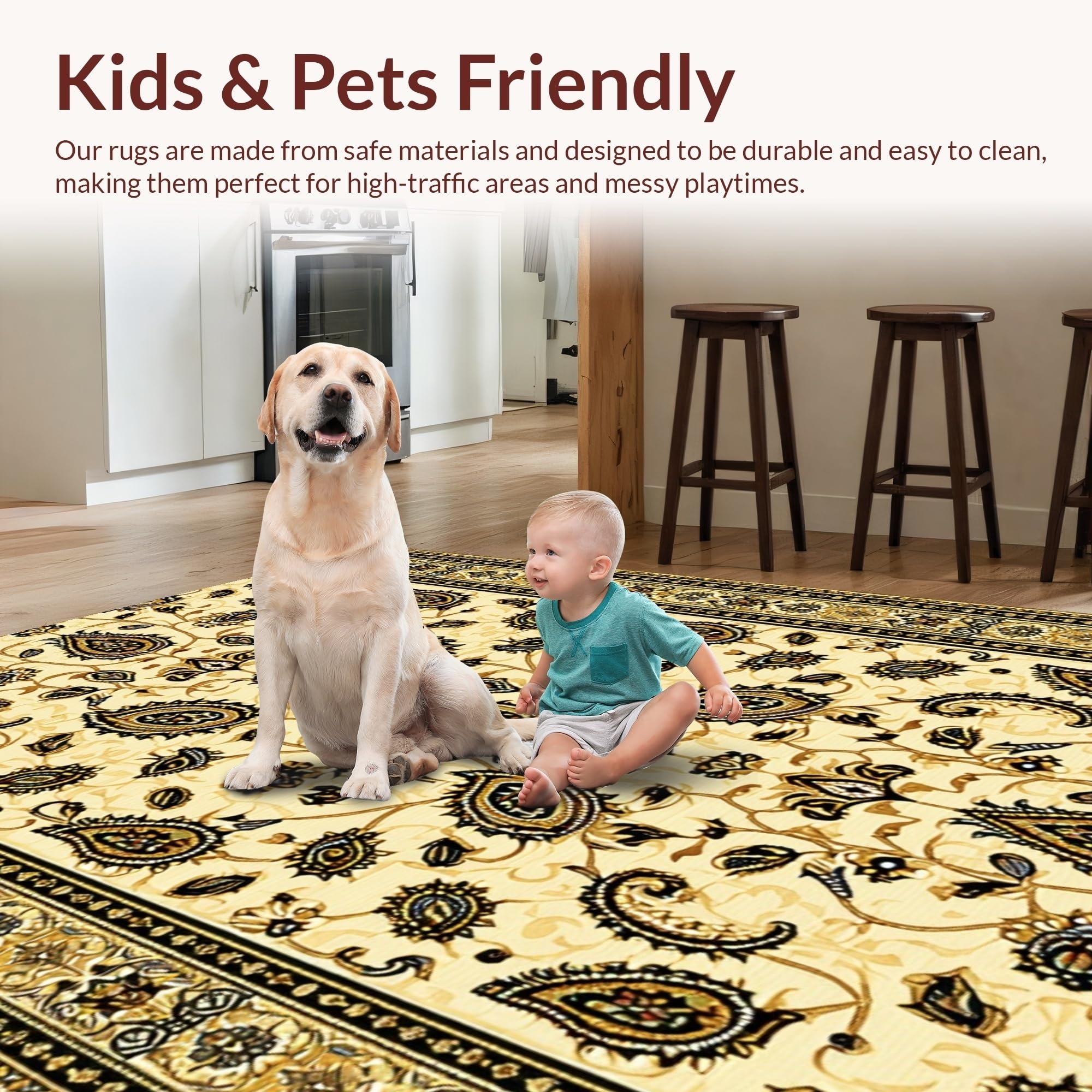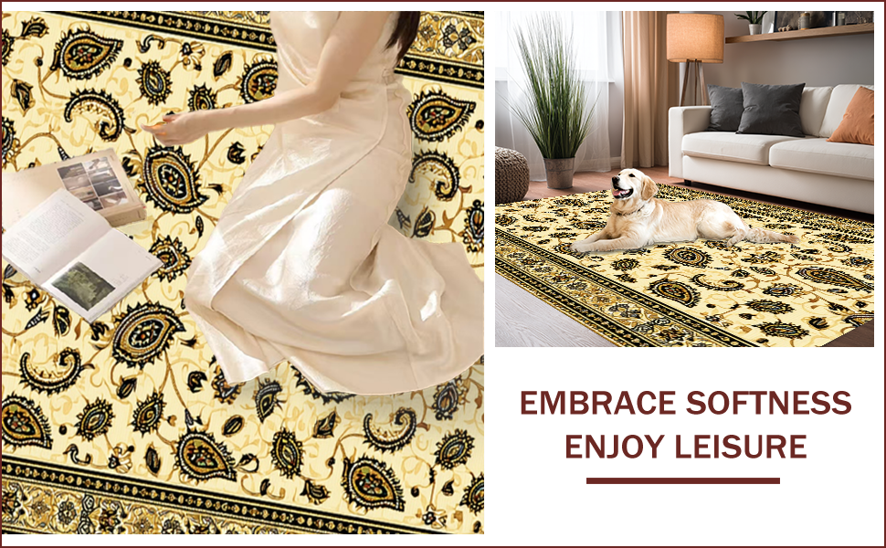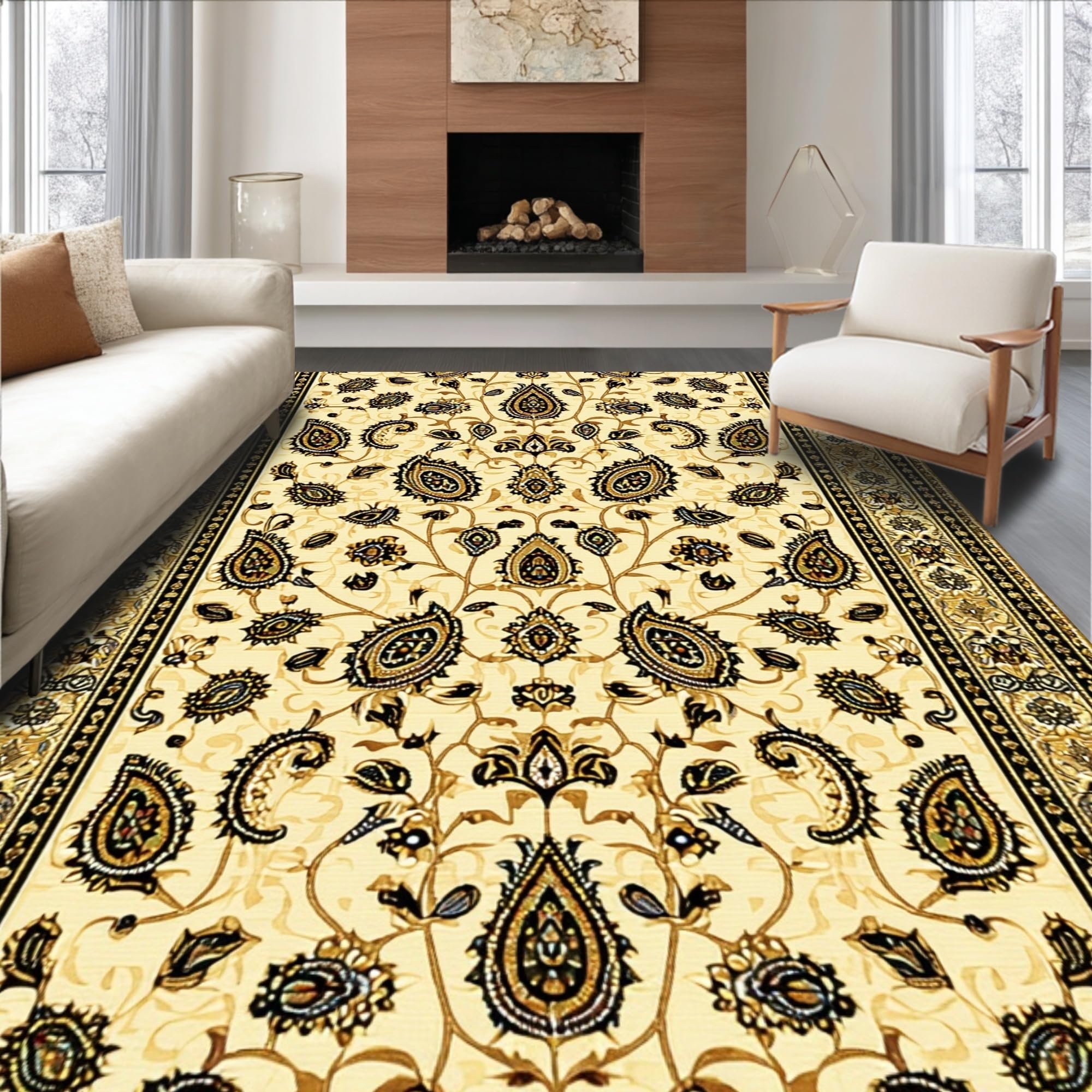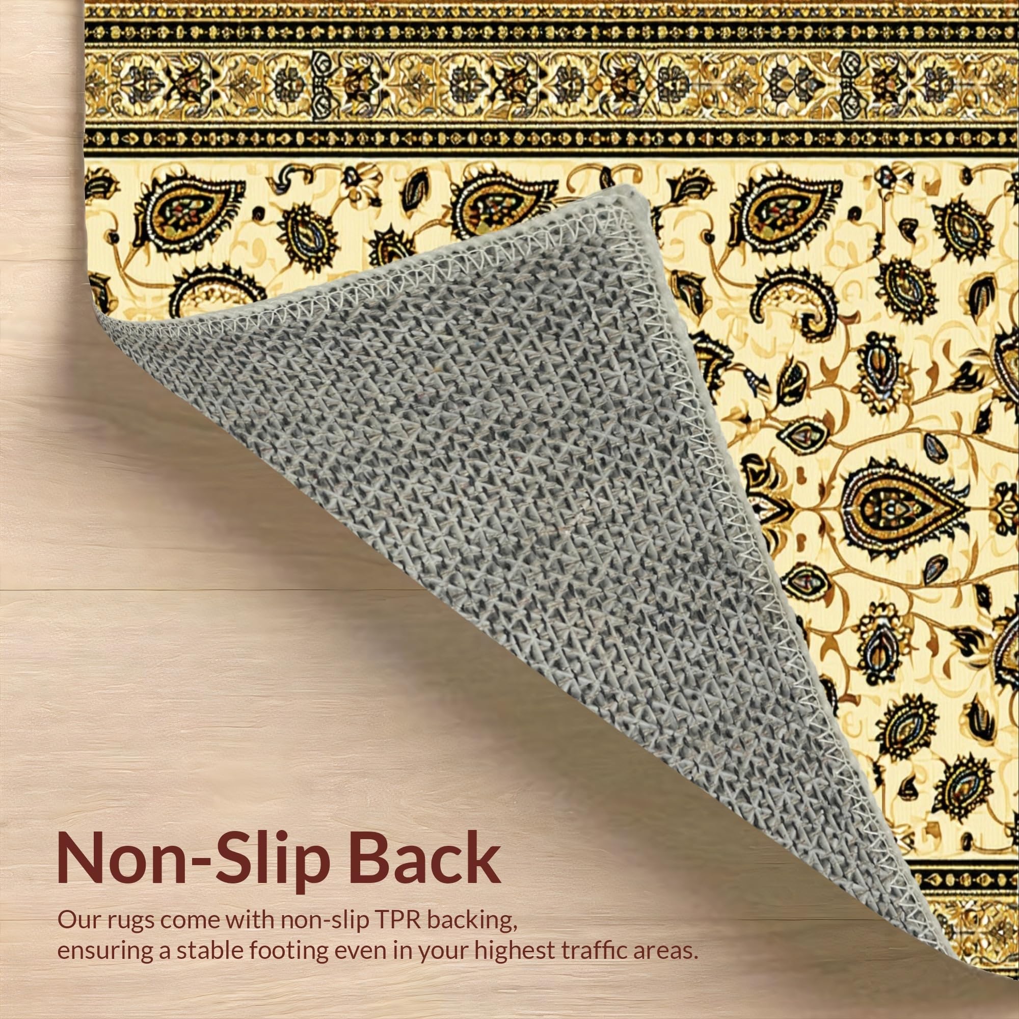 Ultra Soft Area Rug, Non Slip, Stain Resistant, Washable Area Rugs for Living Room, Bedroom, Traditional Paisley Golden Beige Prayer Rug for Meditation(Beige) Overview: