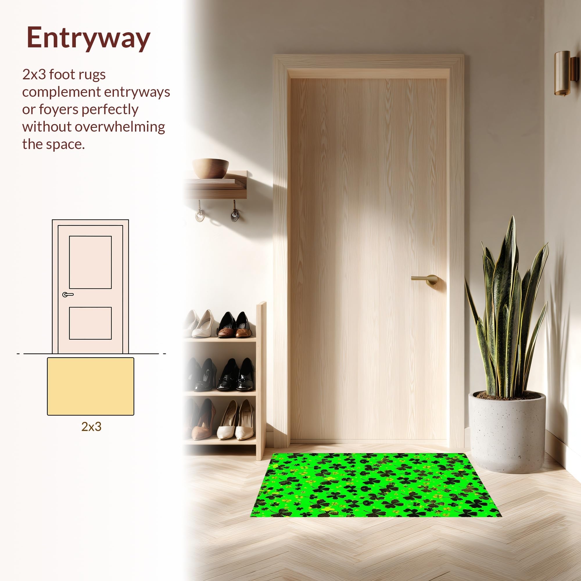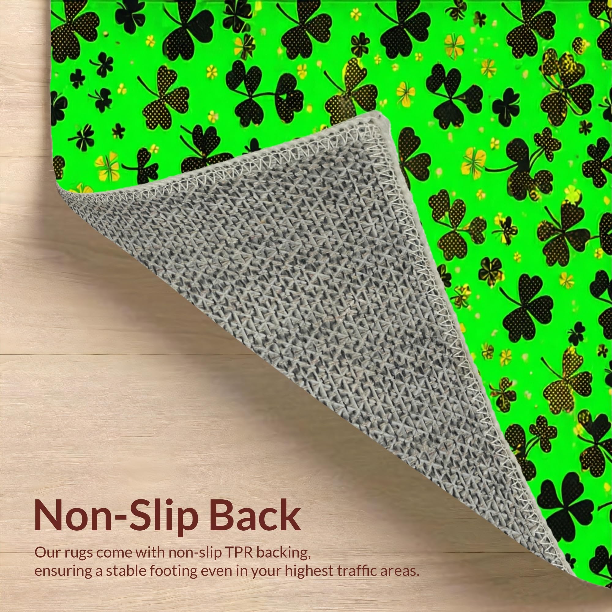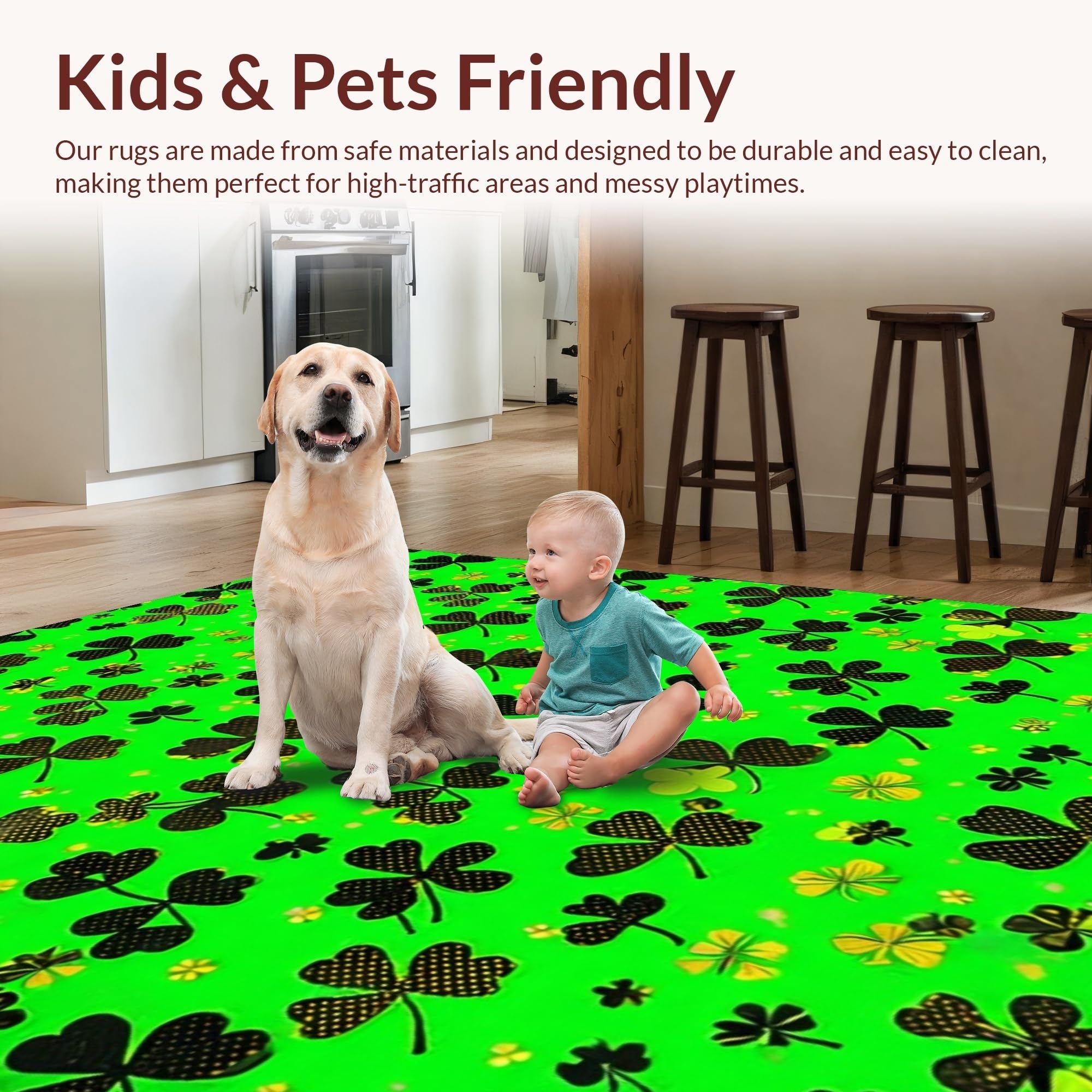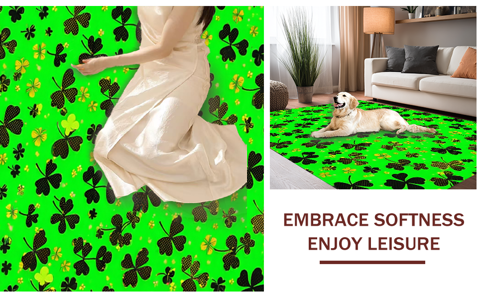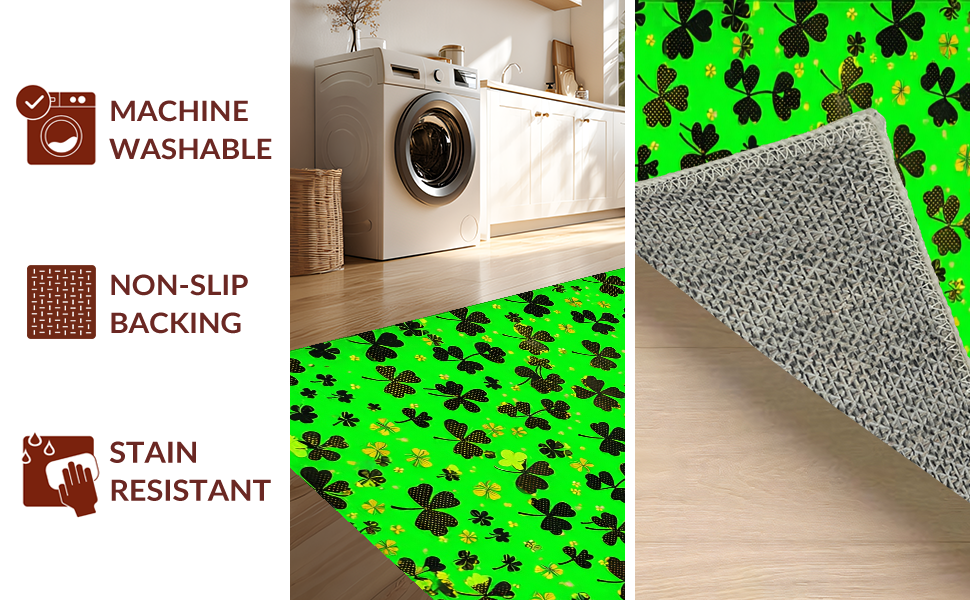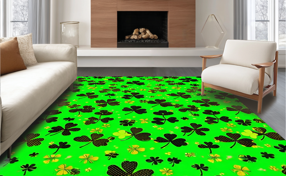 Ultra Soft Area Rug, Non Slip, Stain Resistant, Washable Area Rugs for Living Room, Bedroom, Traditional Shamrock Inspired Design(Green) Overview: