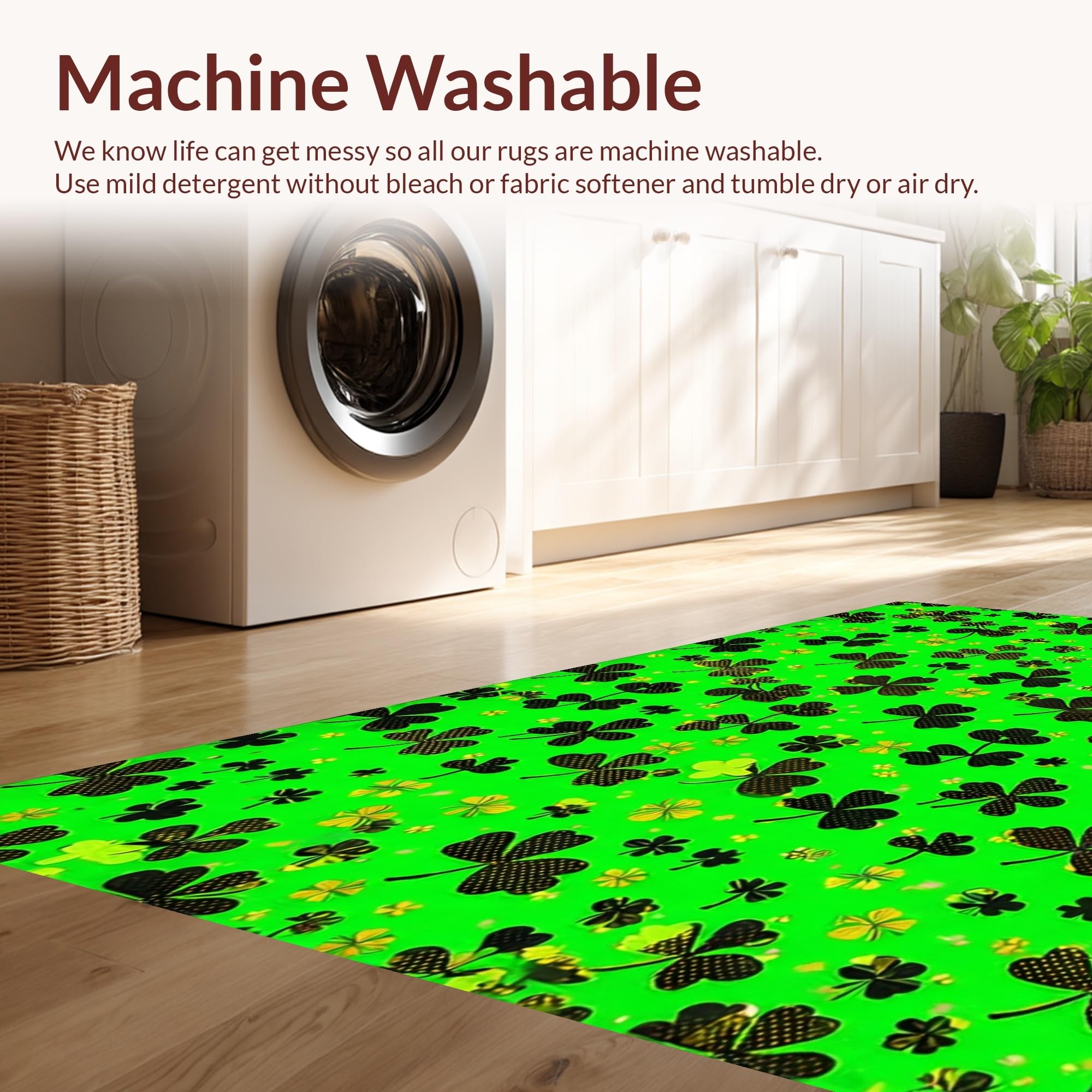 - Machine Washable: Our rugs can be easily thrown in the wash machine.