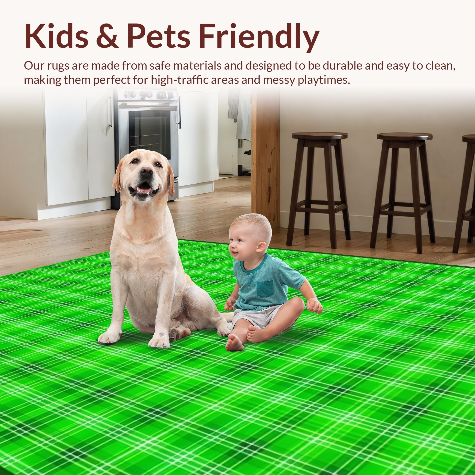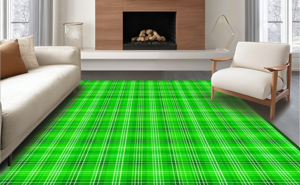 Ultra Soft Area Rug, Non Slip, Stain Resistant, Washable Area Rugs for Living Room, Bedroom, Traditional Striped Clover Accent(Green) Overview: