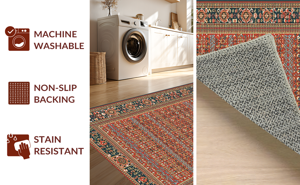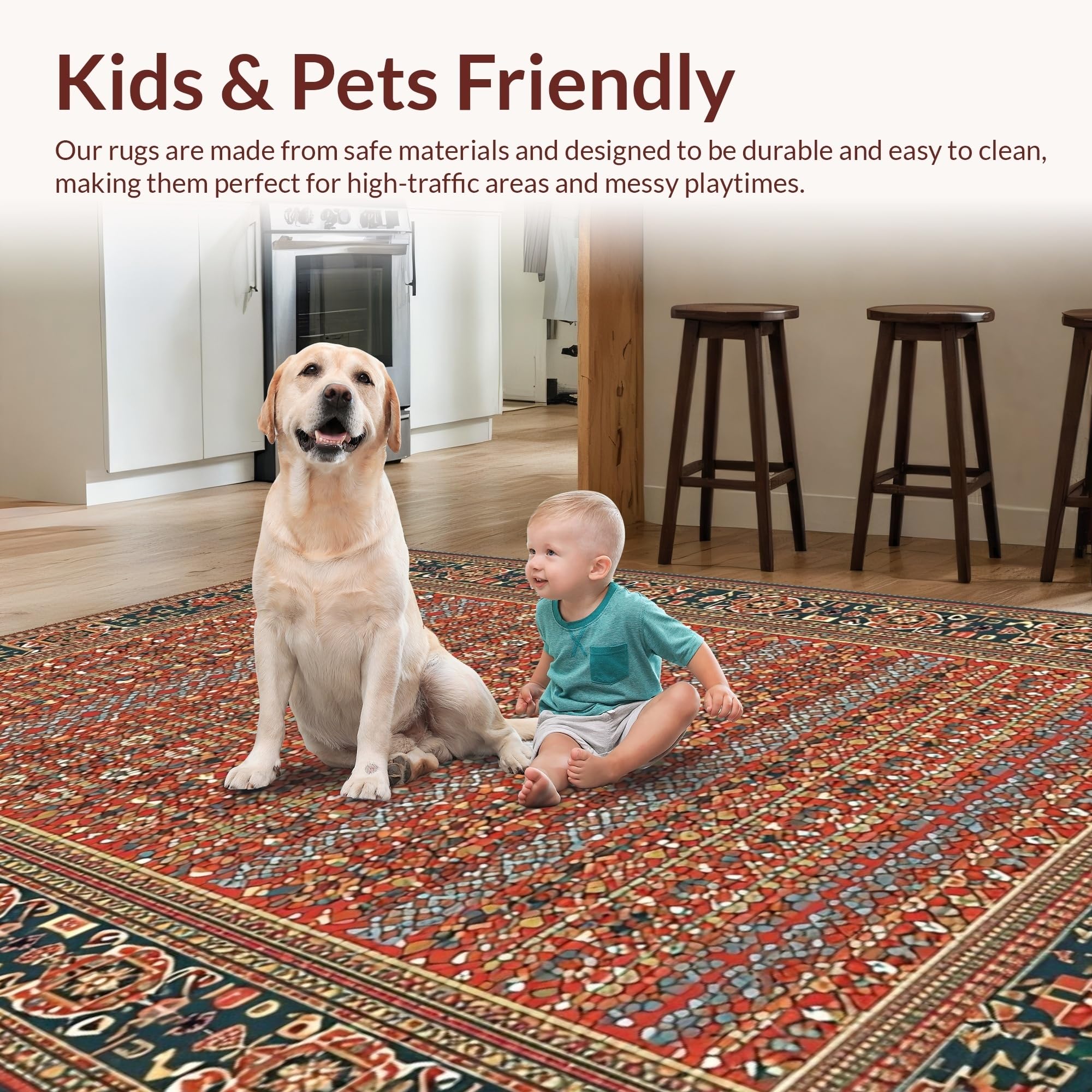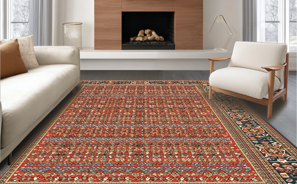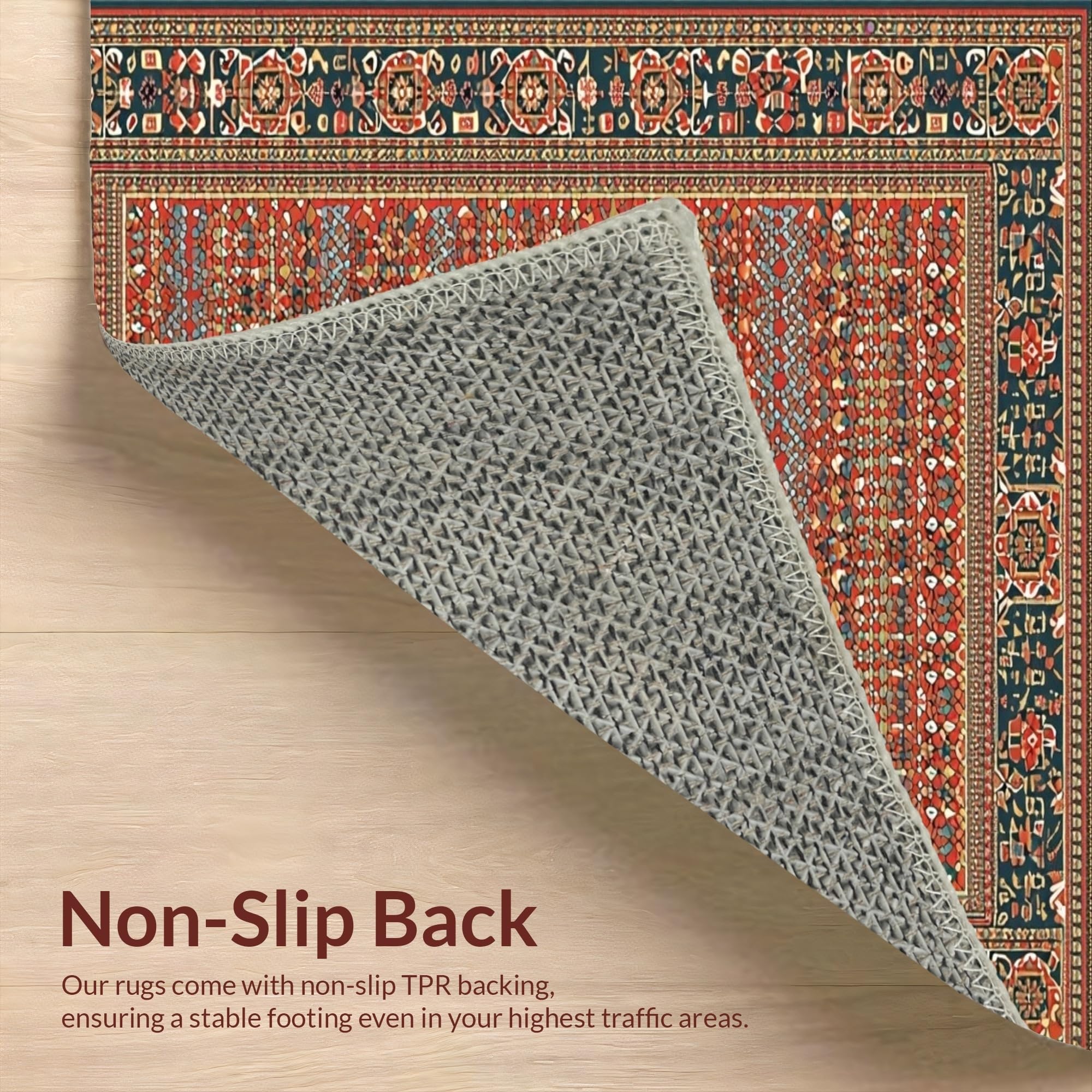 Ultra Soft Area Rug, Non Slip, Stain Resistant, Washable Area Rugs for Living Room, Bedroom, Traditional Vintage Medallion Aesthetic(Red) Overview: