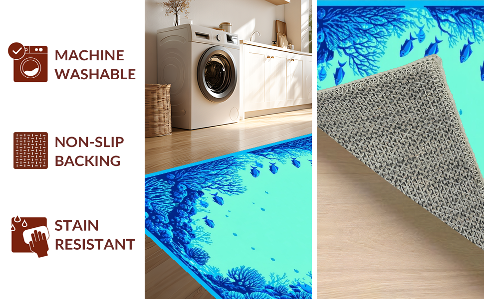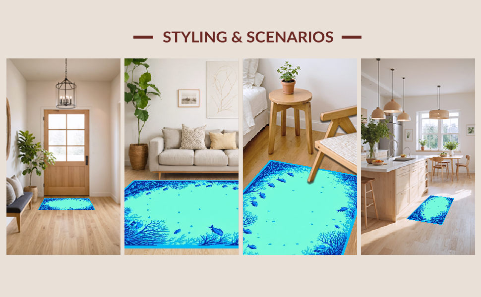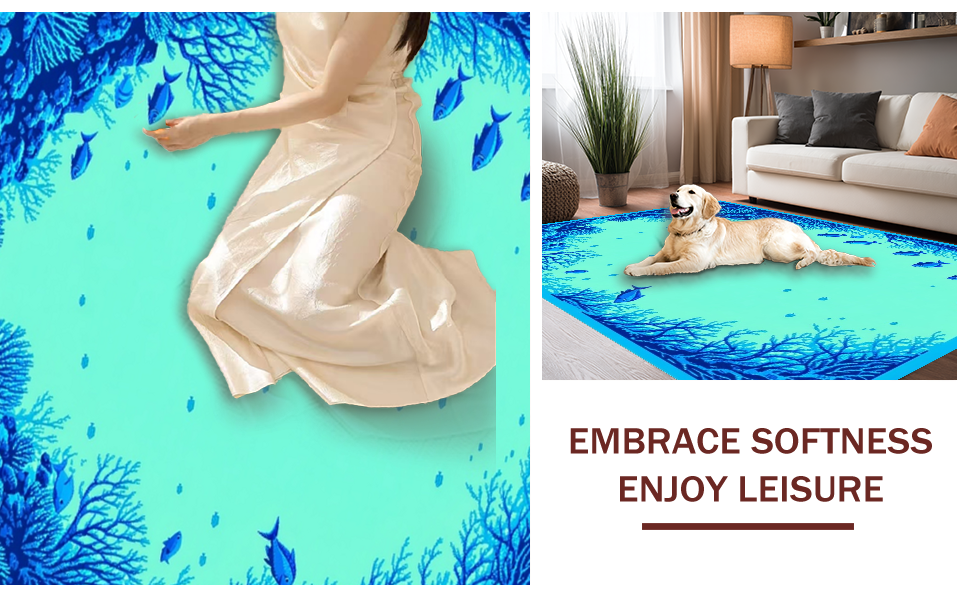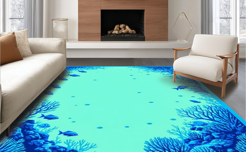 Ultra Soft Area Rug, Non Slip, Stain Resistant, Washable Area Rugs for Living Room, Bedroom, Tranquil Marine Palette Inspiration(Blue) Overview: