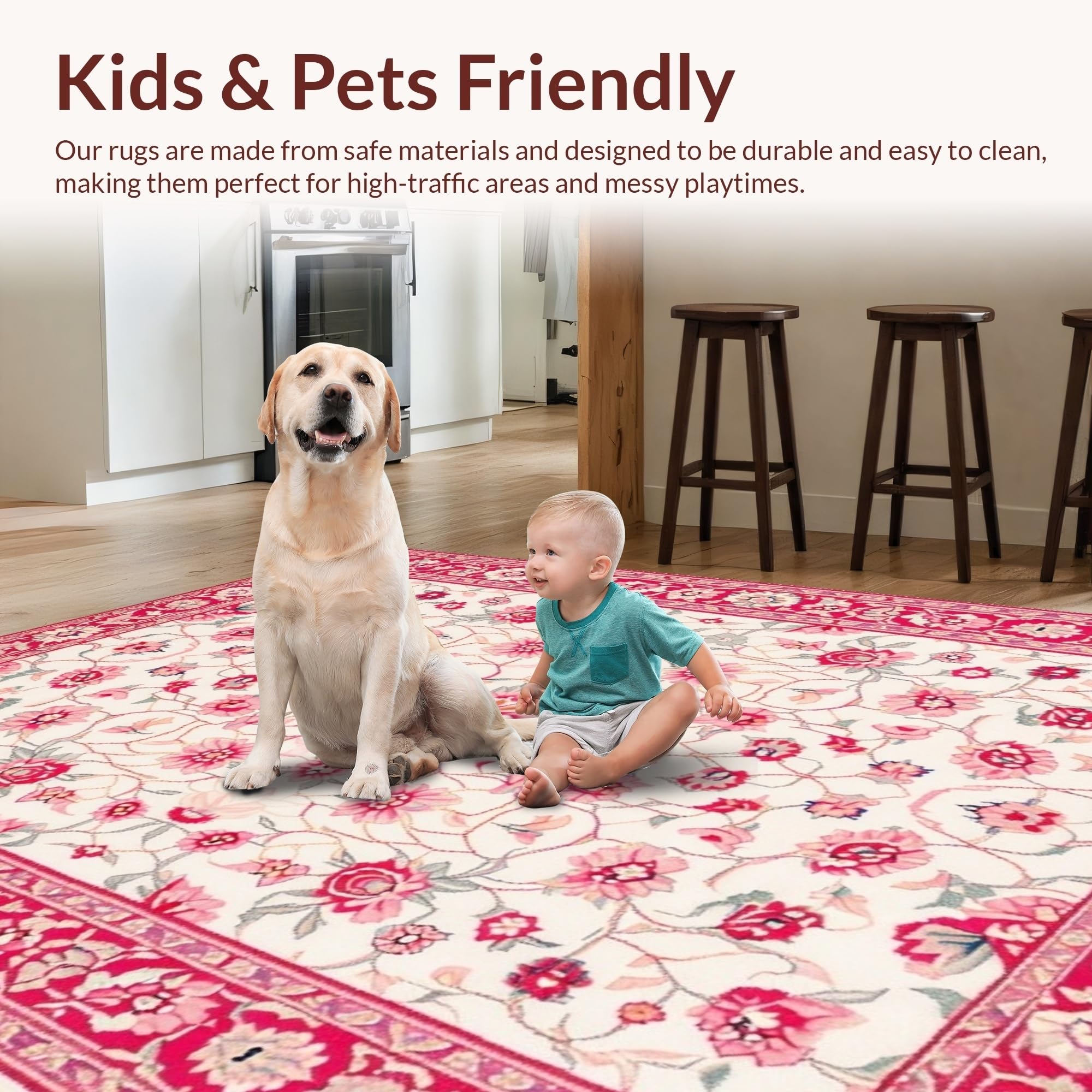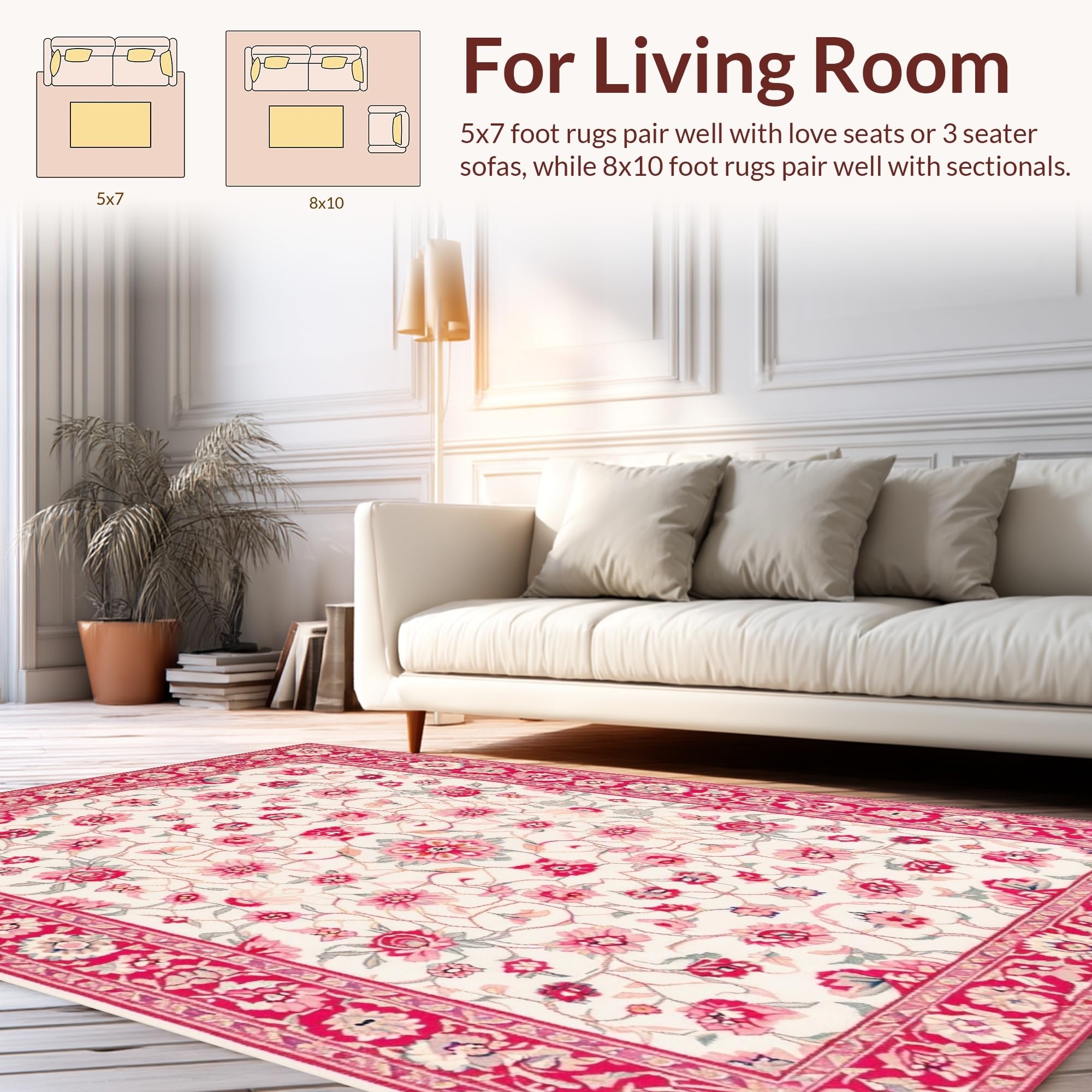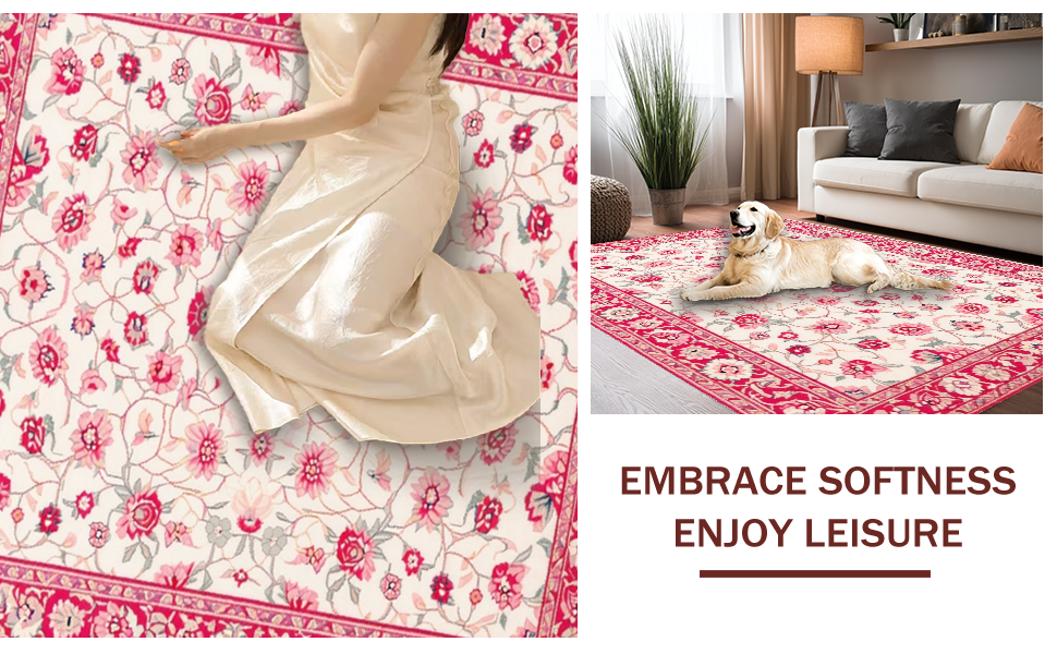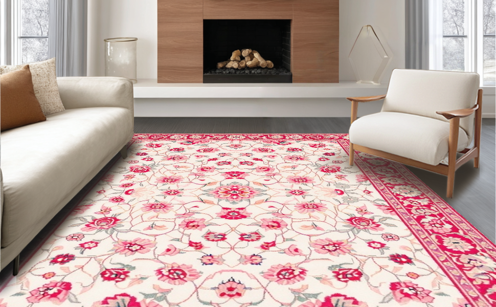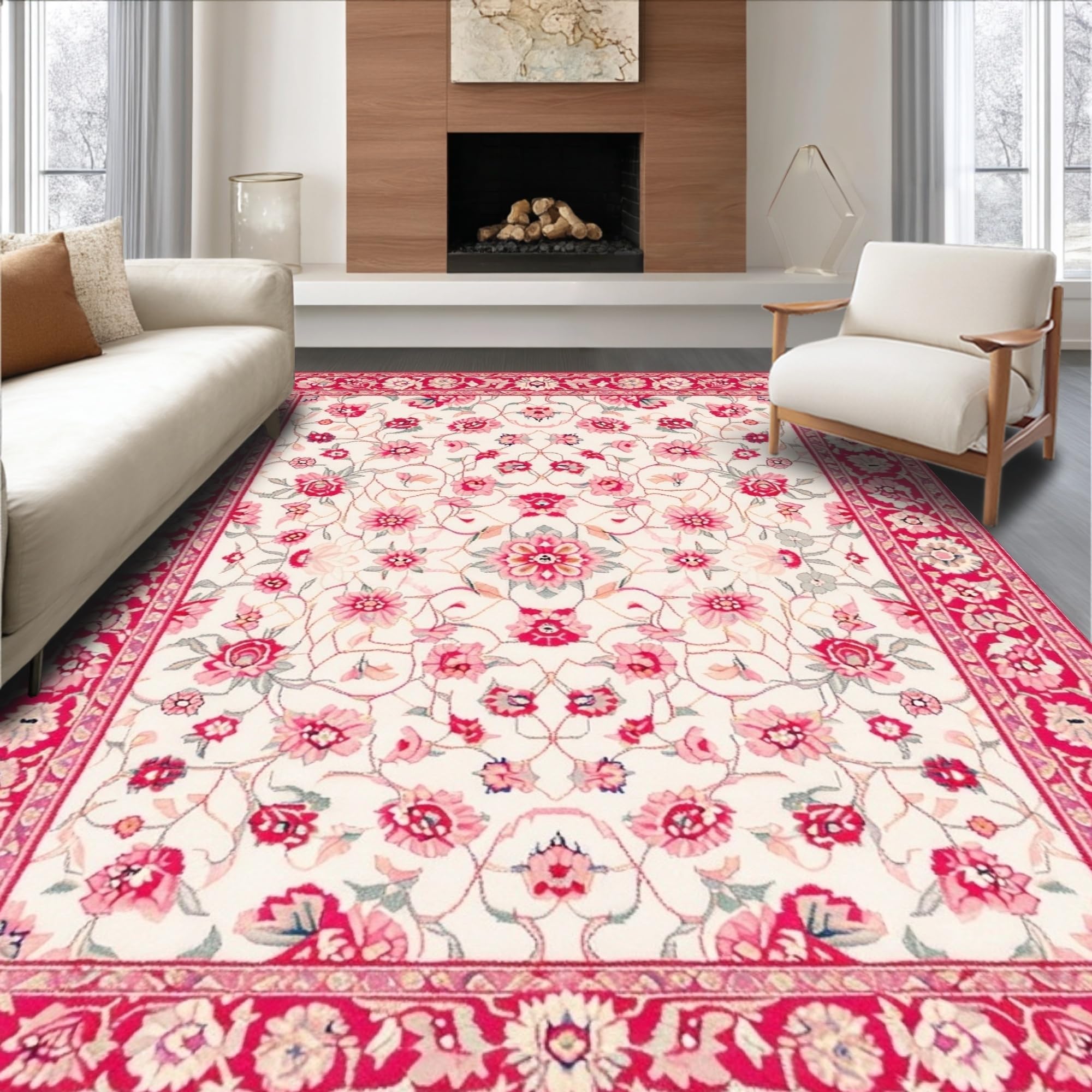 Ultra Soft Area Rug, Non Slip, Stain Resistant, Washable Area Rugs for Living Room, Bedroom, Tranquil Vintage Flower Style(White) Overview: