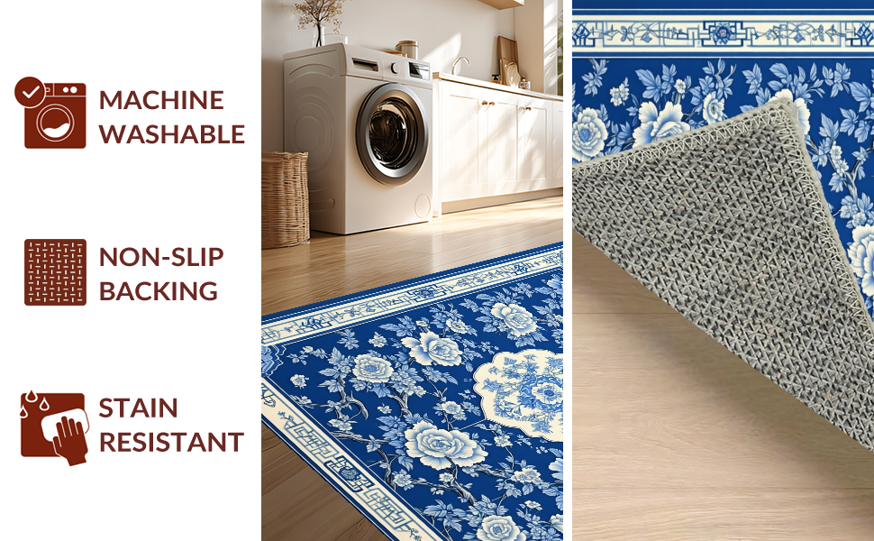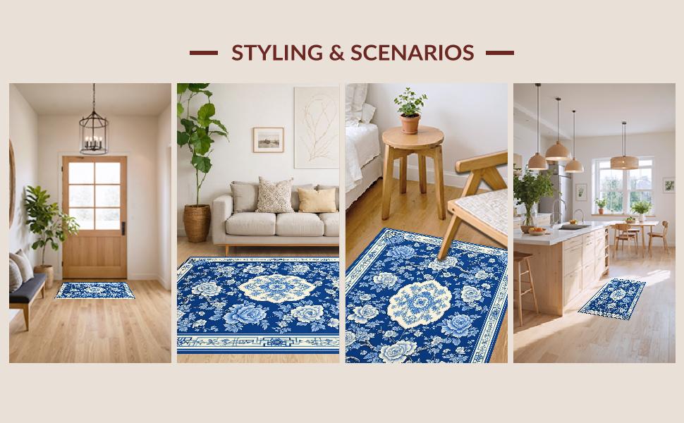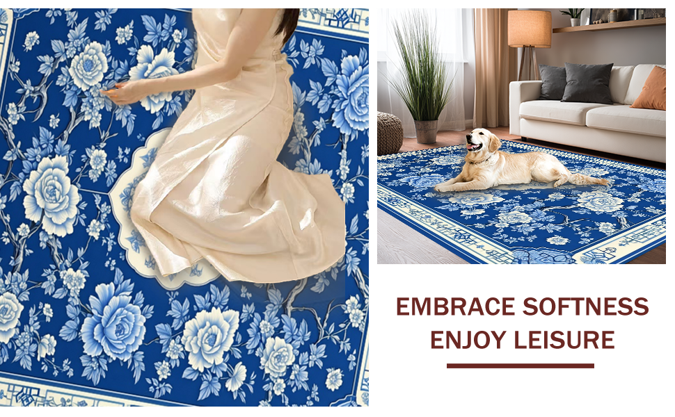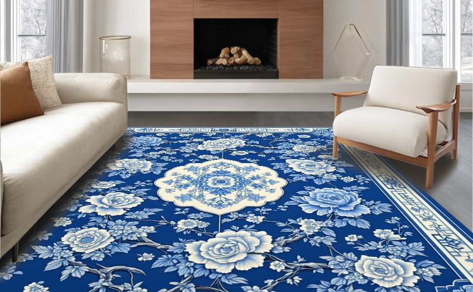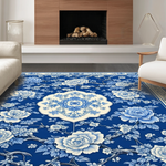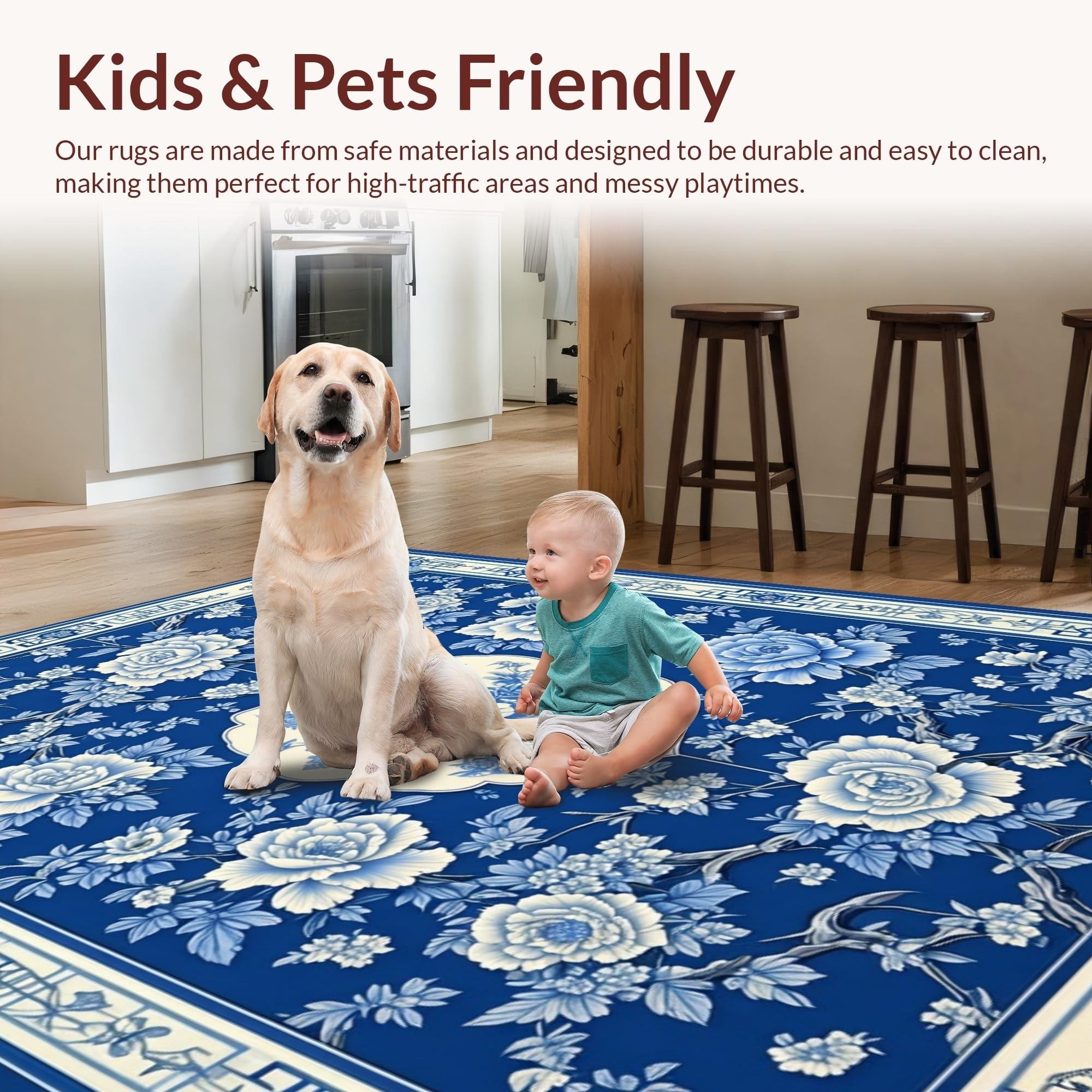 Ultra Soft Area Rug, Non Slip, Stain Resistant, Washable Area Rugs for Living Room, Bedroom, Transitional Blue Floral Elegance(Blue) Overview: